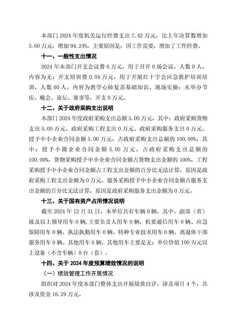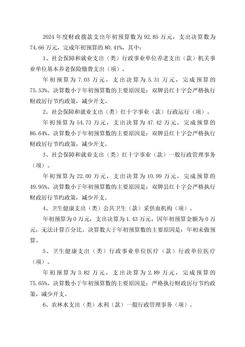 双牌县红十字会2024年部门决算公开说明