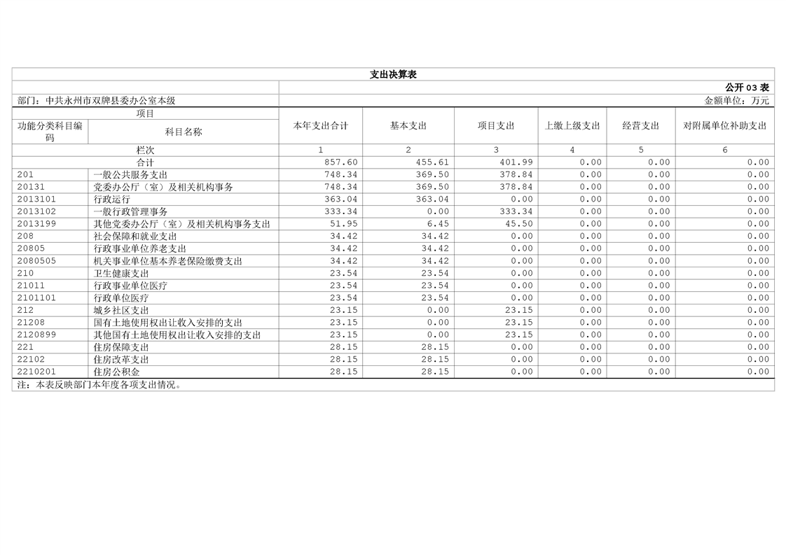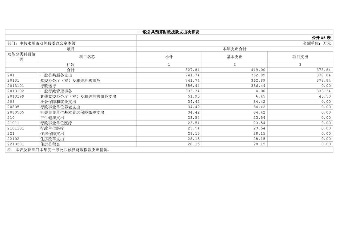 中共永州市双牌县委办公室本级2024年部门决算公开说明