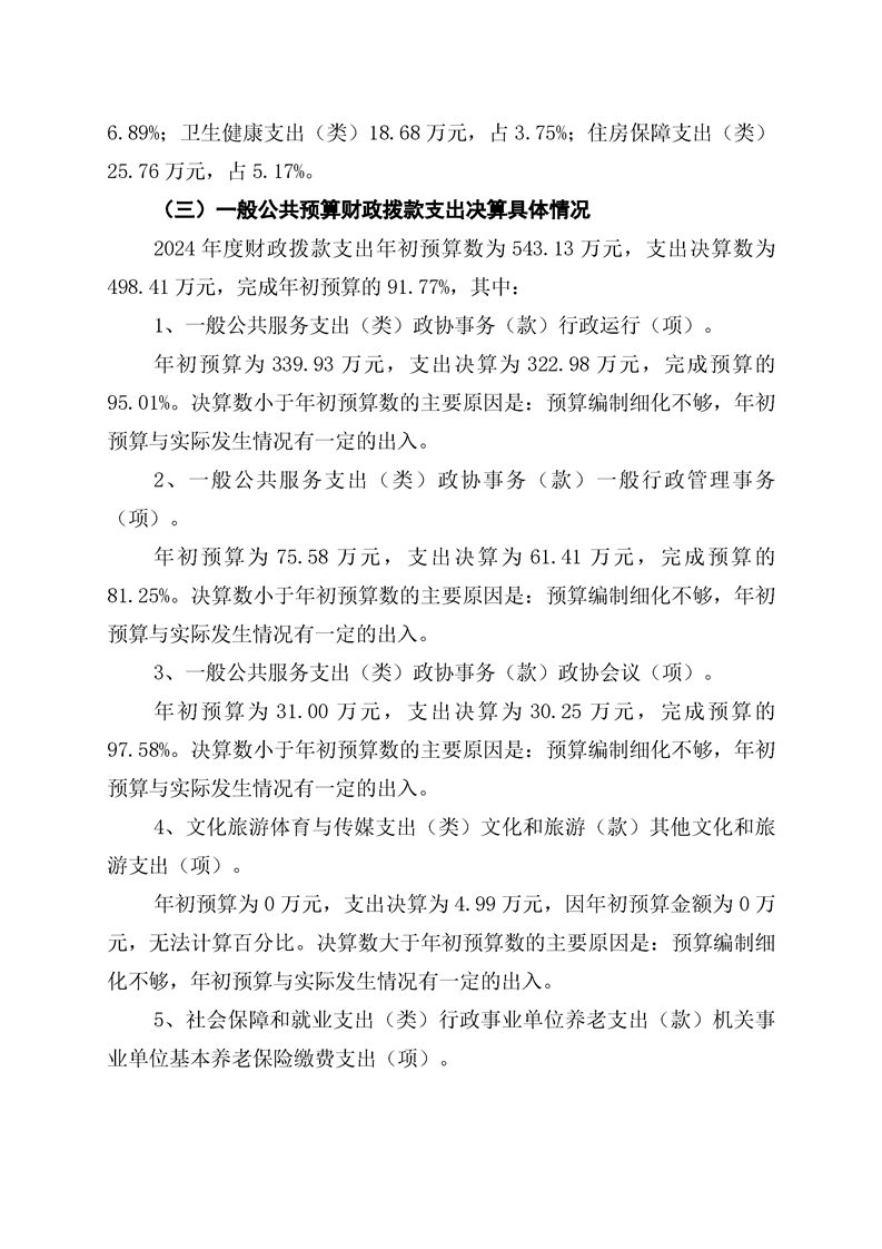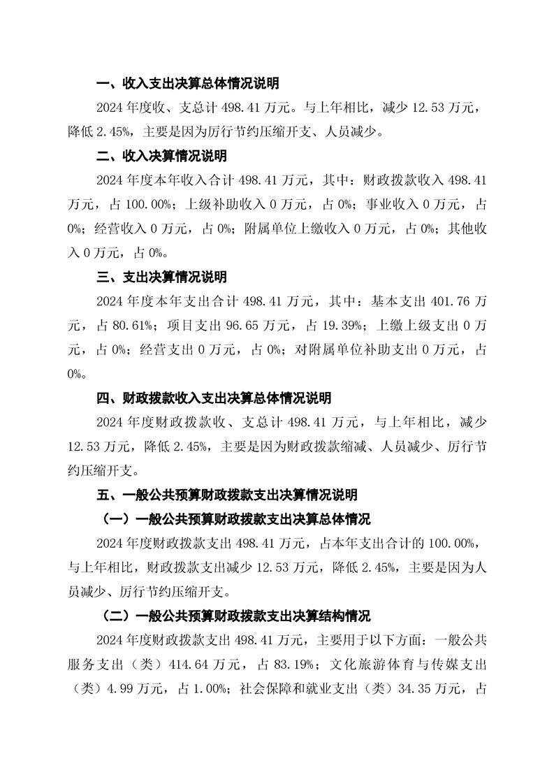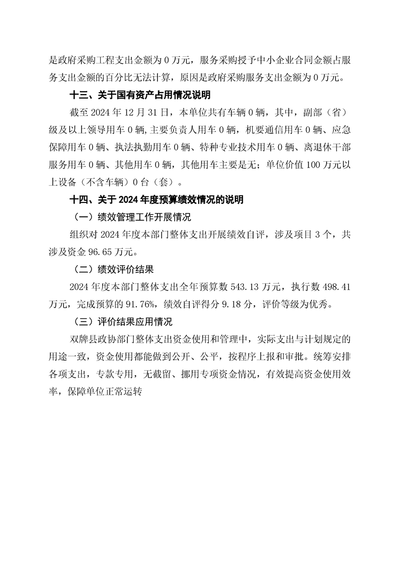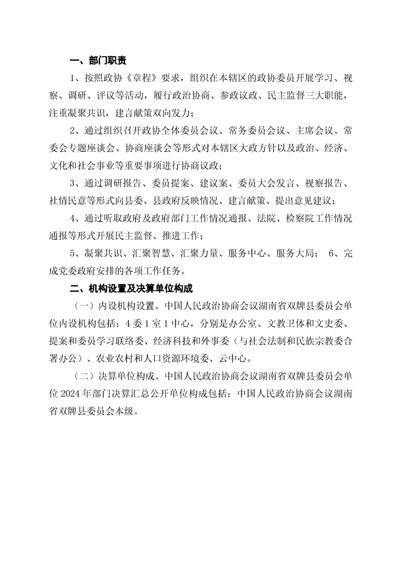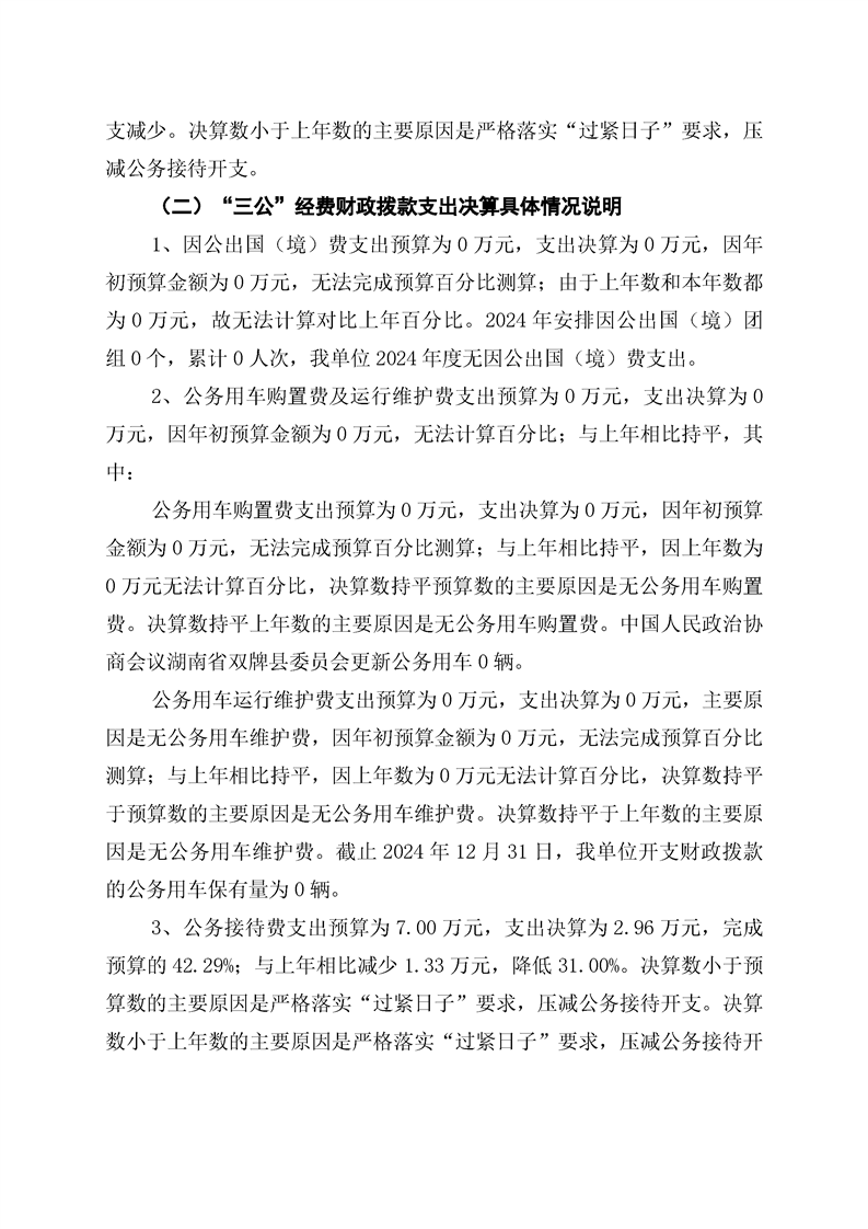 中国人民政治协商会议湖南省双牌县委员会2024年部门决算公开说明
