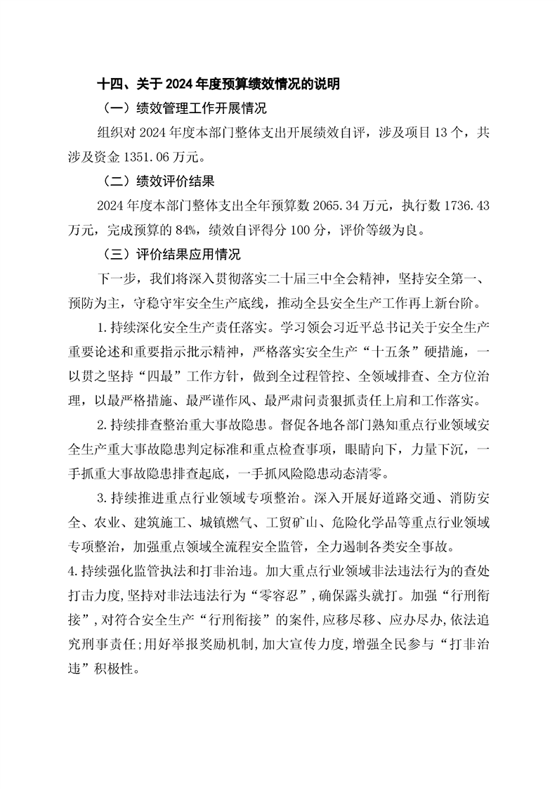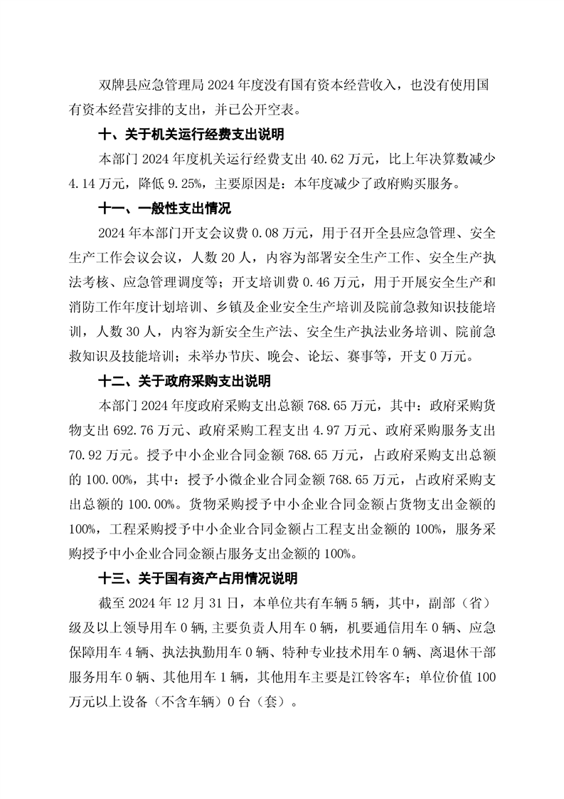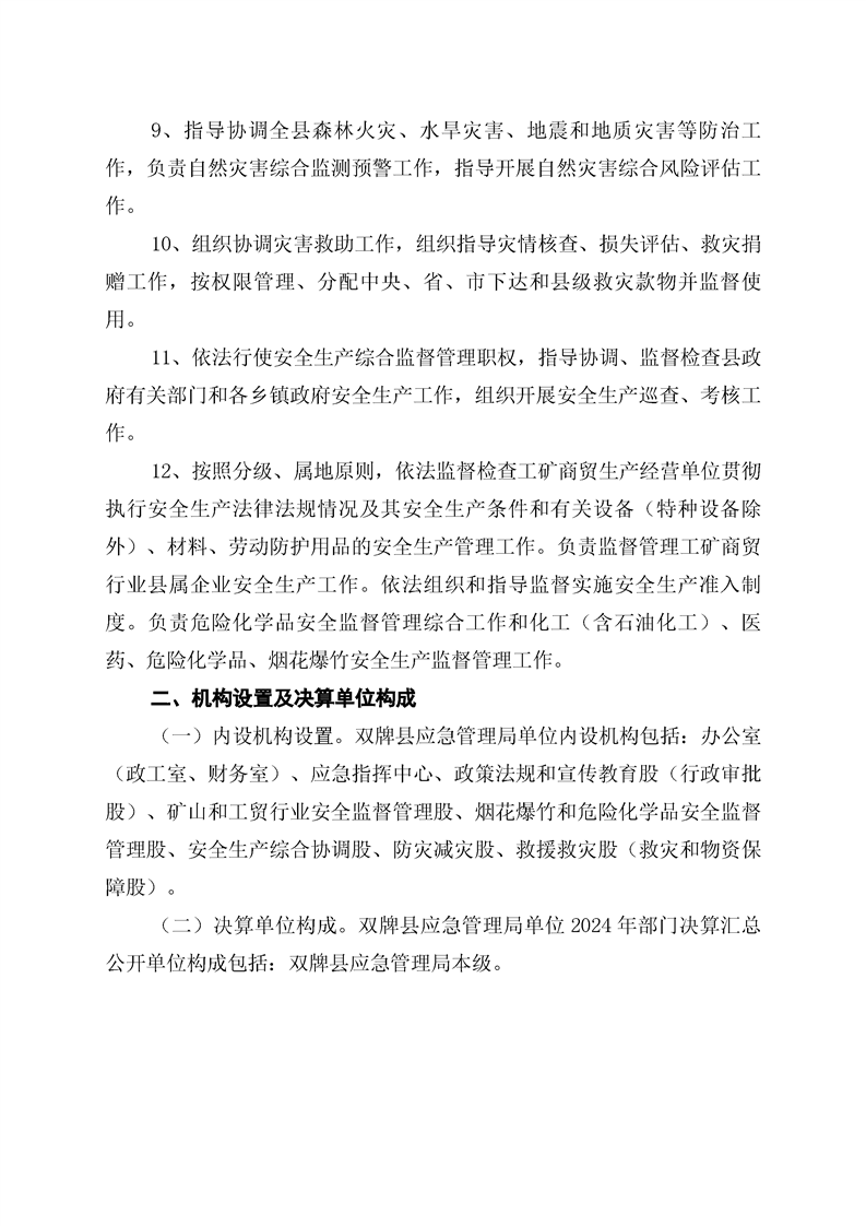 2024年度双牌县应急管理局部门整体支出绩效自评报告