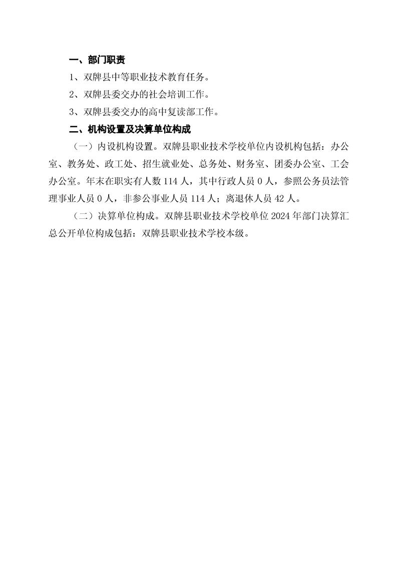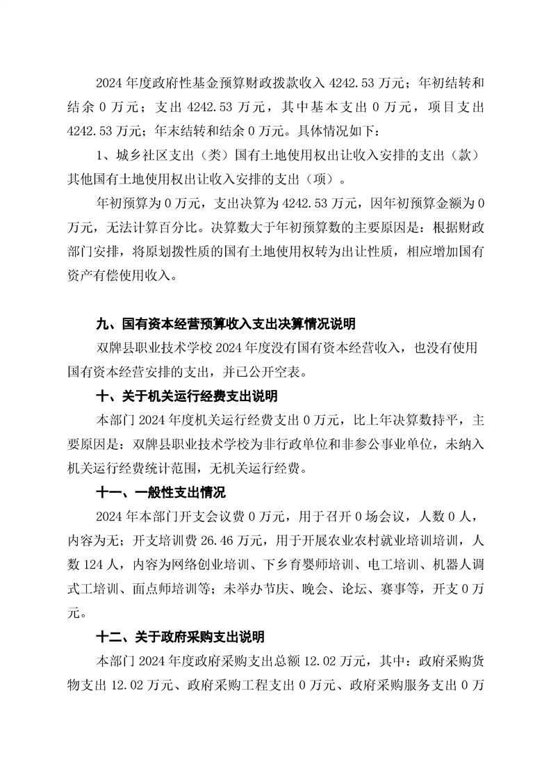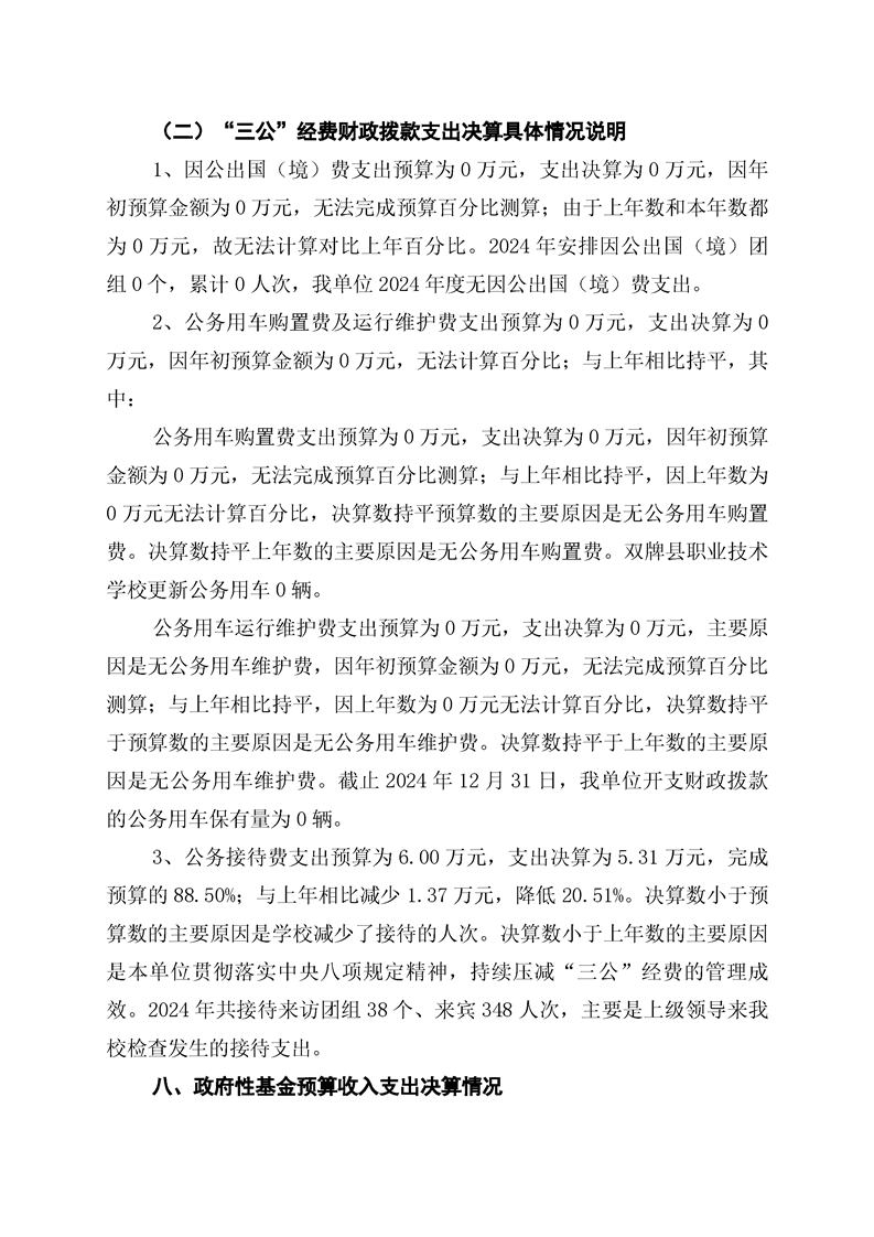 2024年度双牌县职业技术学校部门整体支出绩效自评报告