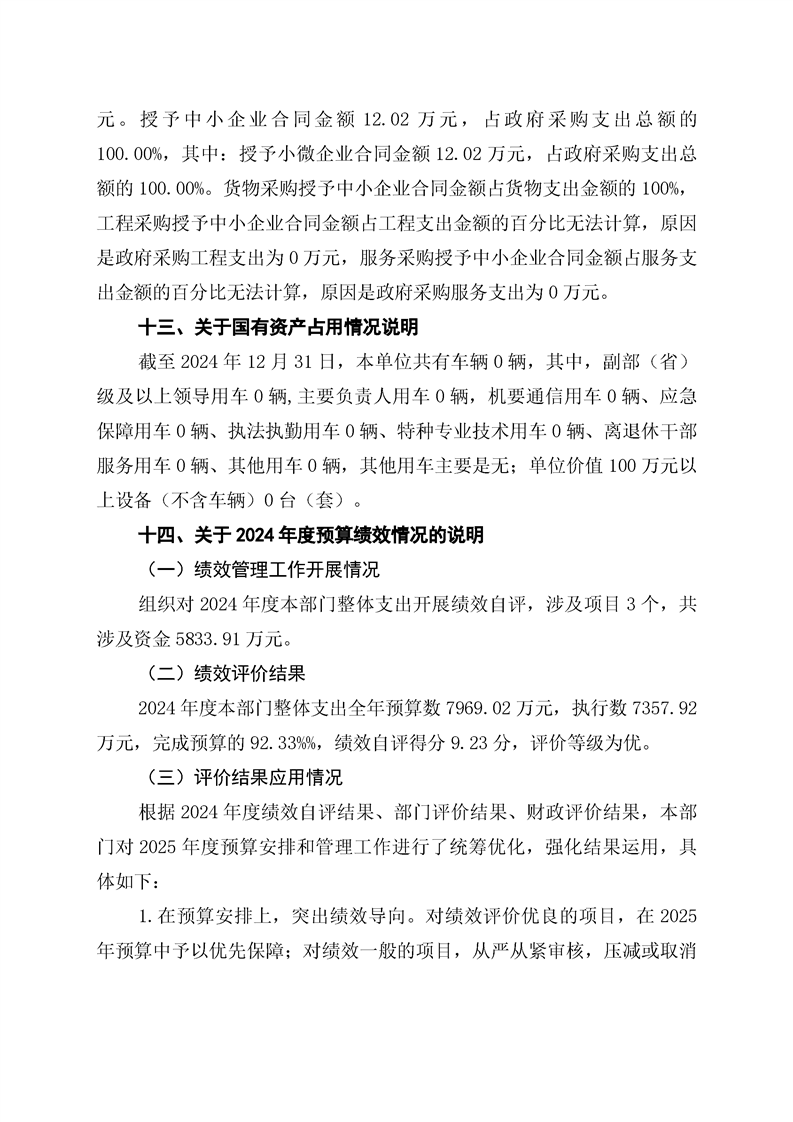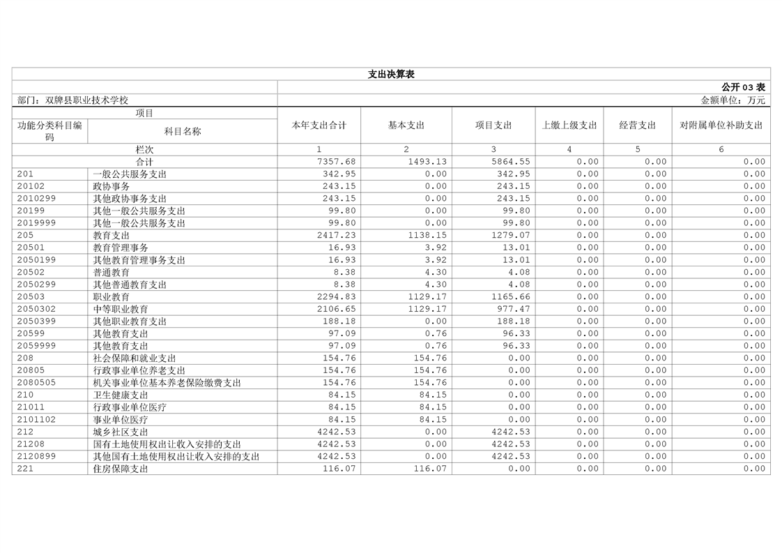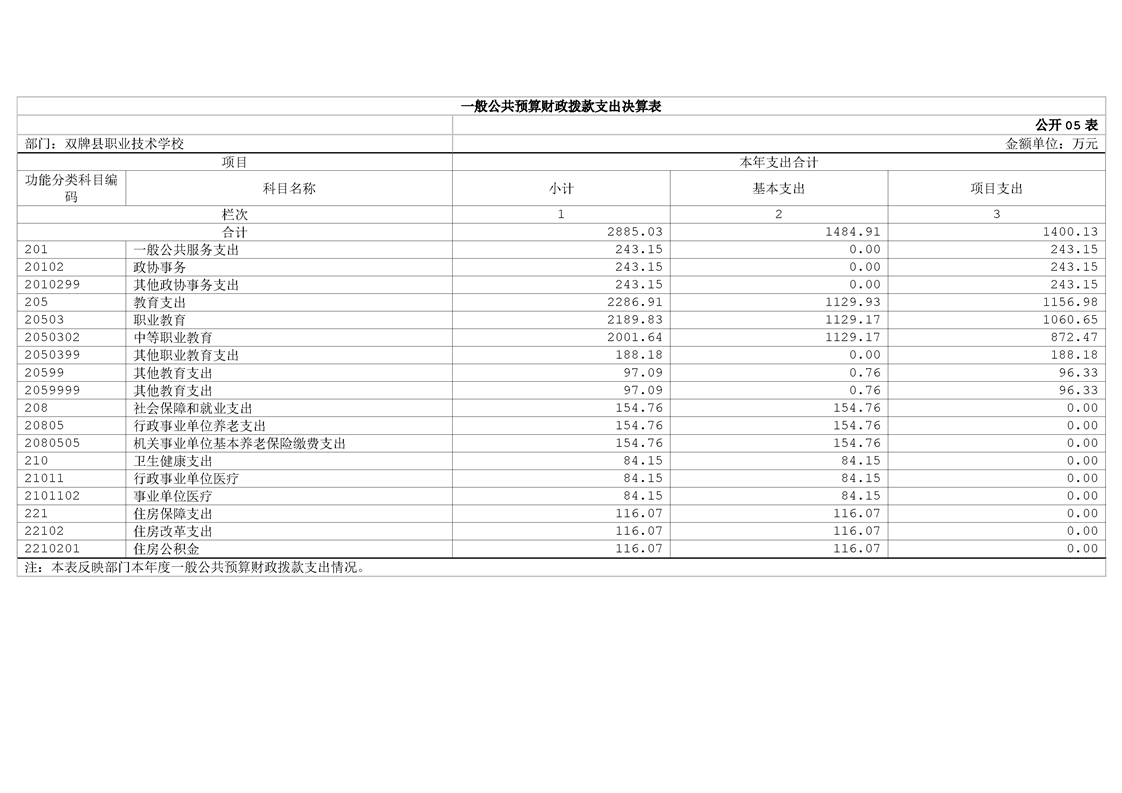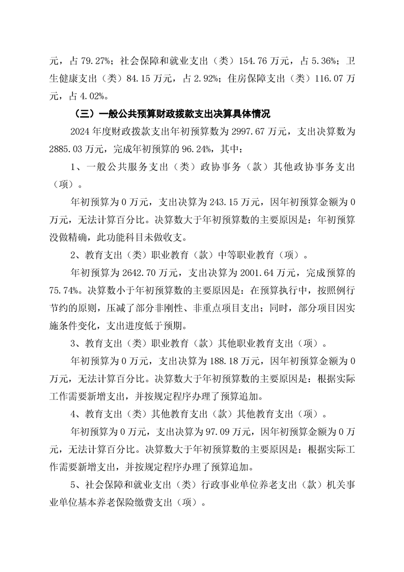 2024年度双牌县职业技术学校部门整体支出绩效自评报告