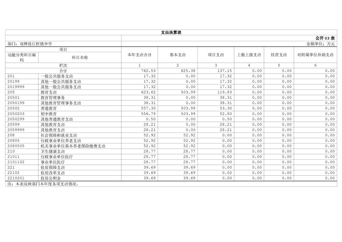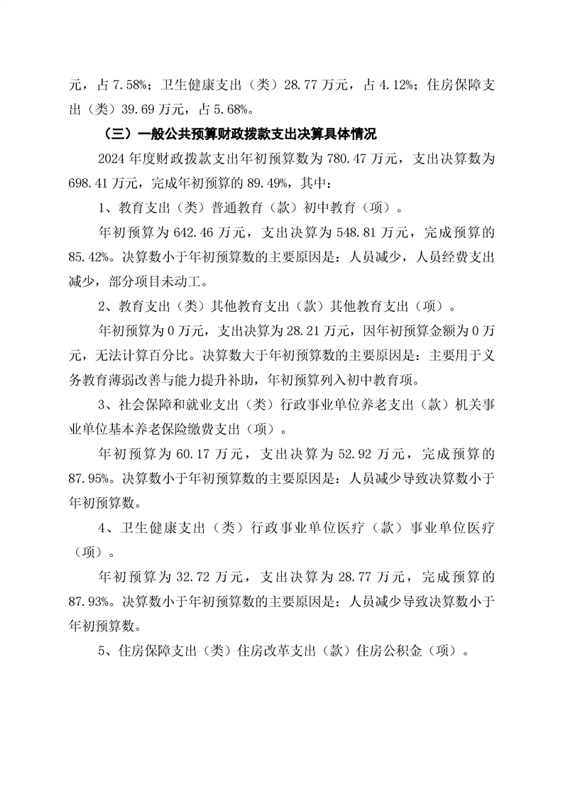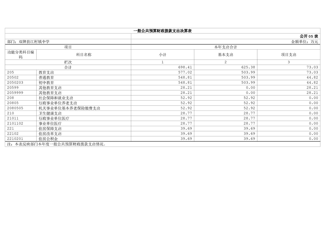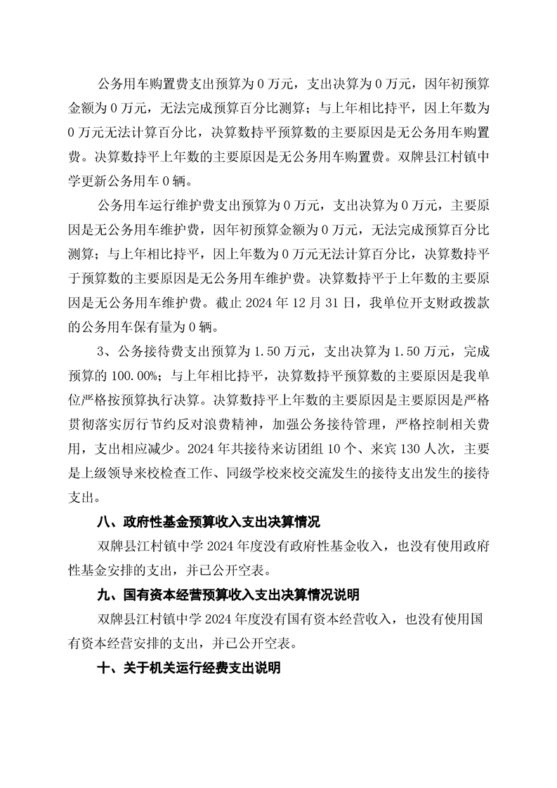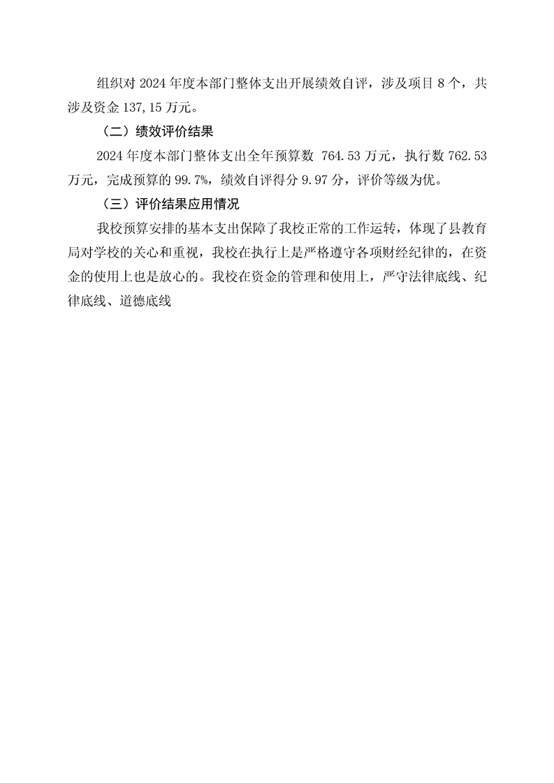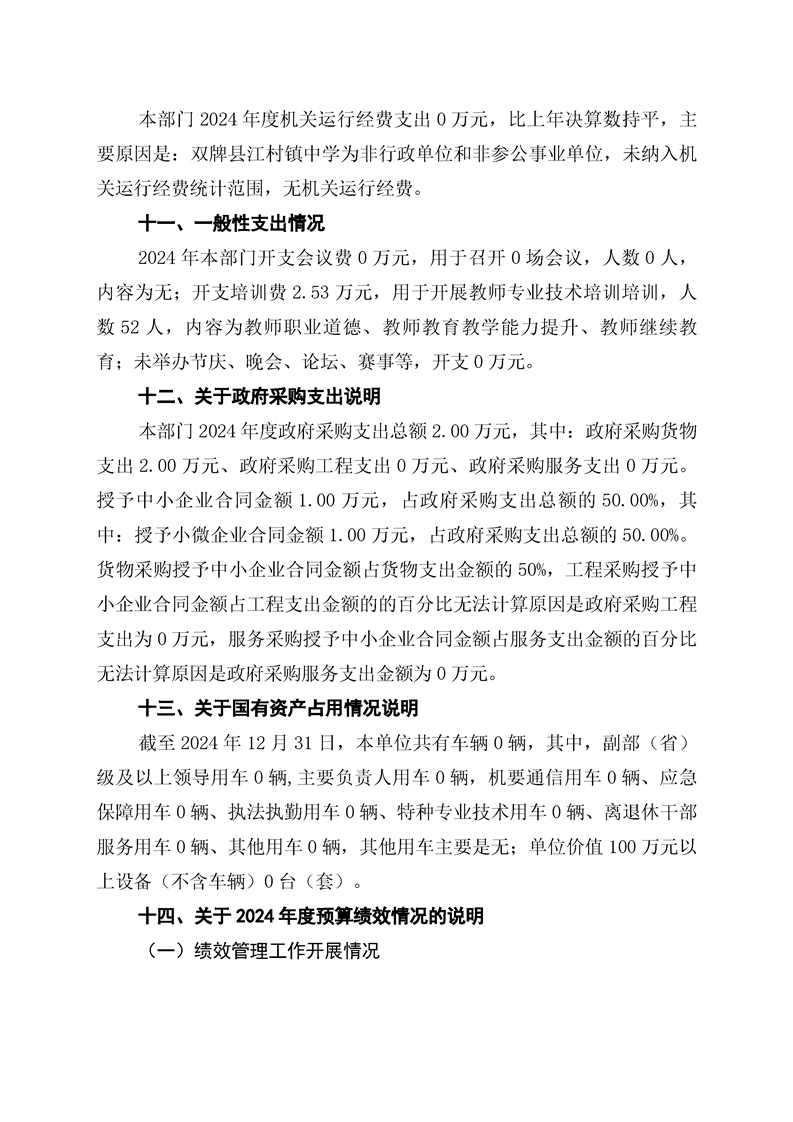 2024年度双牌县江村镇中学部门整体支出绩效自评报告
