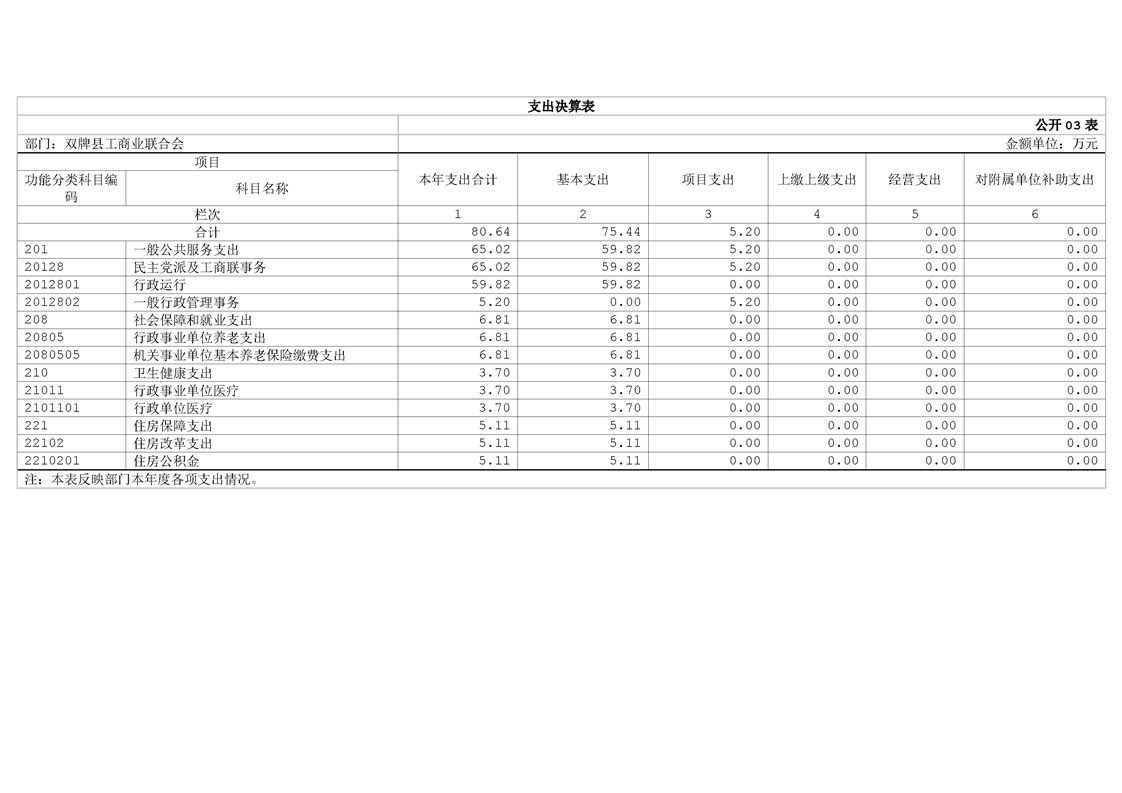 2024年度双牌县工商业联合会部门整体支出绩效自评报告