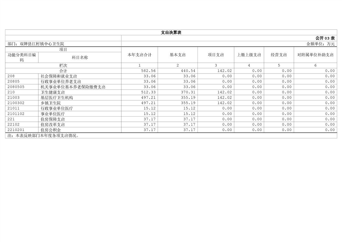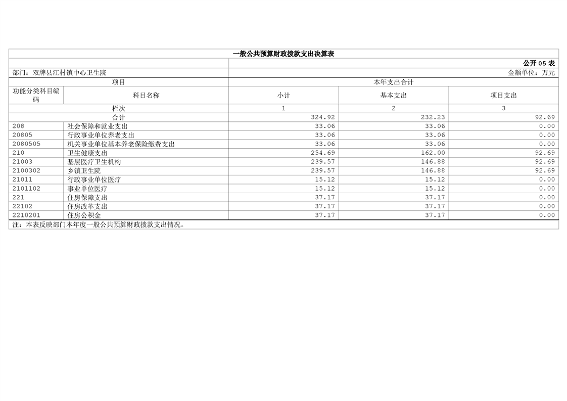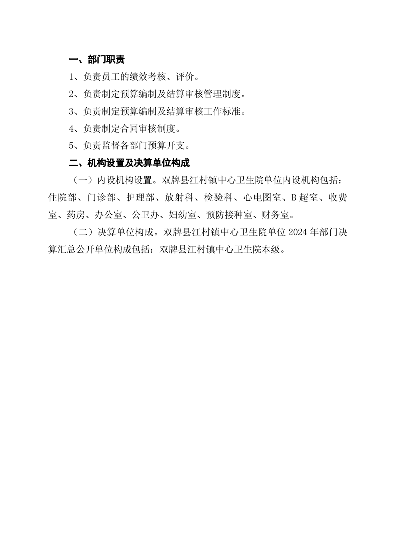 2024年度双牌县江村镇中心卫生院部门整体支出绩效自评报告