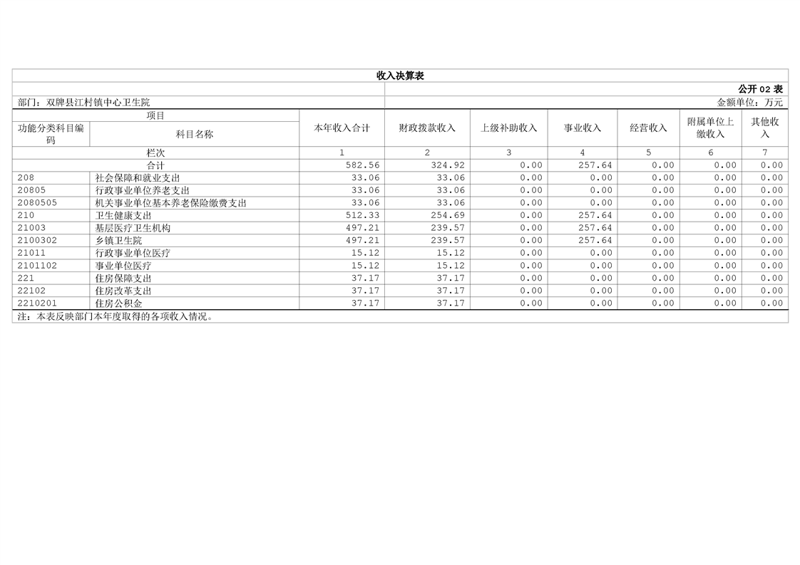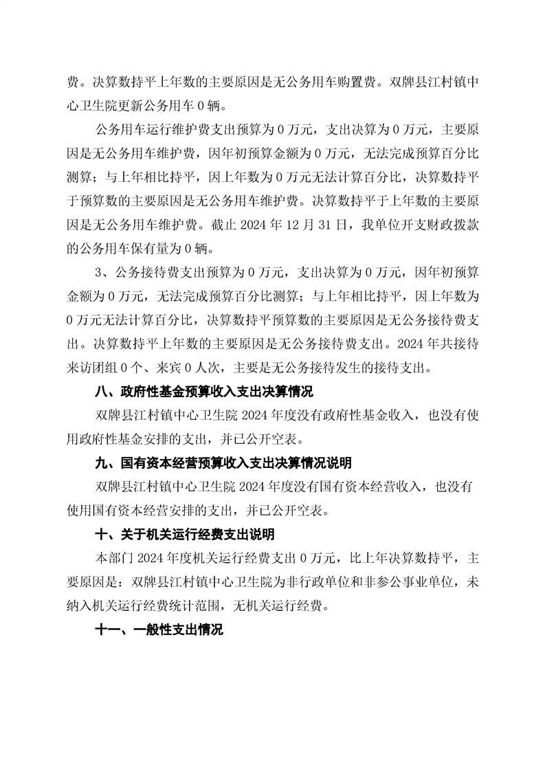 双牌县江村镇中心卫生院2024年部门决算公开说明