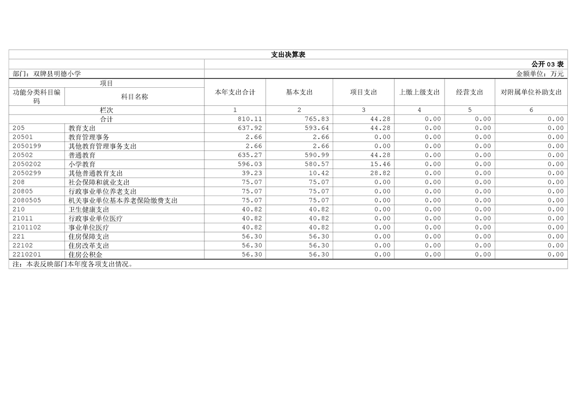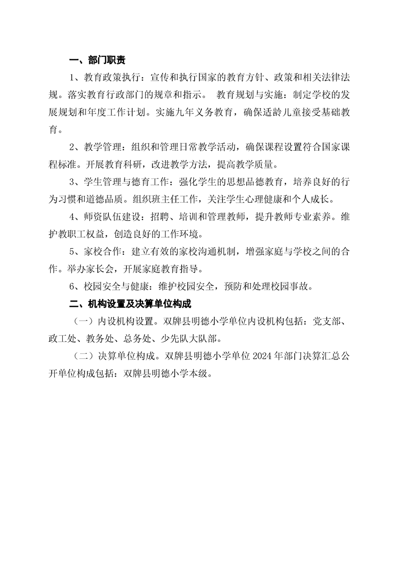 2024年度双牌县明德小学部门整体支出绩效自评报告
