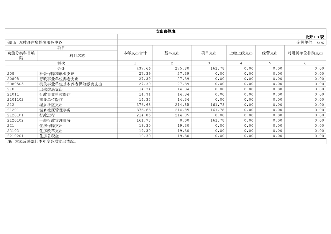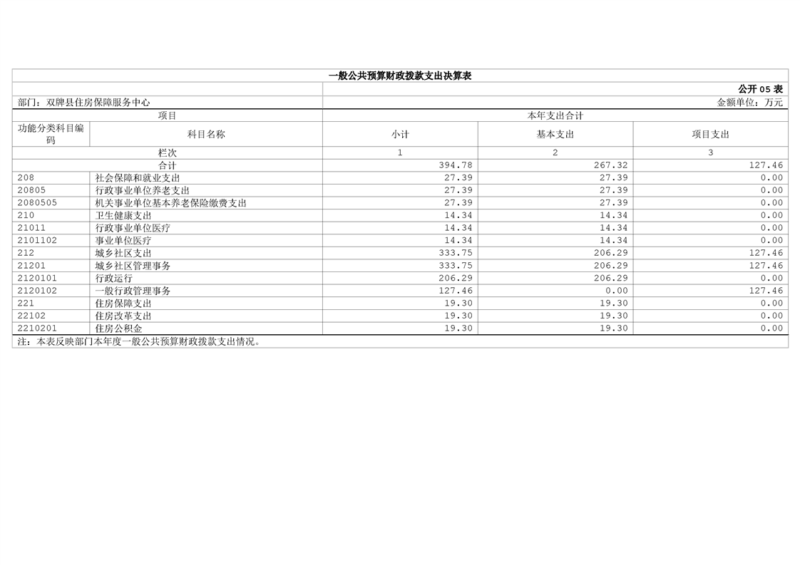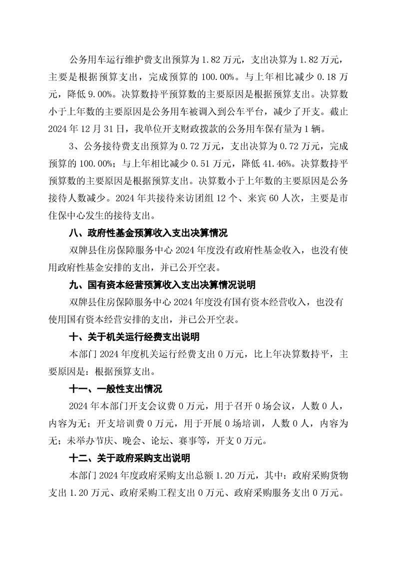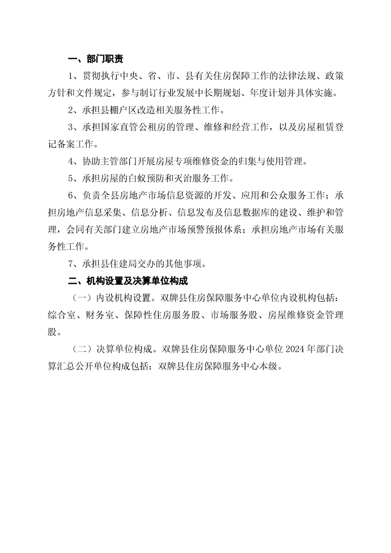 2024年度双牌县住房保障服务中心部门整体支出绩效自评报告