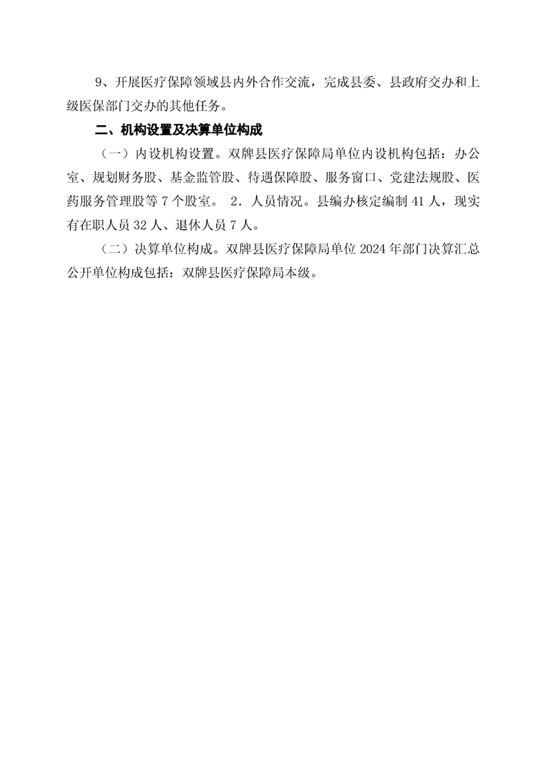 2024年度双牌县医疗保障局部门整体支出绩效自评报告