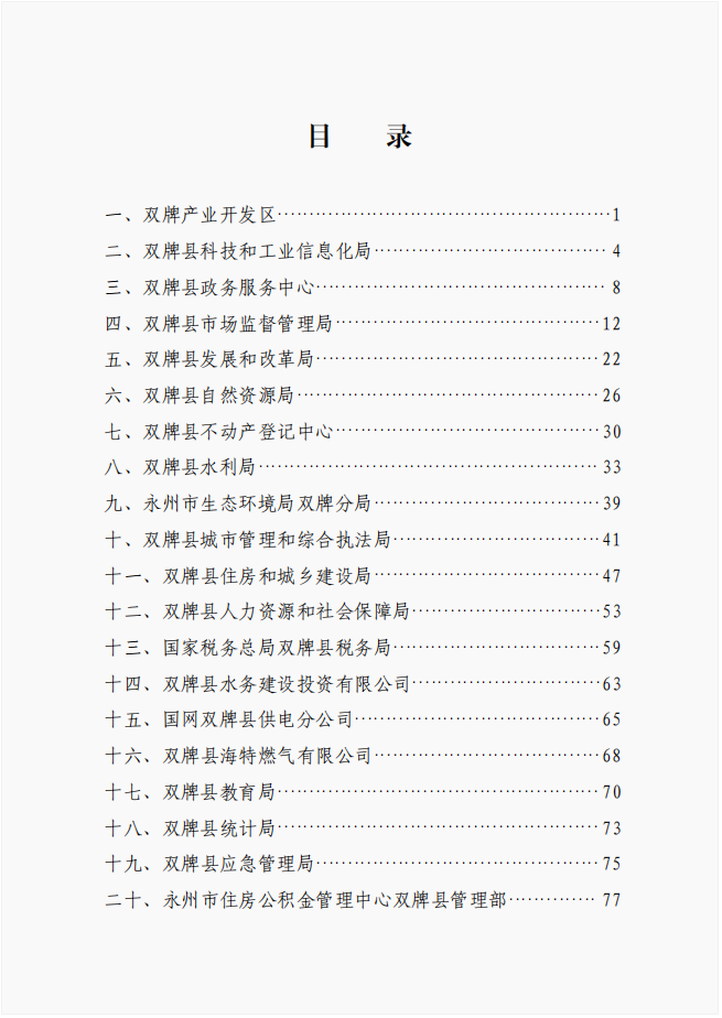 《双牌县优化营商环境服务企业工作清单(网络版)》下载见文首附件,内容目录预览如下: