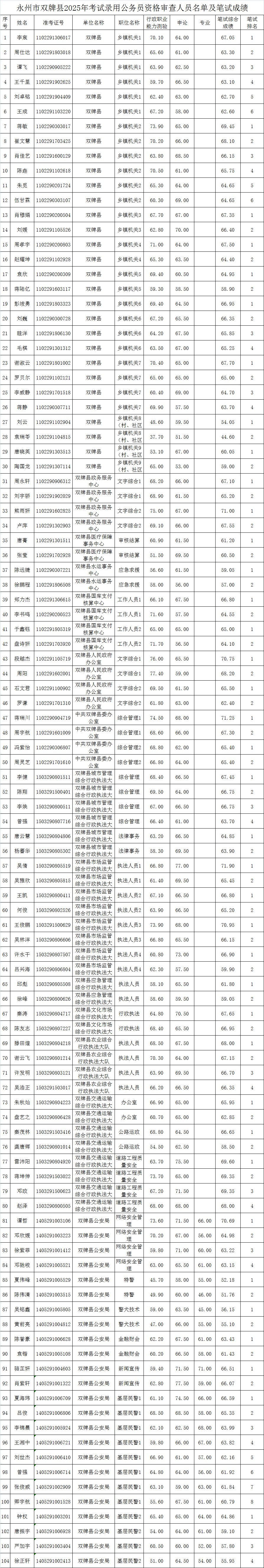 附件:永州市双牌县2025年考试录用公务员资格审查人员名单及笔试成绩