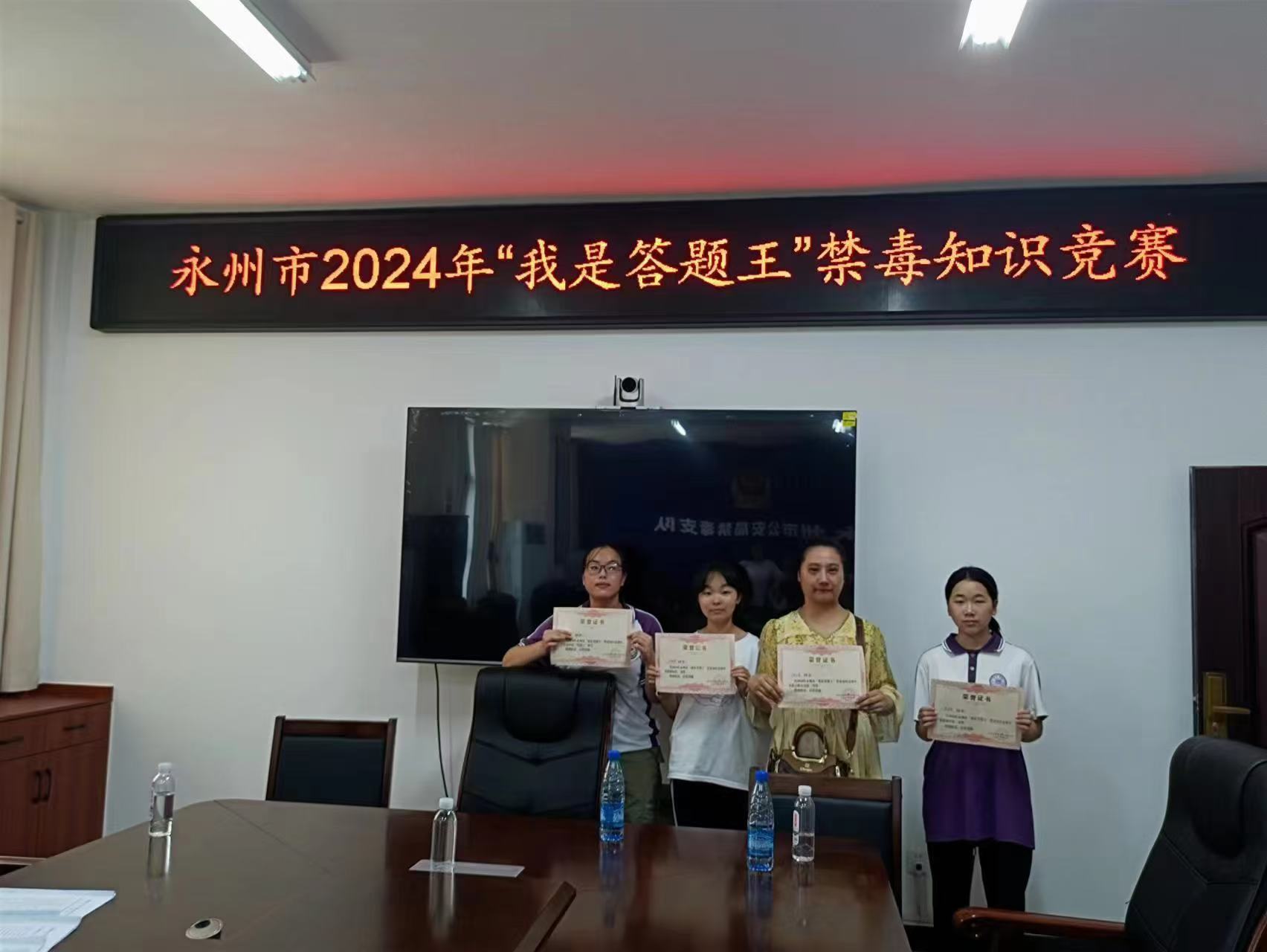 县禁毒办联合县教育局积极开展全国青少年禁毒知识竞赛队伍选拔活动,评选出3名学生代表、1名教师代表组成的参赛小组,参加永州市2024年“我是答题王”禁毒知识竞赛,获得个人答题王一名、个人二等奖二名、个人三等奖一名。