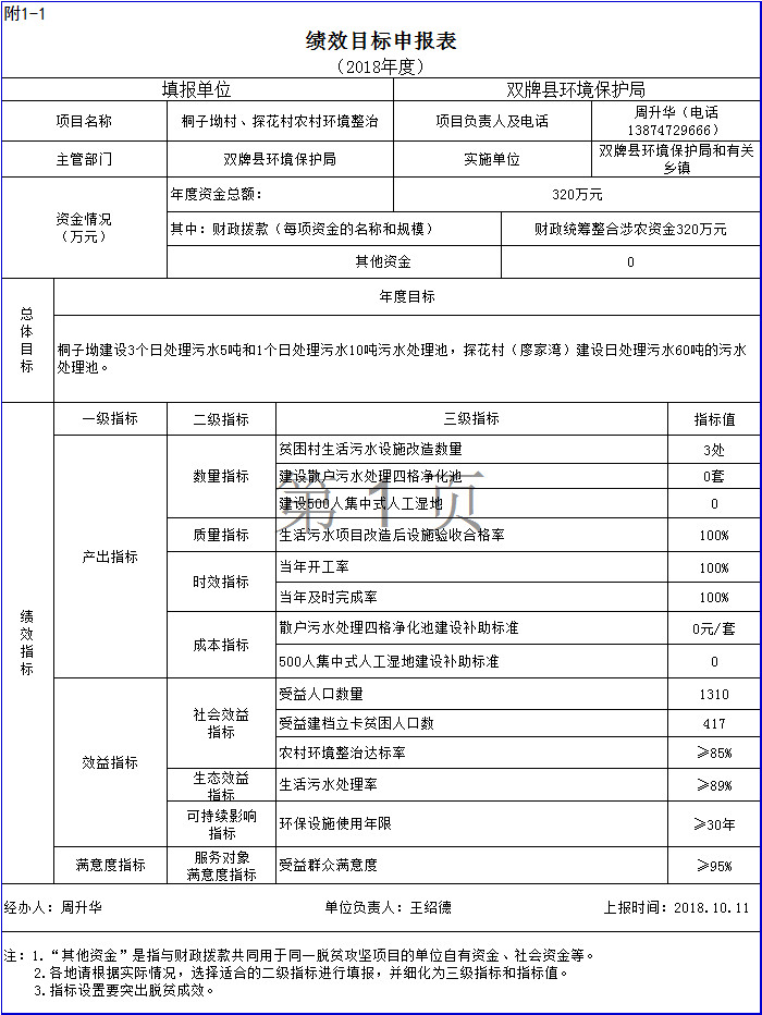 2018年环保局绩效目标申报表1