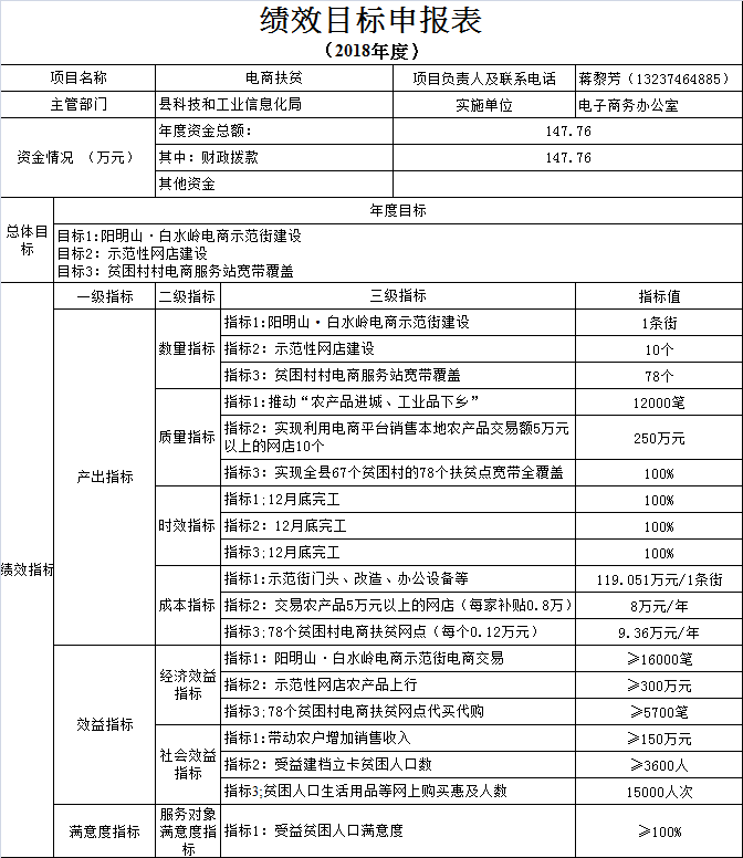 2018年科工信局绩效目标申报表