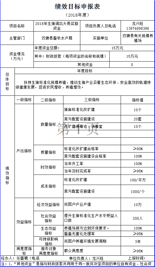 2018年畜牧局扶贫项目绩效目标表2