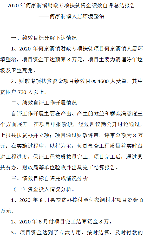 2020年何家洞镇财政专项扶贫资金绩效自评总结报告 ——何家洞镇人居环境整治