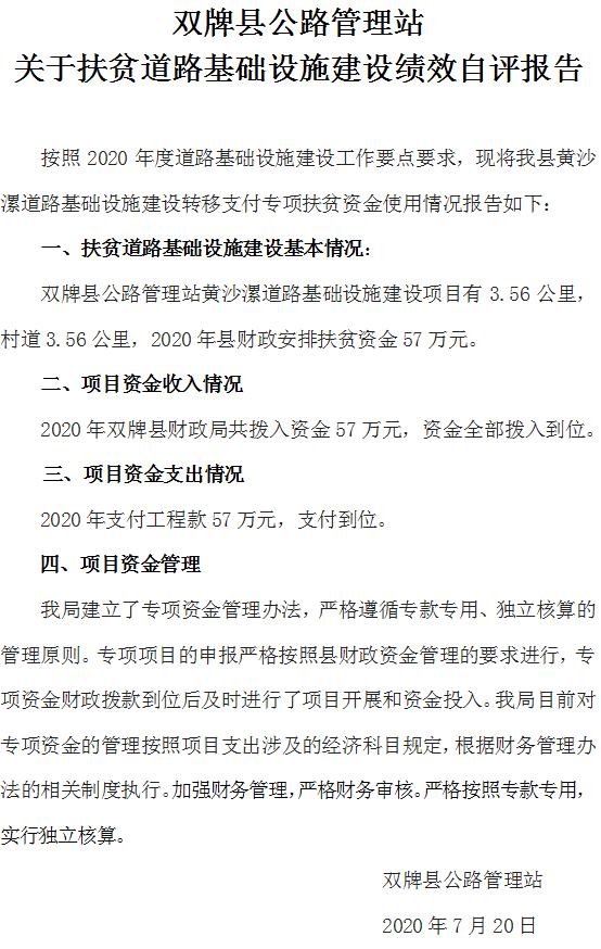 双牌县公路管理站关于扶贫道路基础设施建设(黄沙漯)绩效自评报告