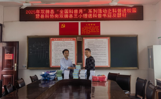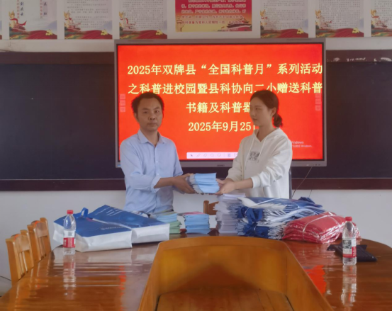 9月23日至26日,双牌县科协在2025年“全国科普月”期间,精心组织并开展了科普进校园暨向双牌县中小学赠送科普书籍及科普器材活动,为全县中小学生送去了丰富的科普知识和实用的学习用品,进一步激发了青少年对科学的兴趣和探索欲望。