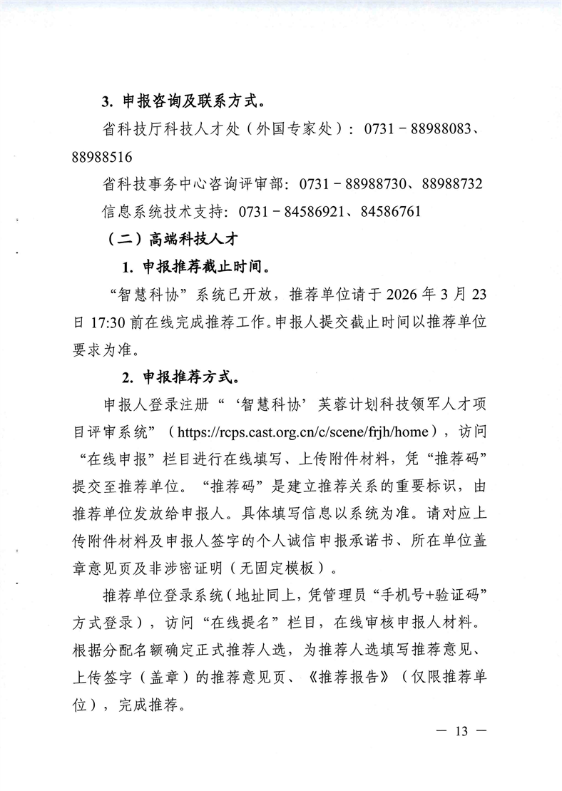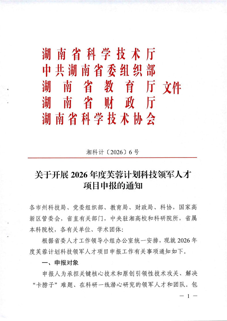 《关于开展2026年度芙蓉计划科技领军人才项目申报的通知》