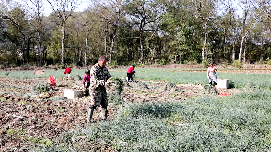“我们这儿的沙壤土特别适合种藠头,种出来的藠头脆爽可口,煎炒烹醋都好吃。” 理家坪乡藠头基地负责人何祖勇介绍,“白天采收的藠头晚上就能运到广州,次日清晨就能上架销售,一百亩地毛收入大概有五六十万元。”
