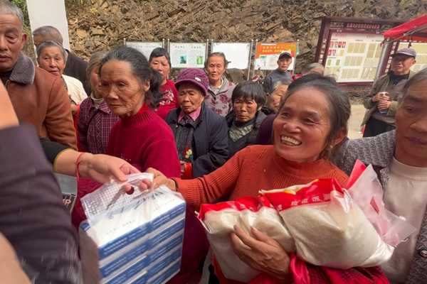 当天最受关注的,是双河村老年协会揭牌成立,意味着村里老人从此有了“专属家园”。活动尾声,工作人员为每位到场老人发放大米、纸巾、保温杯等慰问品,老人们手捧物资满是感动。