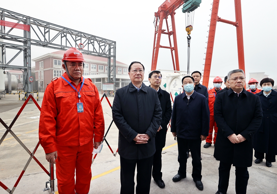 2月3日,省委副书记、省长毛伟明在岳阳市湖南凯美特气体股份有限公司检查安全生产工作。