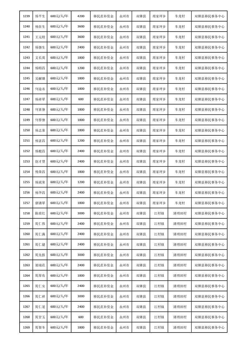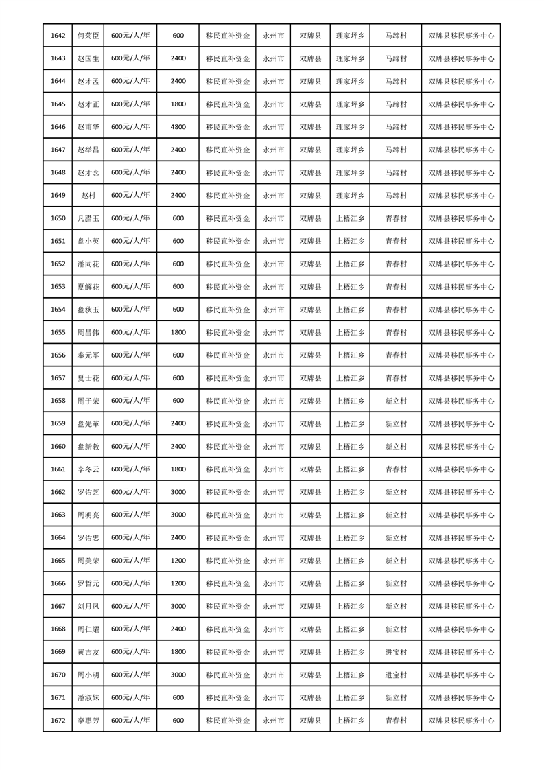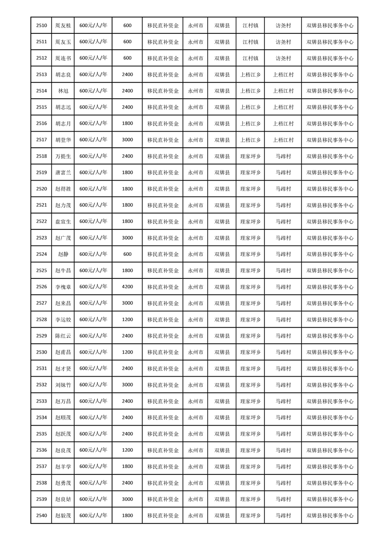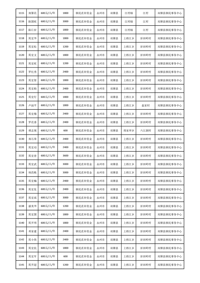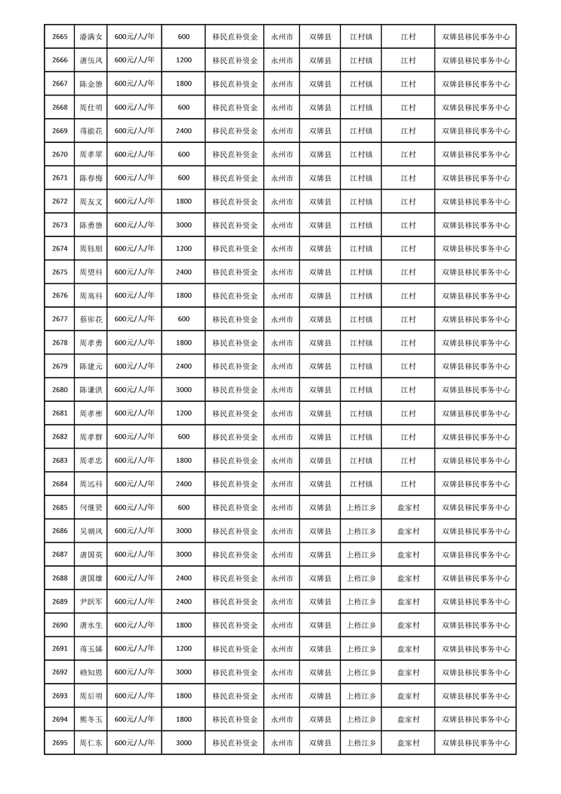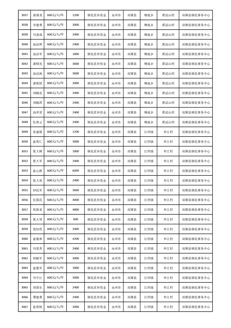 2025年双牌县库区移民后期扶持基金发放名单公示