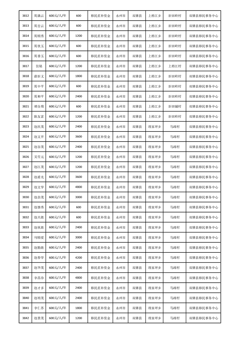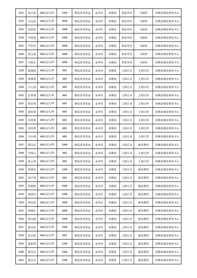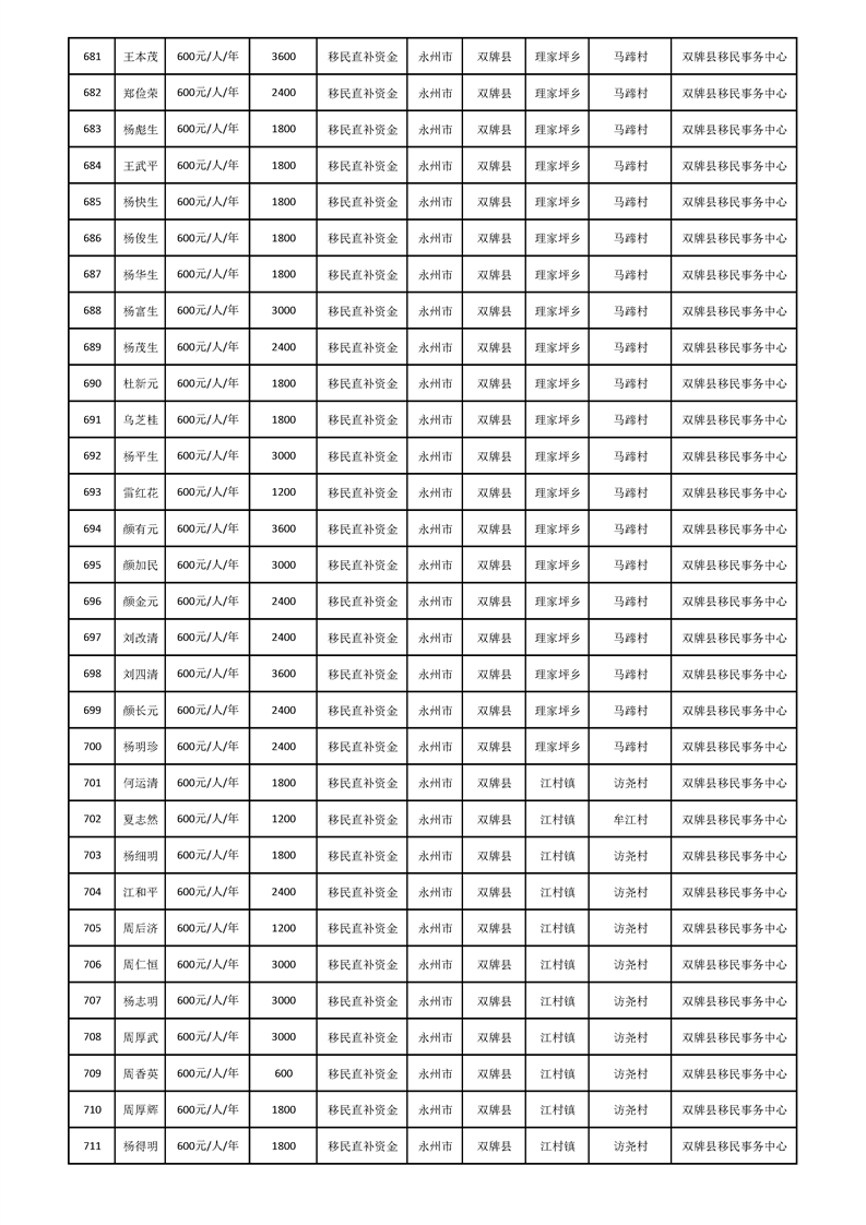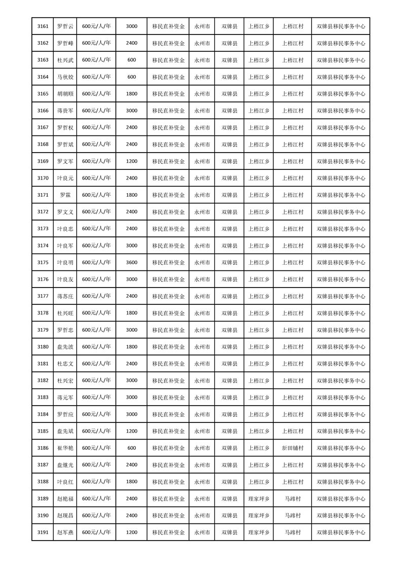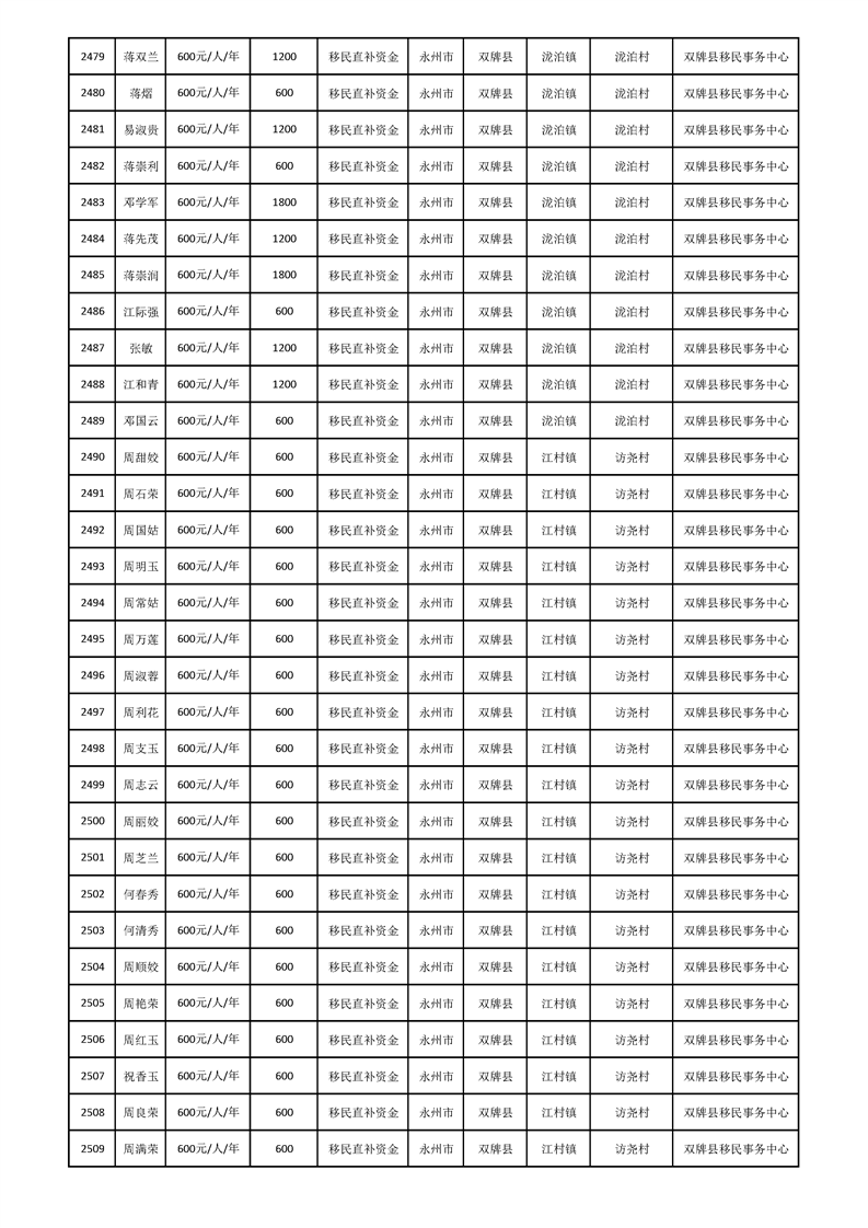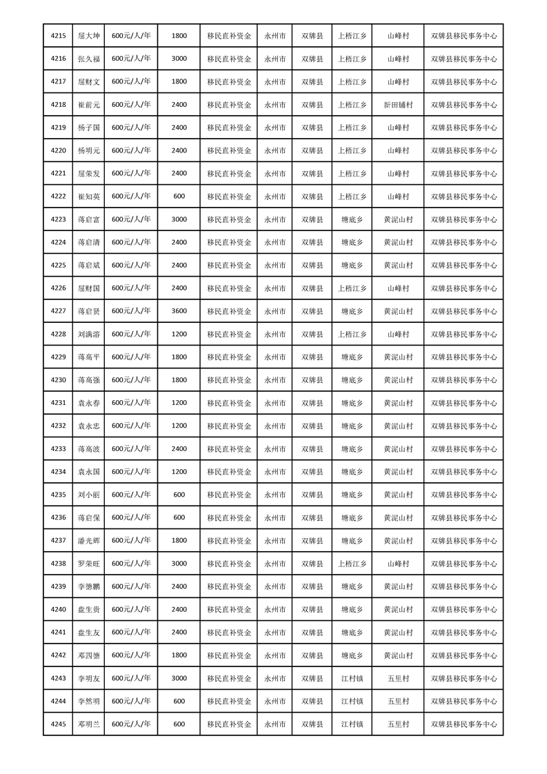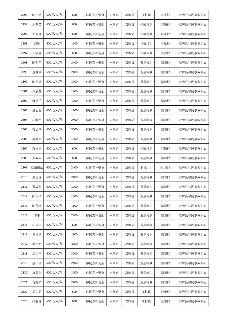 2025年双牌县库区移民后期扶持基金发放名单公示