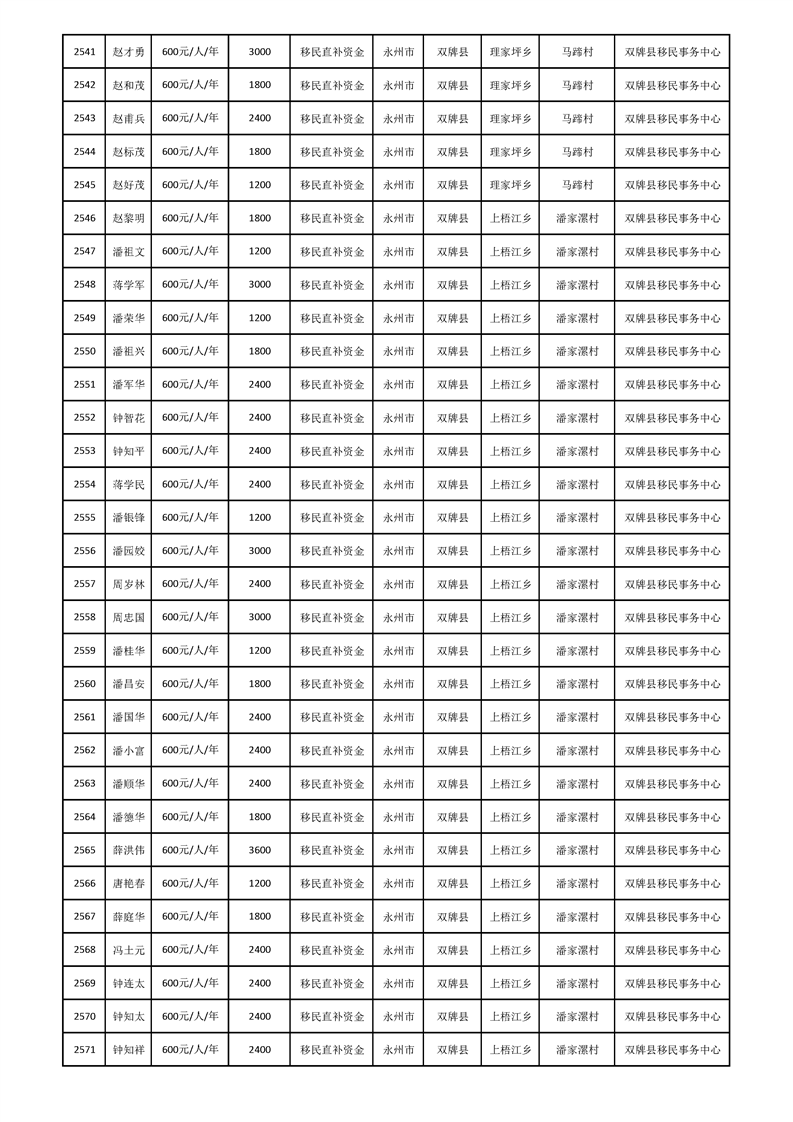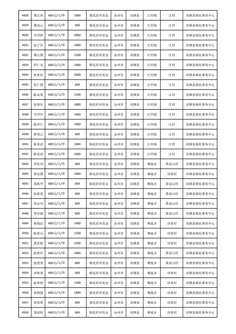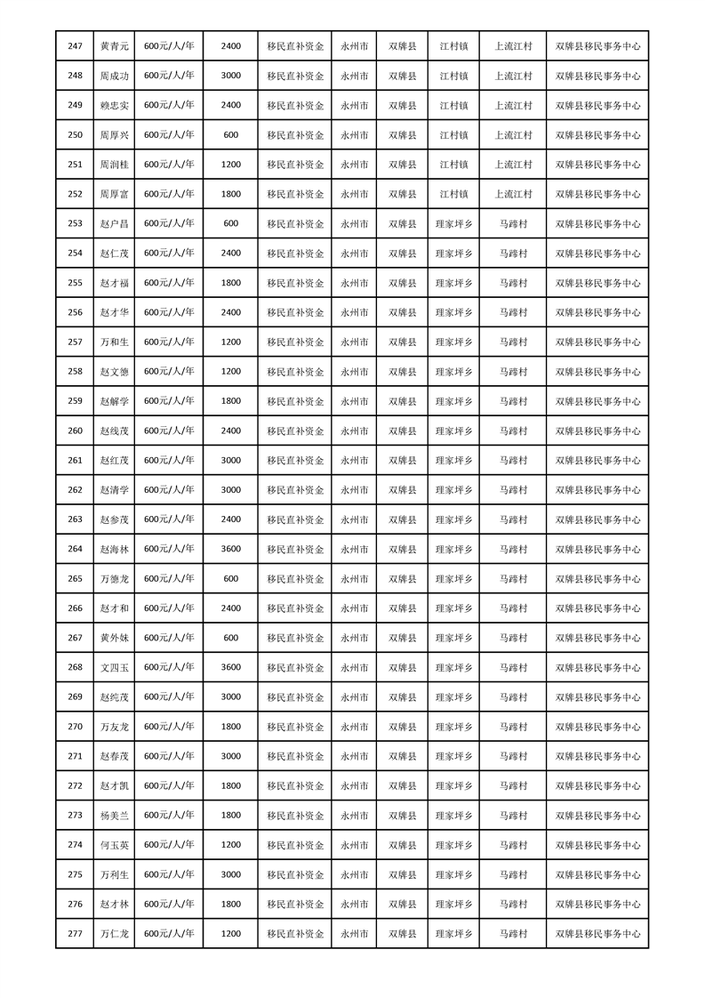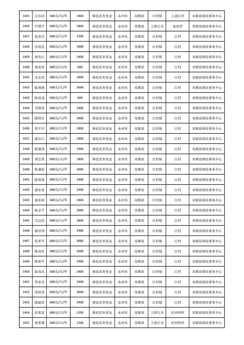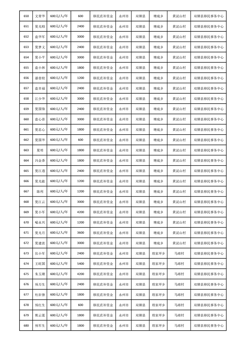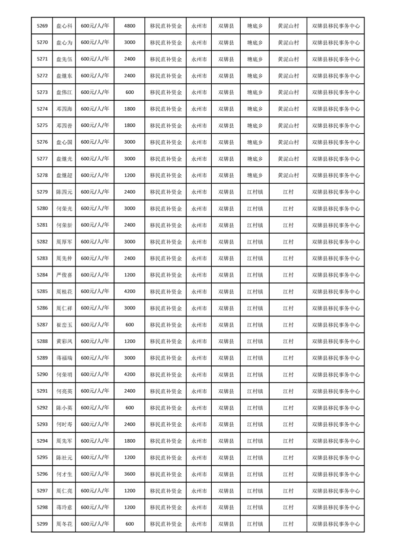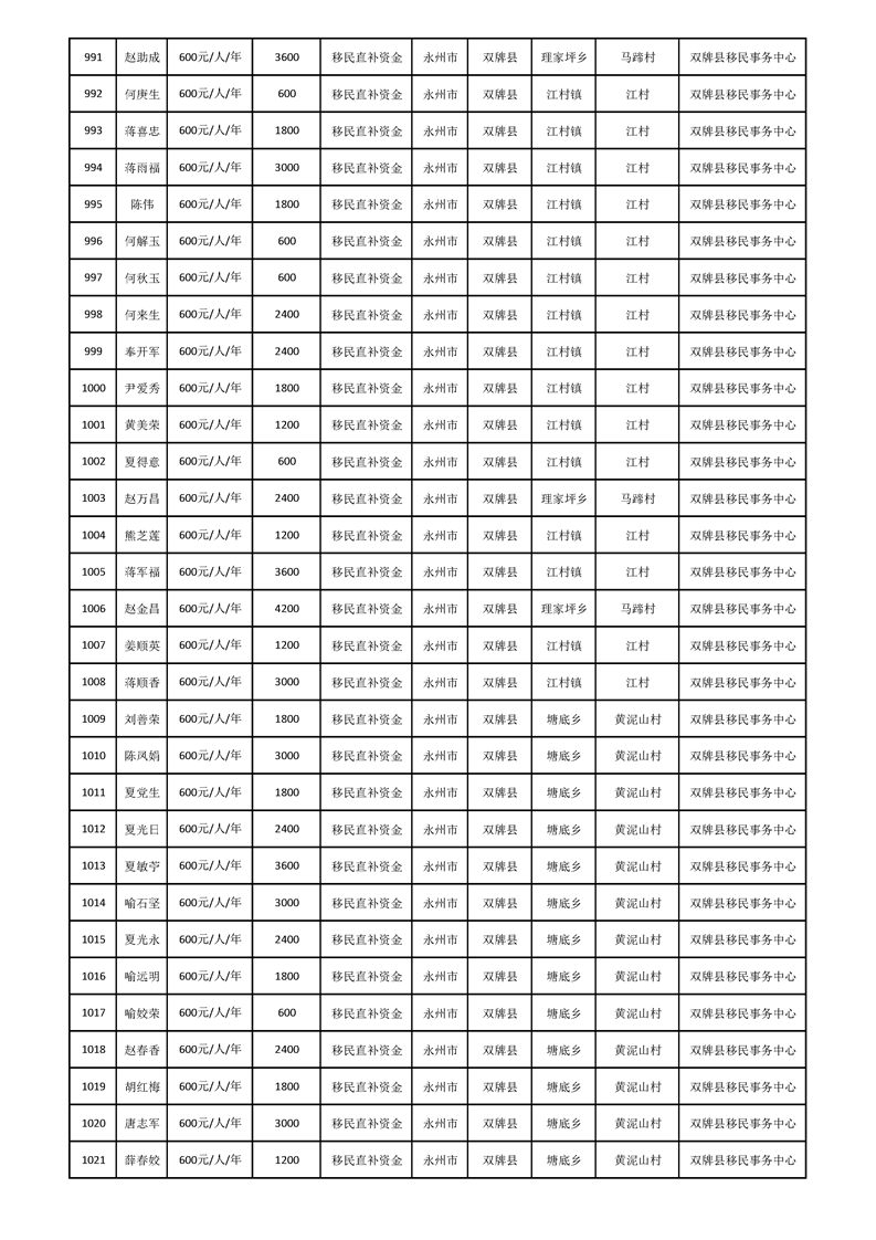 2025年双牌县库区移民后期扶持基金发放名单公示