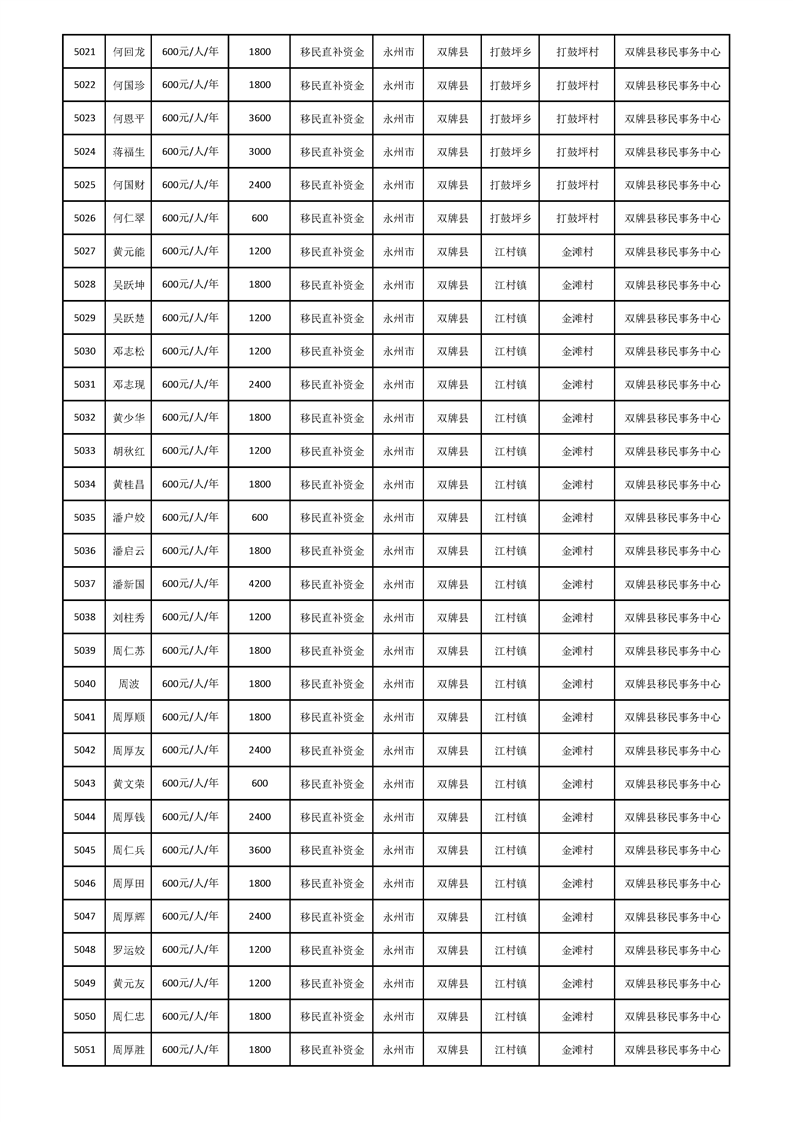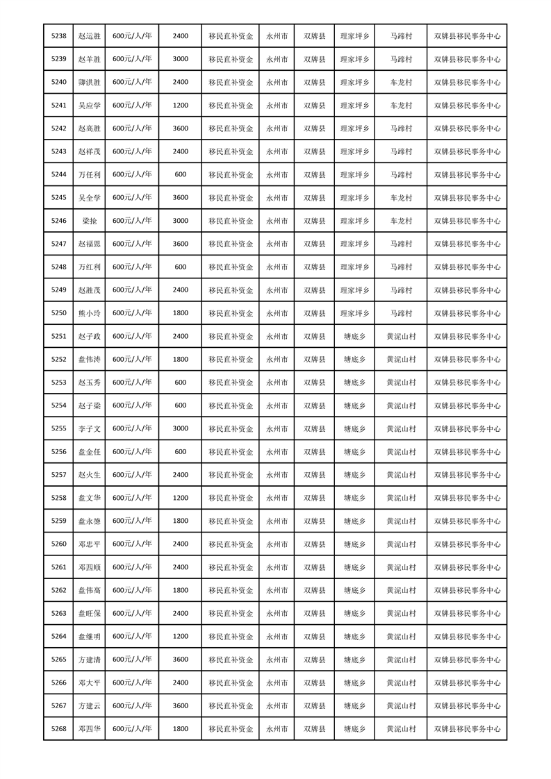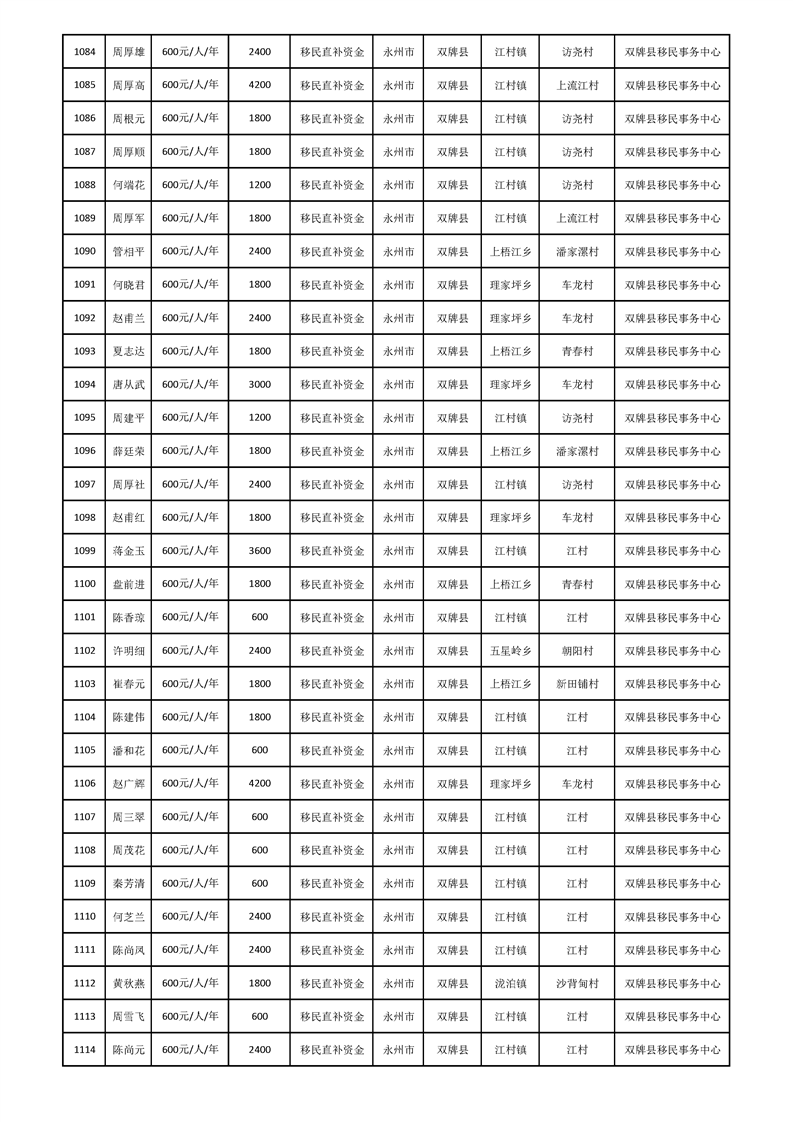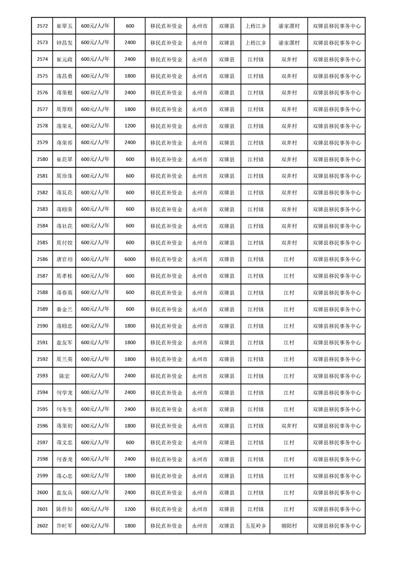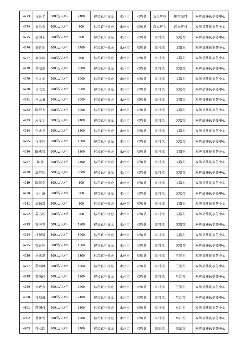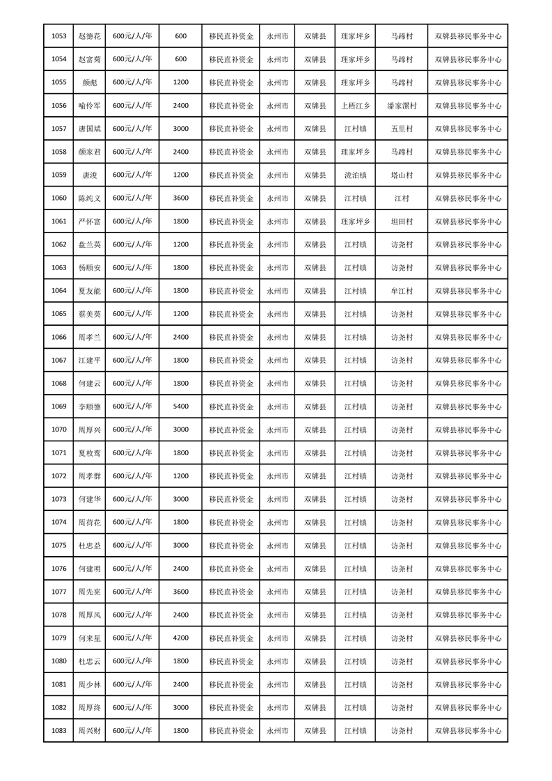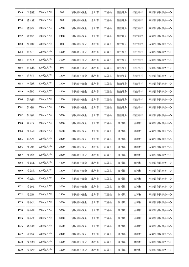 2025年双牌县库区移民后期扶持基金发放名单公示