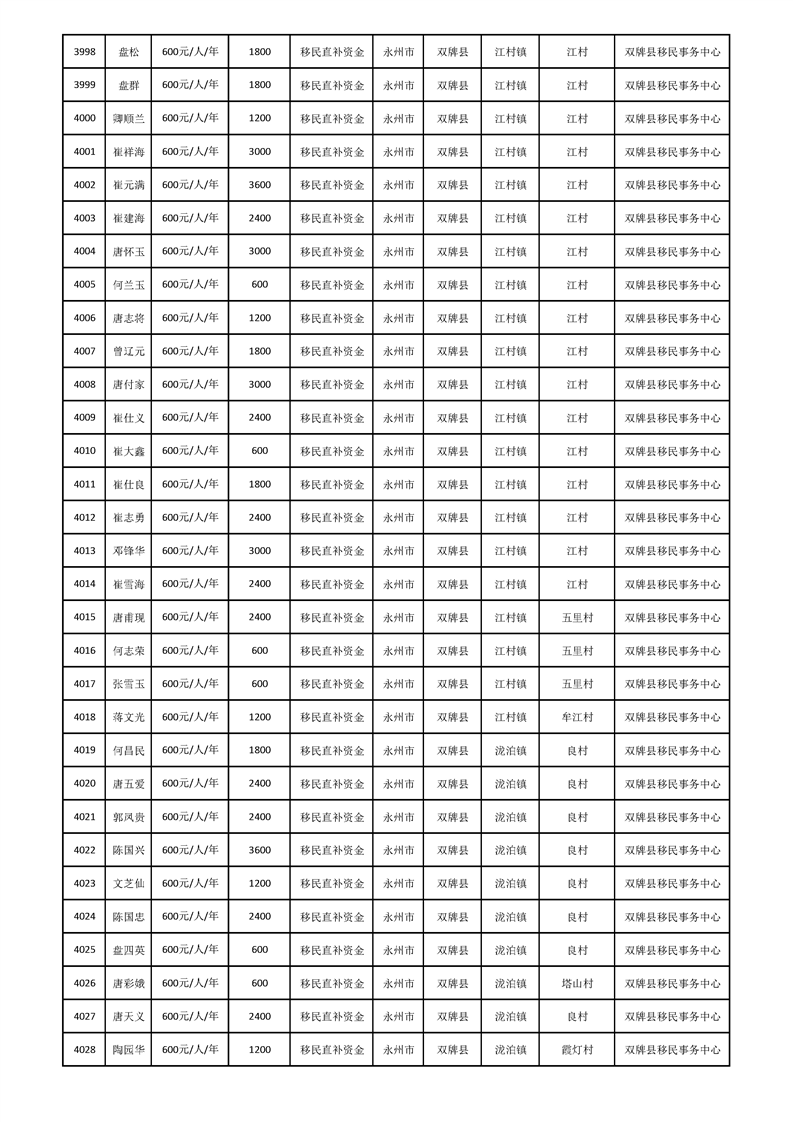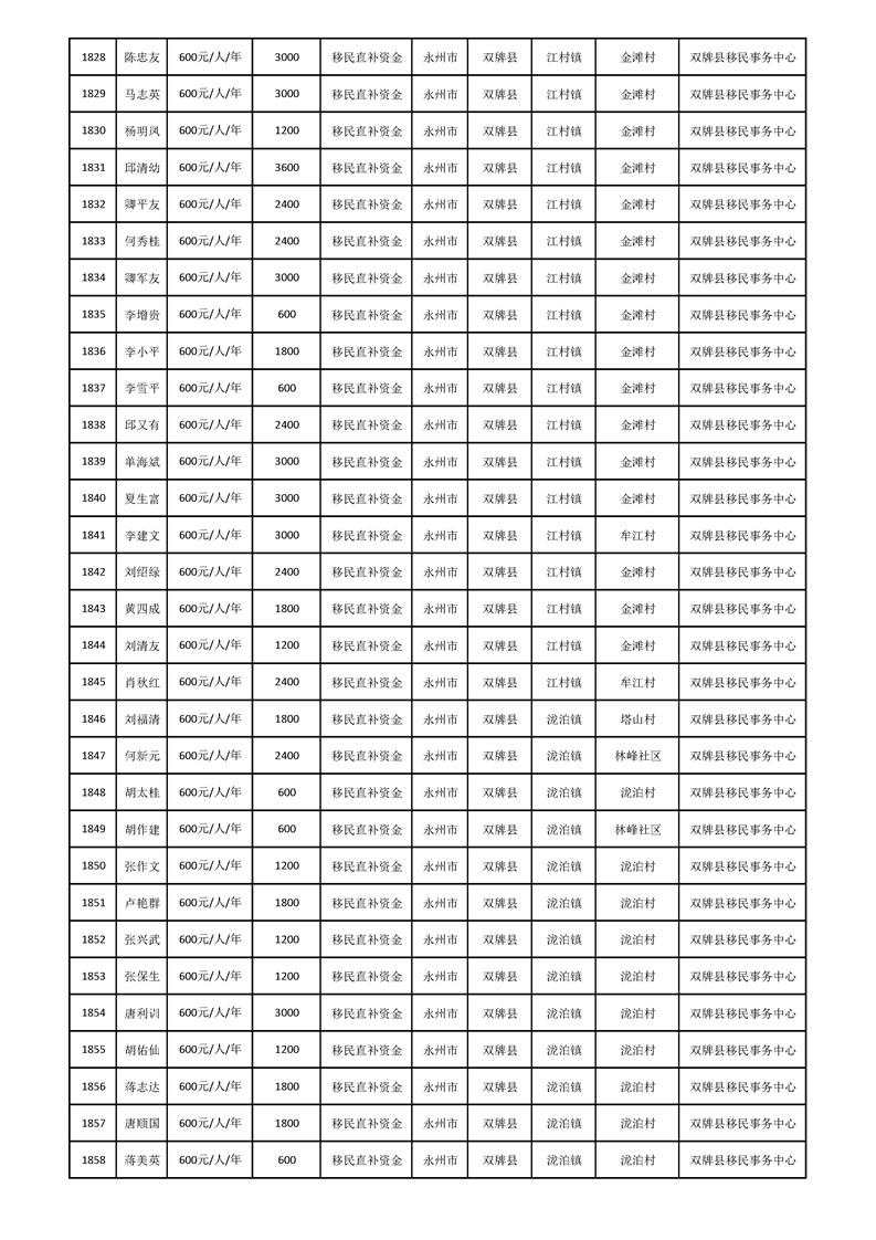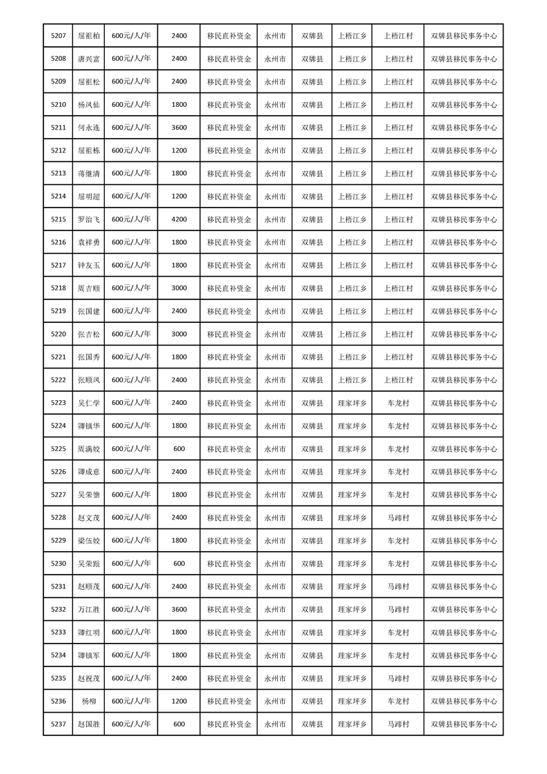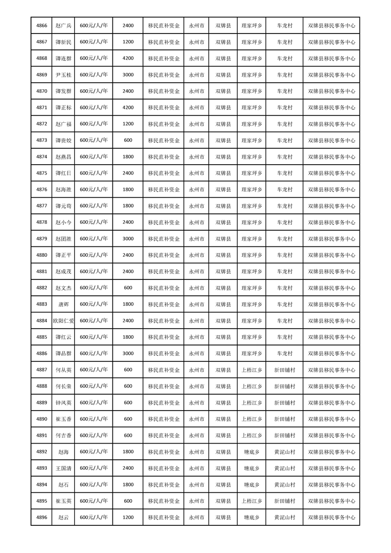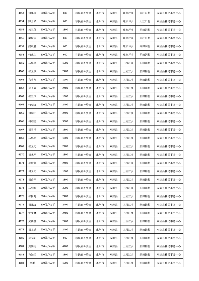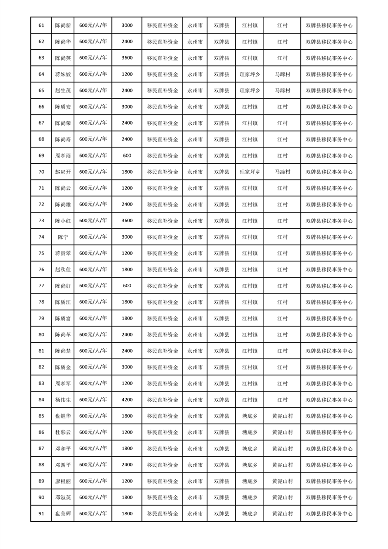 2025年双牌县库区移民后期扶持基金发放名单公示