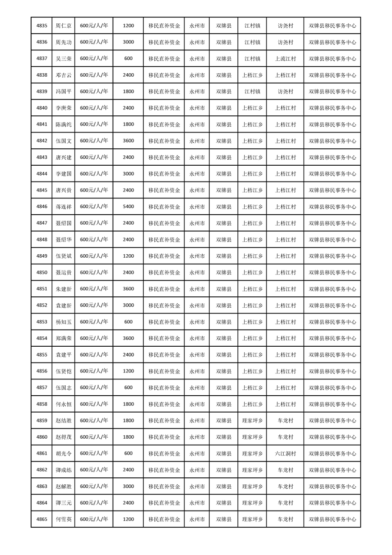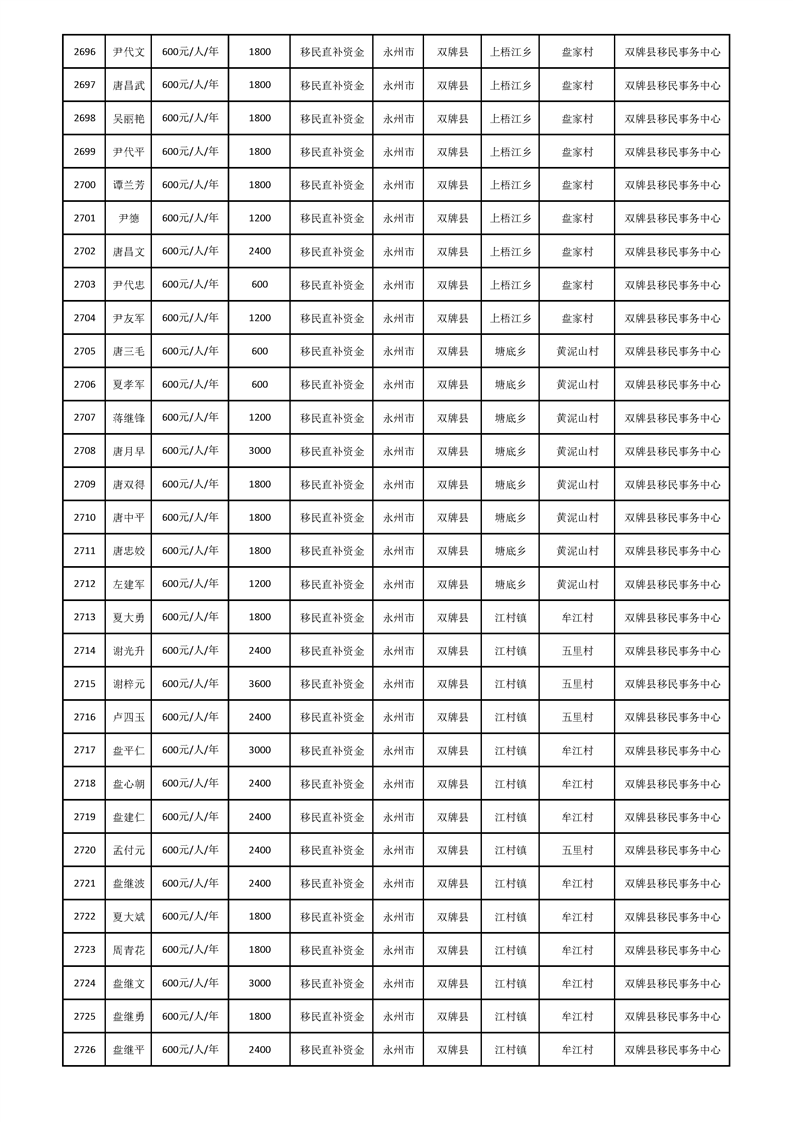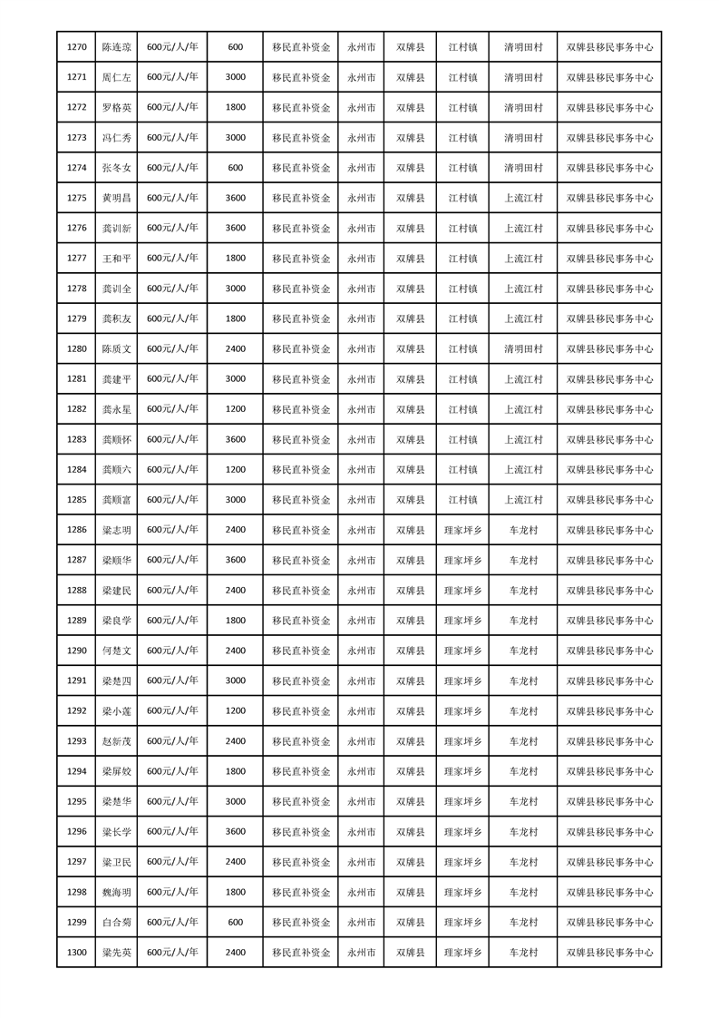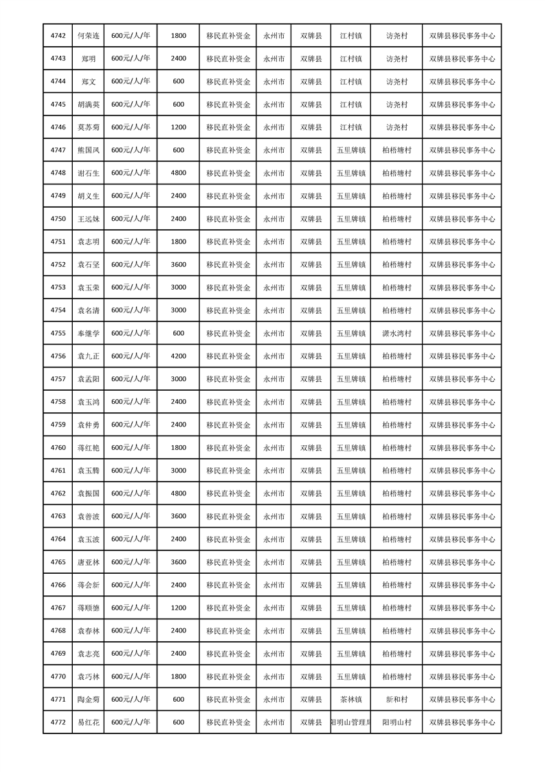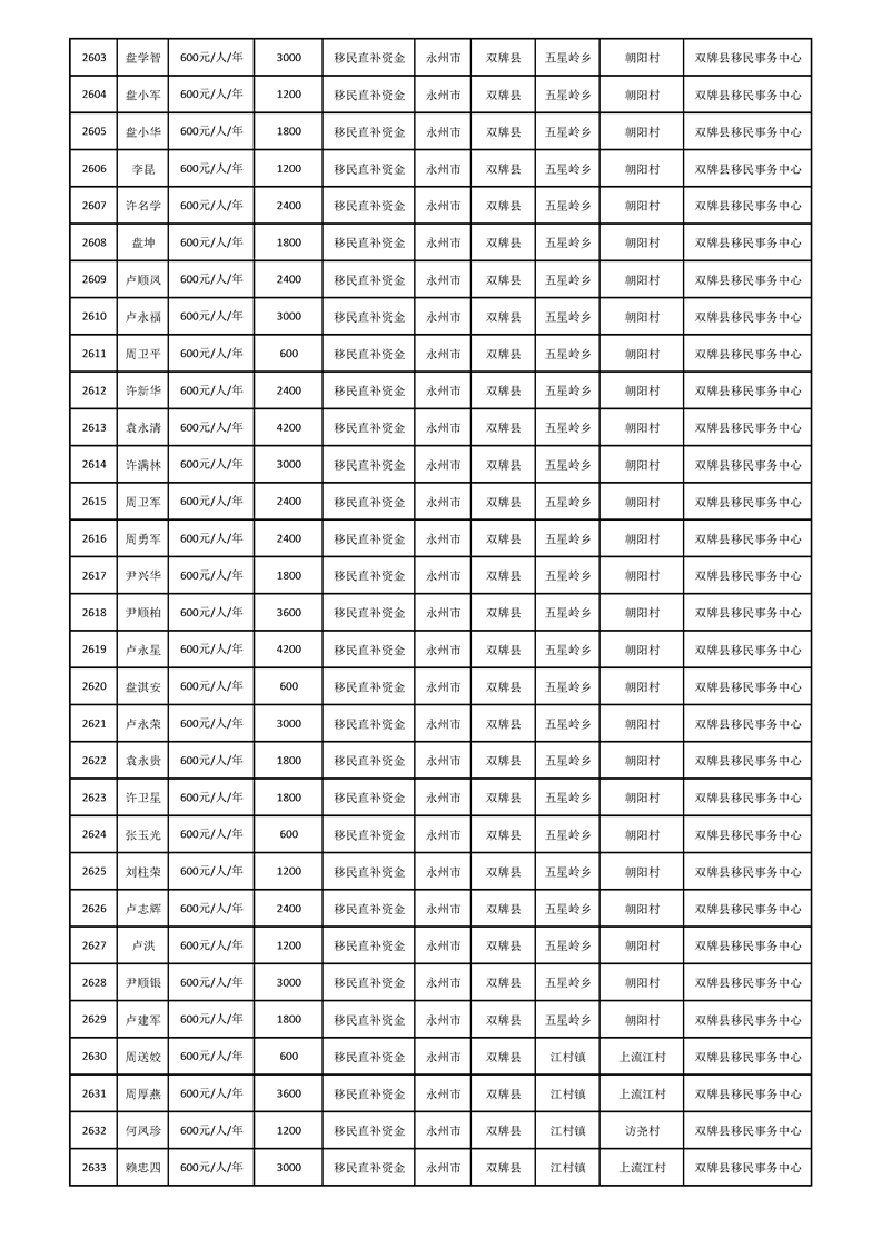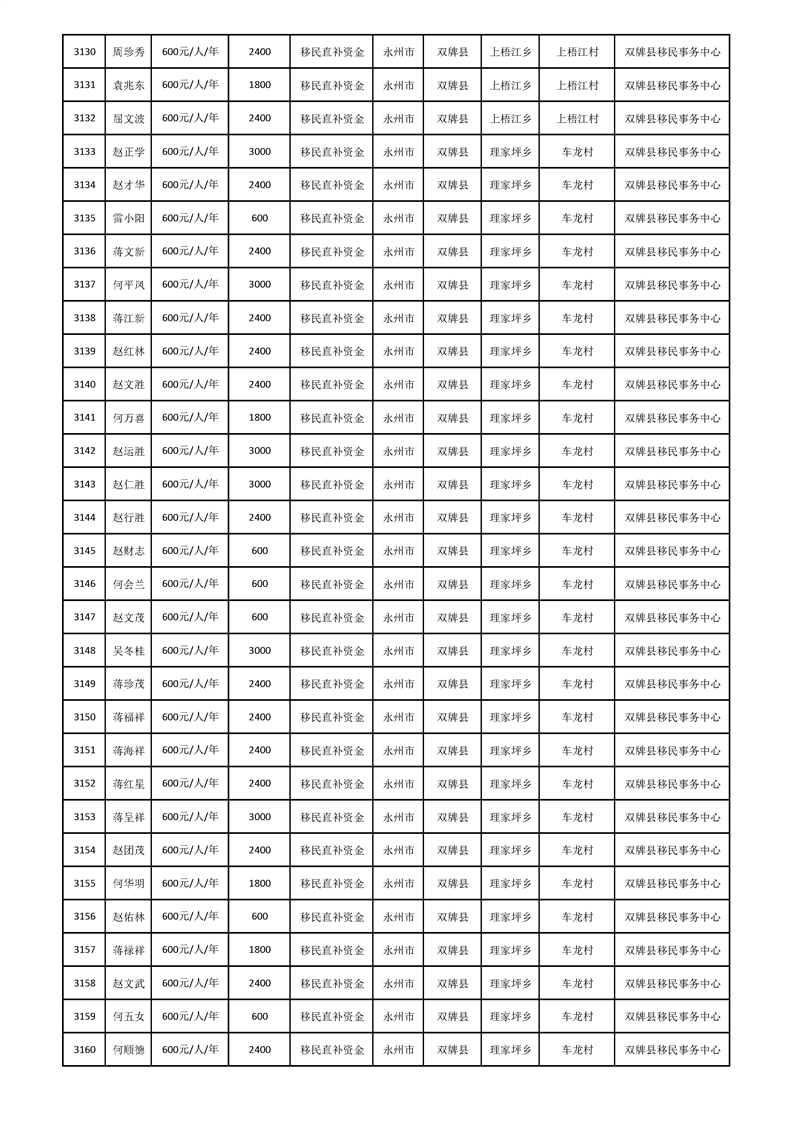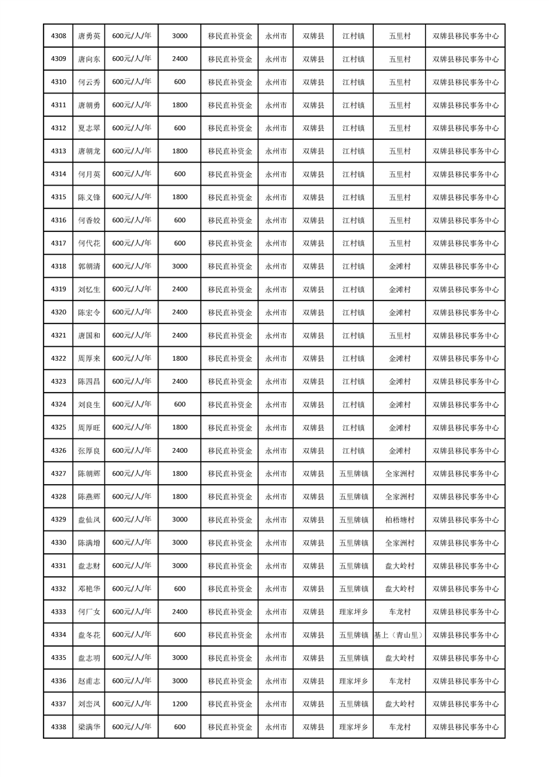 2025年双牌县库区移民后期扶持基金发放名单公示