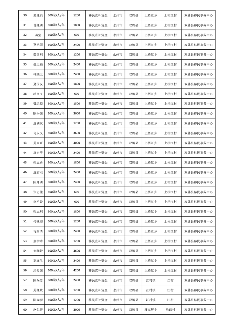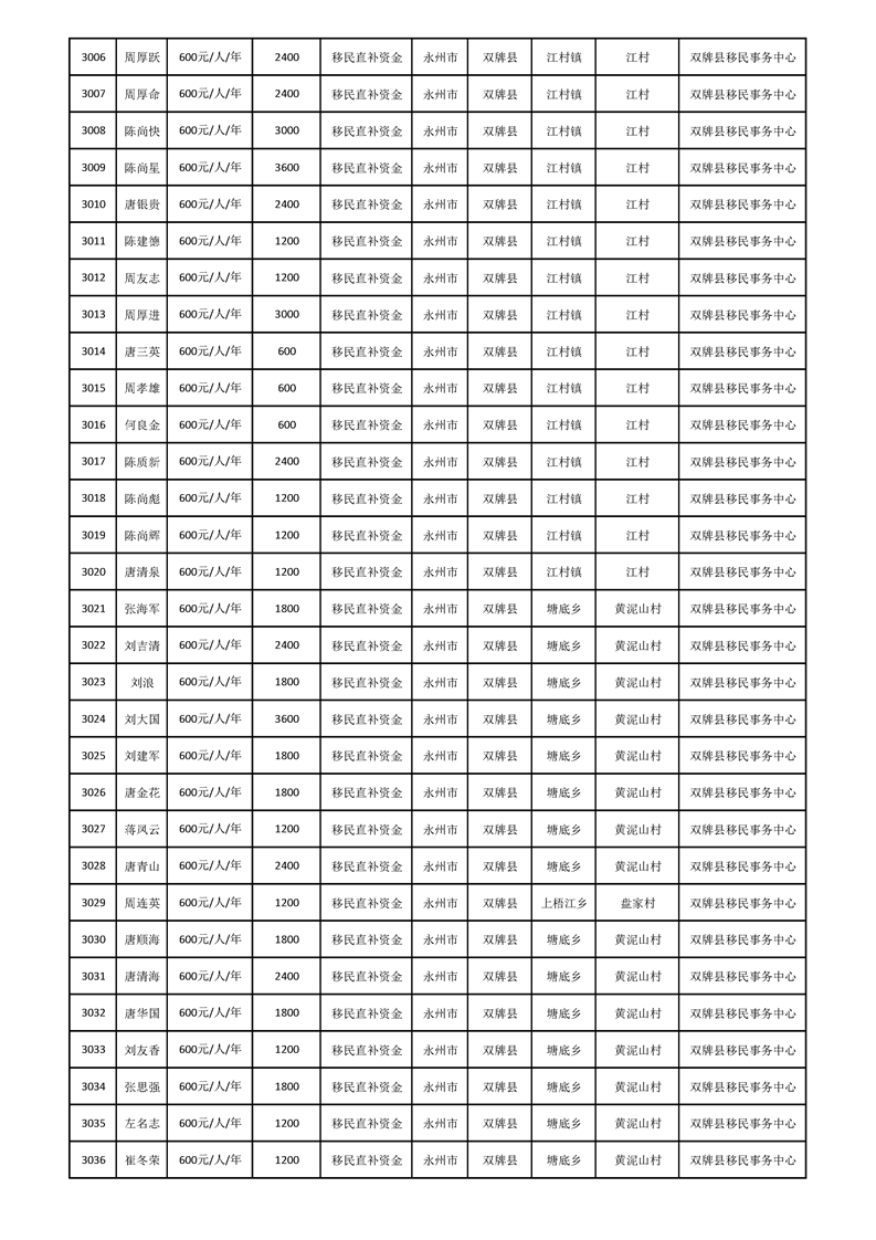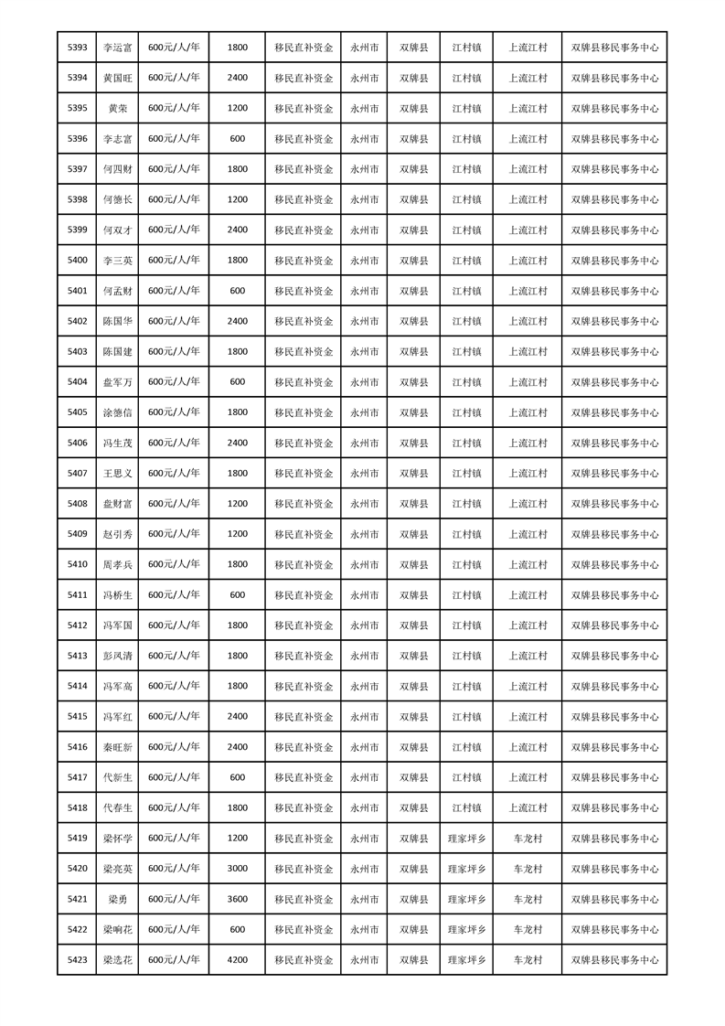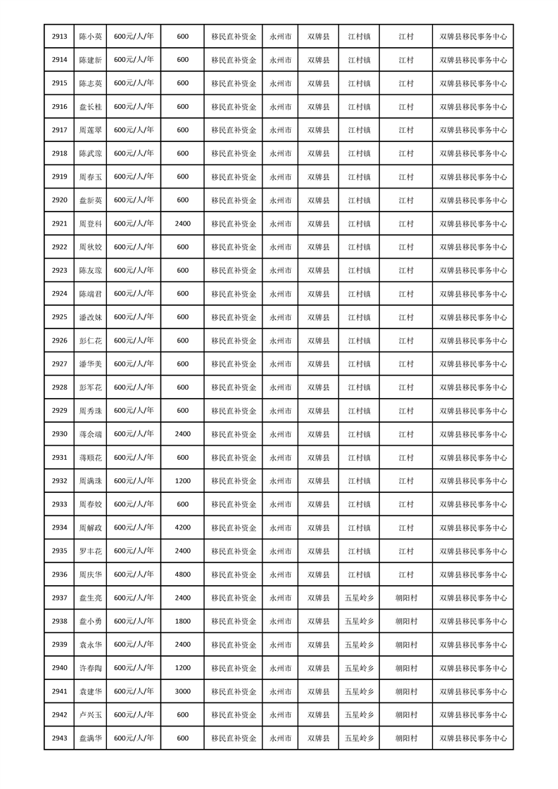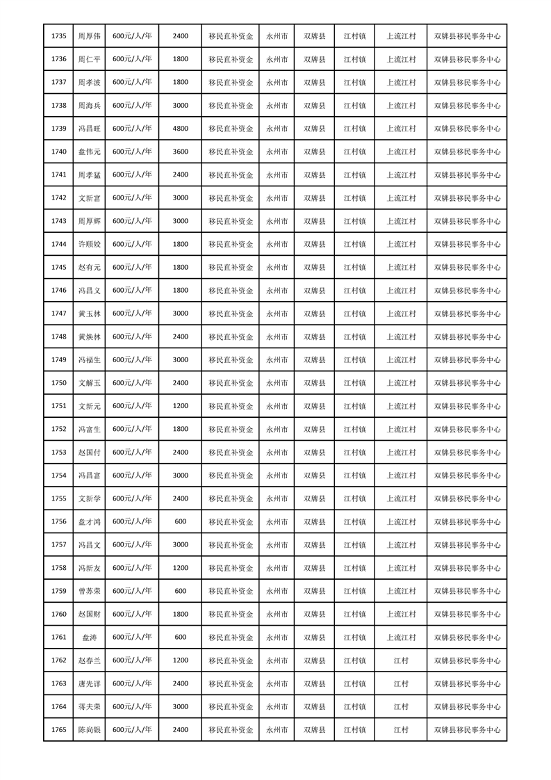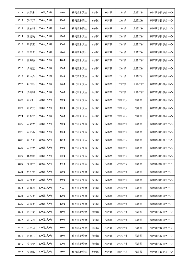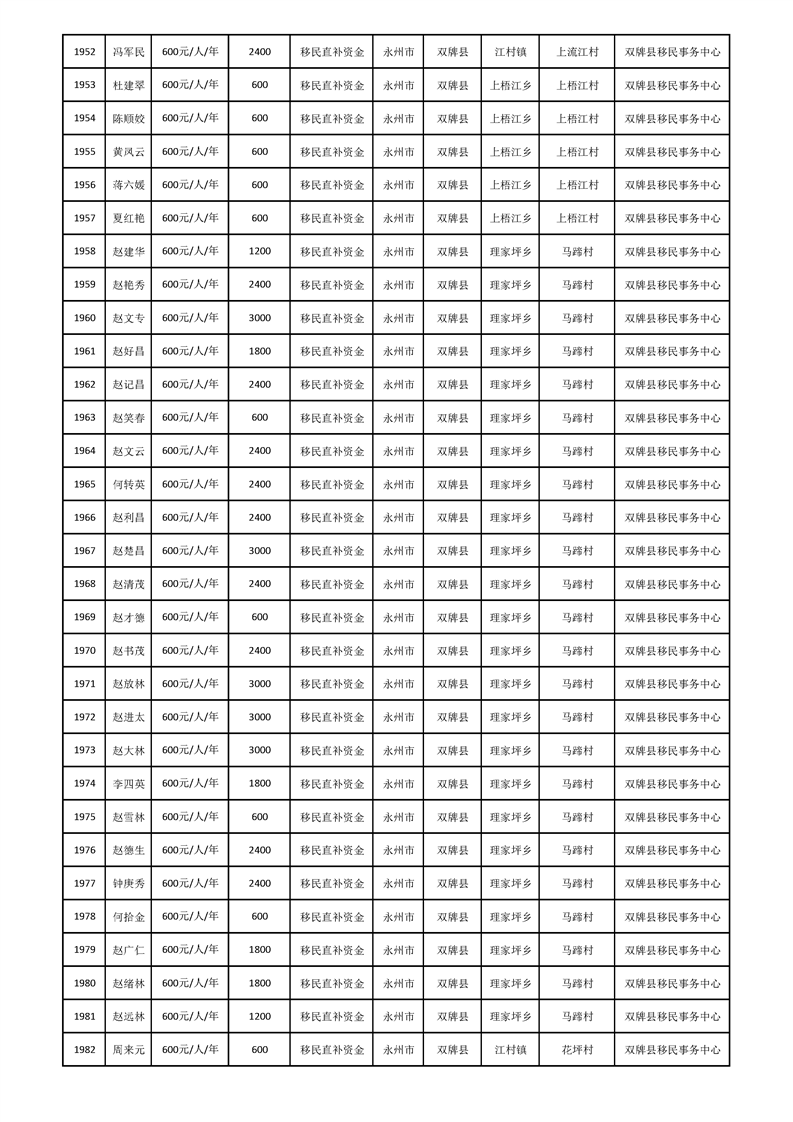 2025年双牌县库区移民后期扶持基金发放名单公示