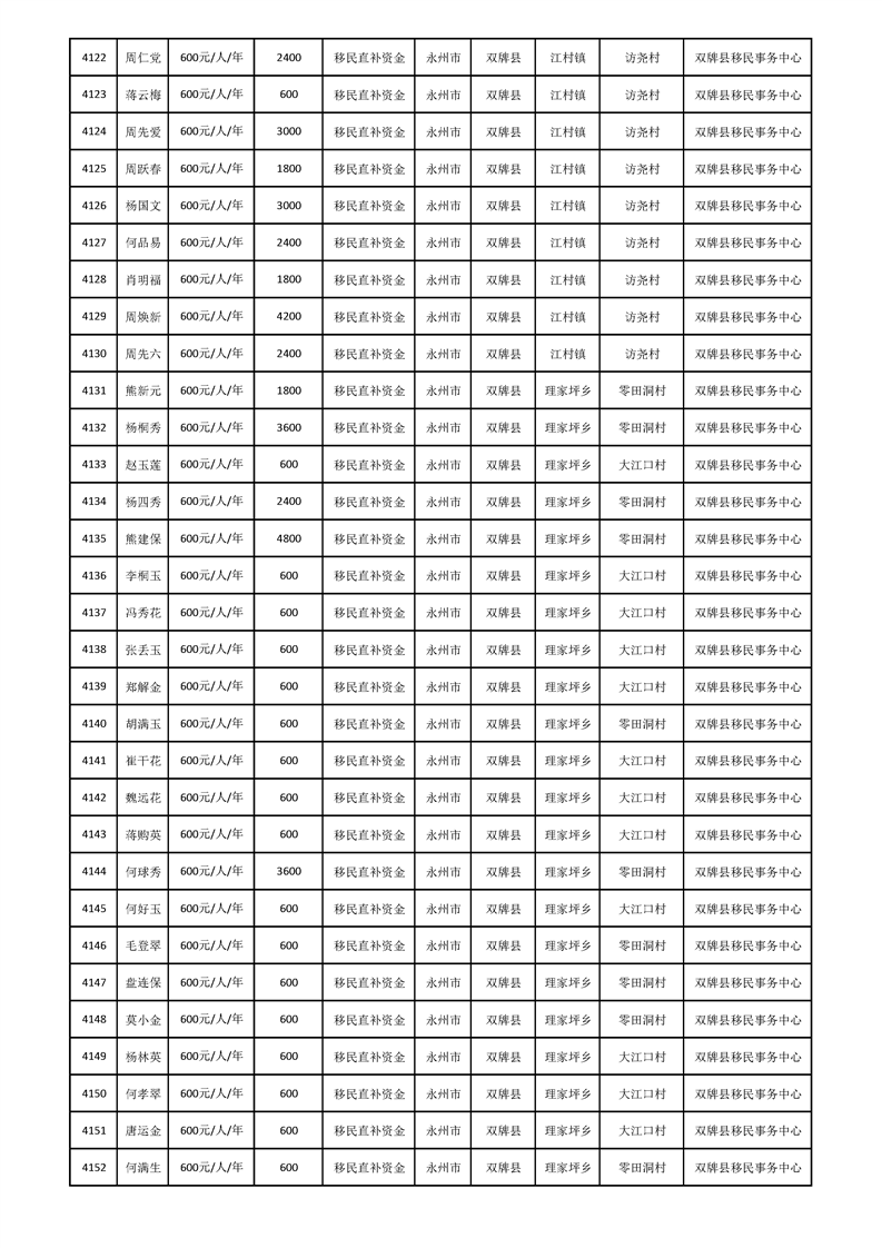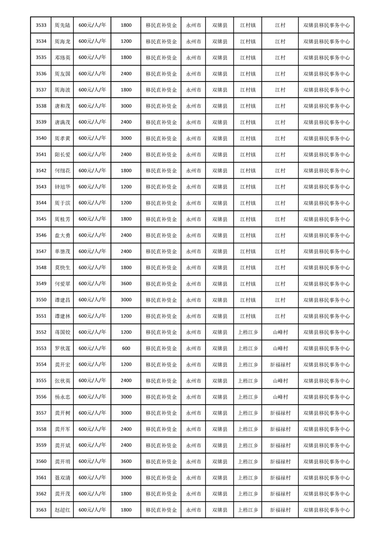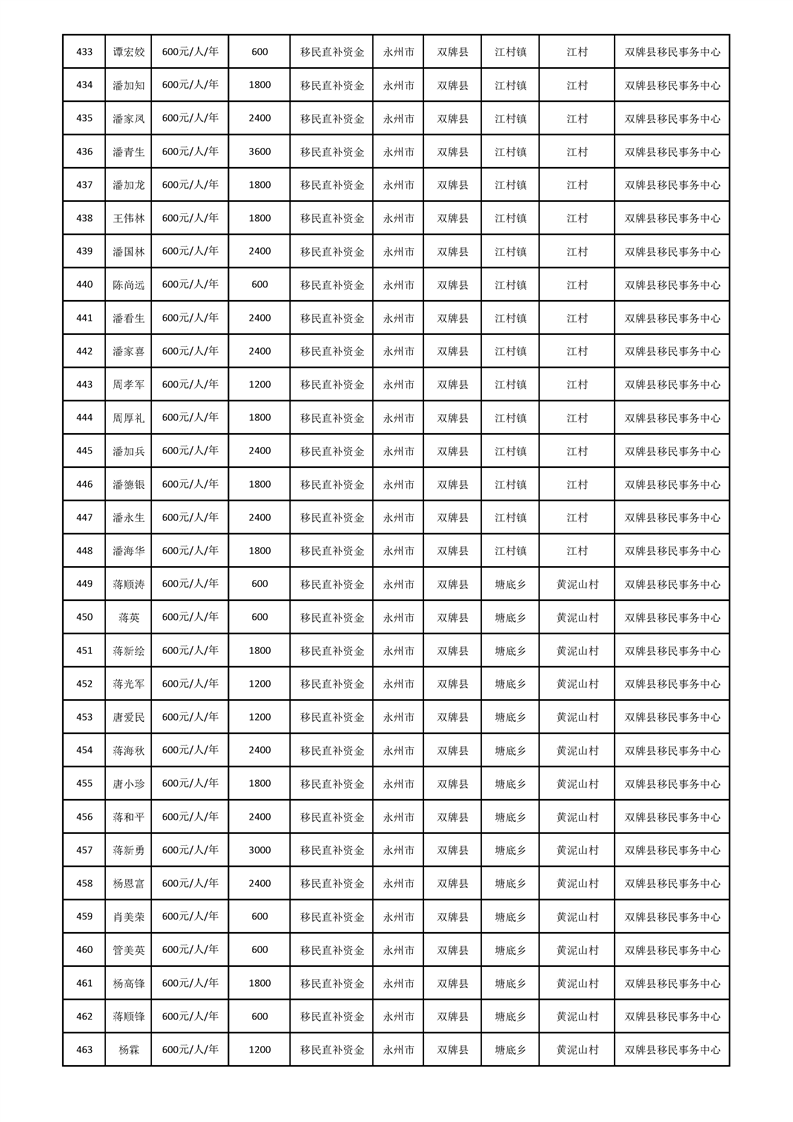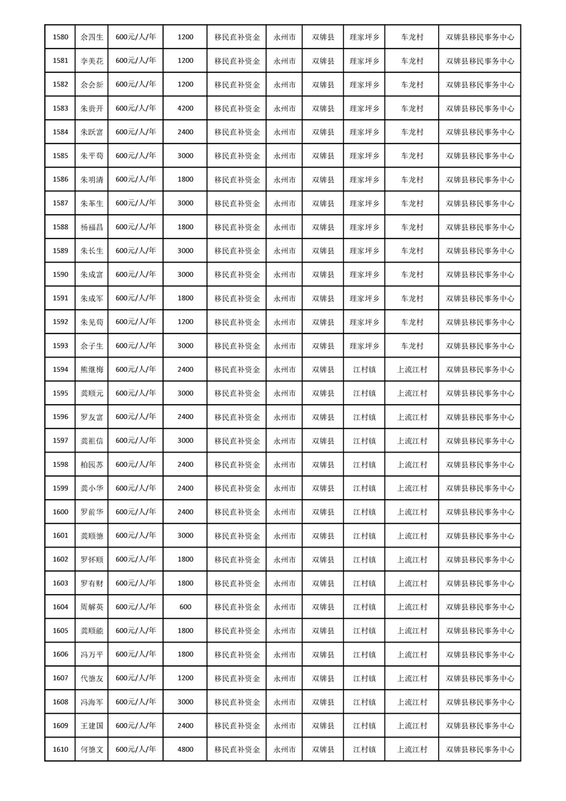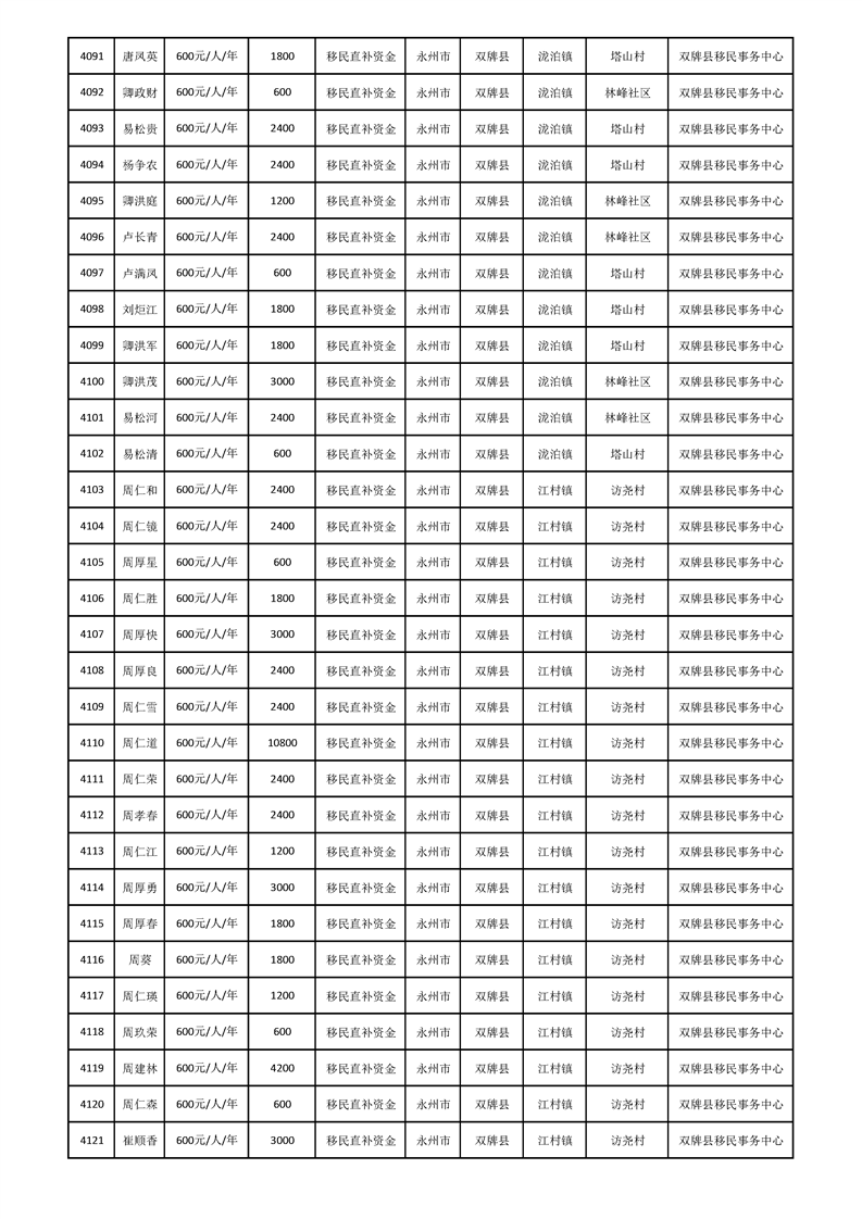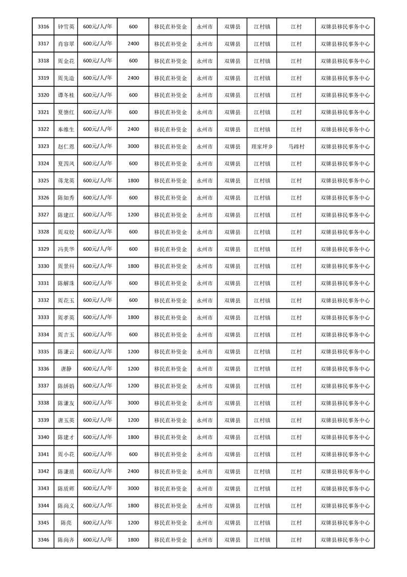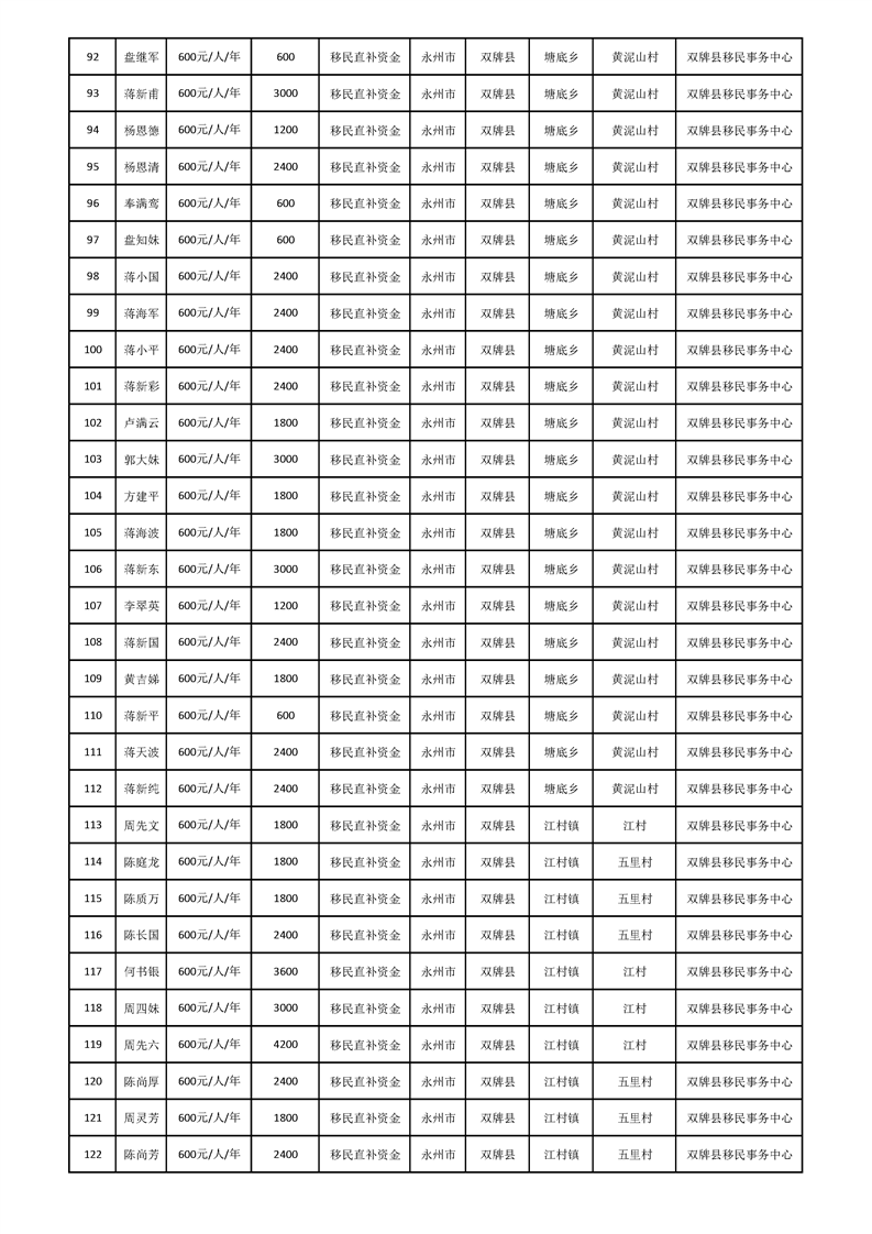 2025年双牌县库区移民后期扶持基金发放名单公示