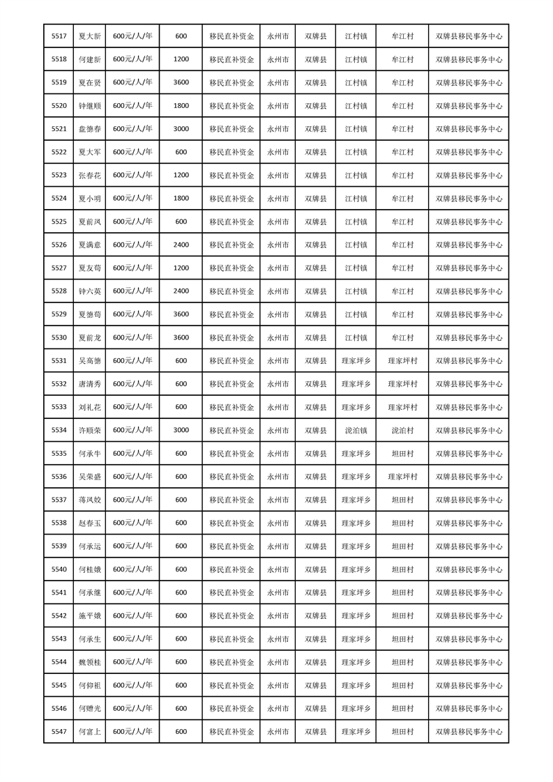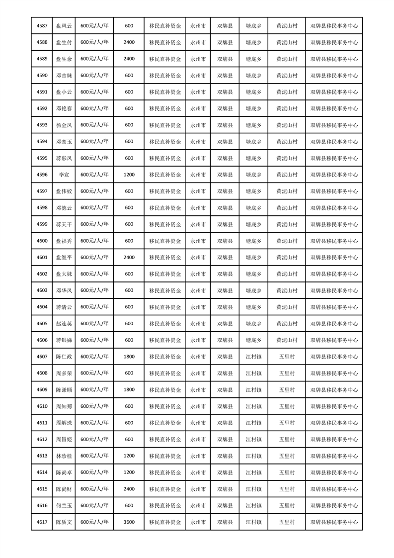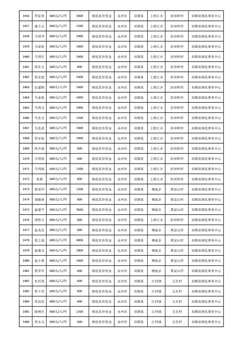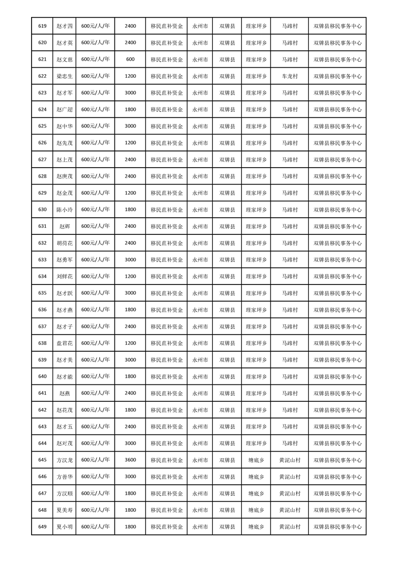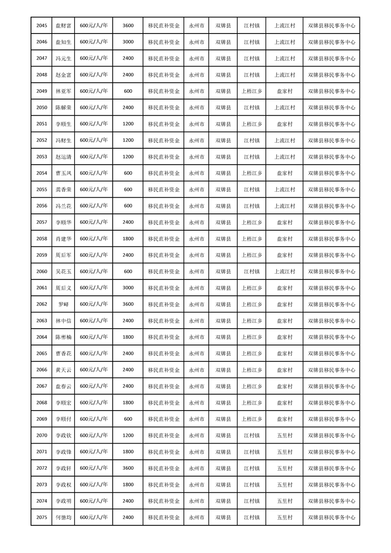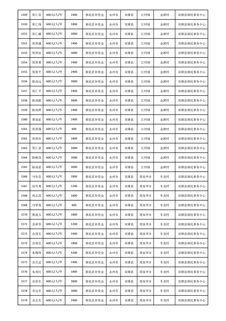 2025年双牌县库区移民后期扶持基金发放名单公示