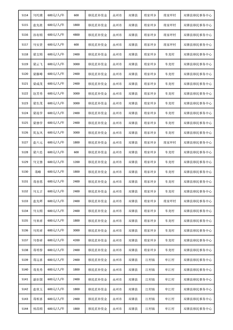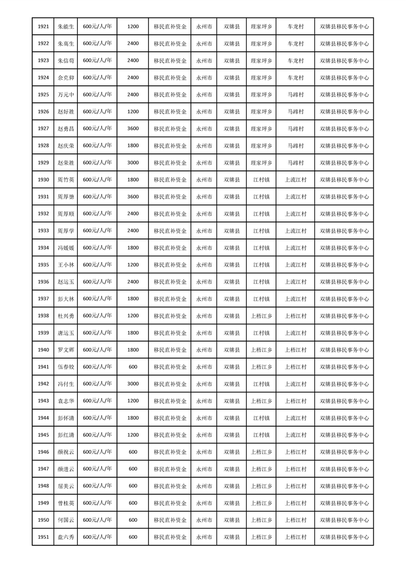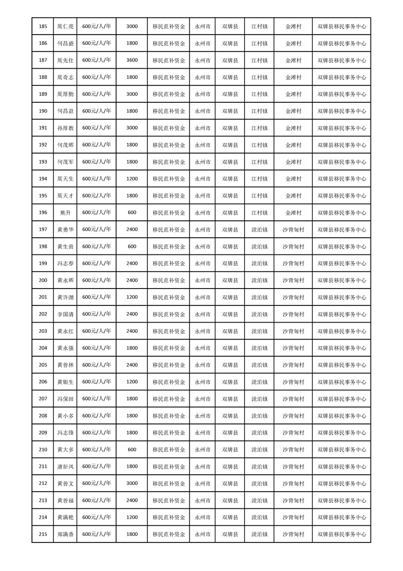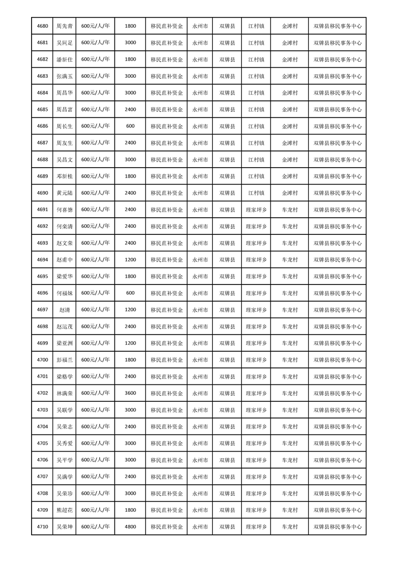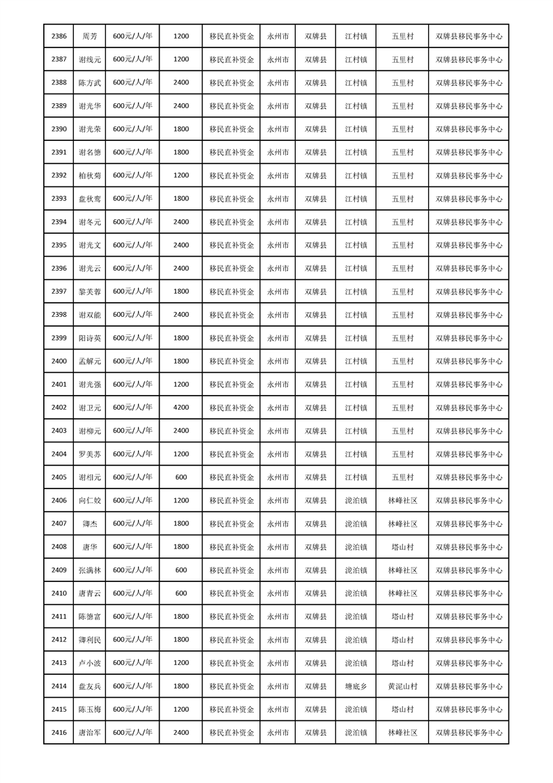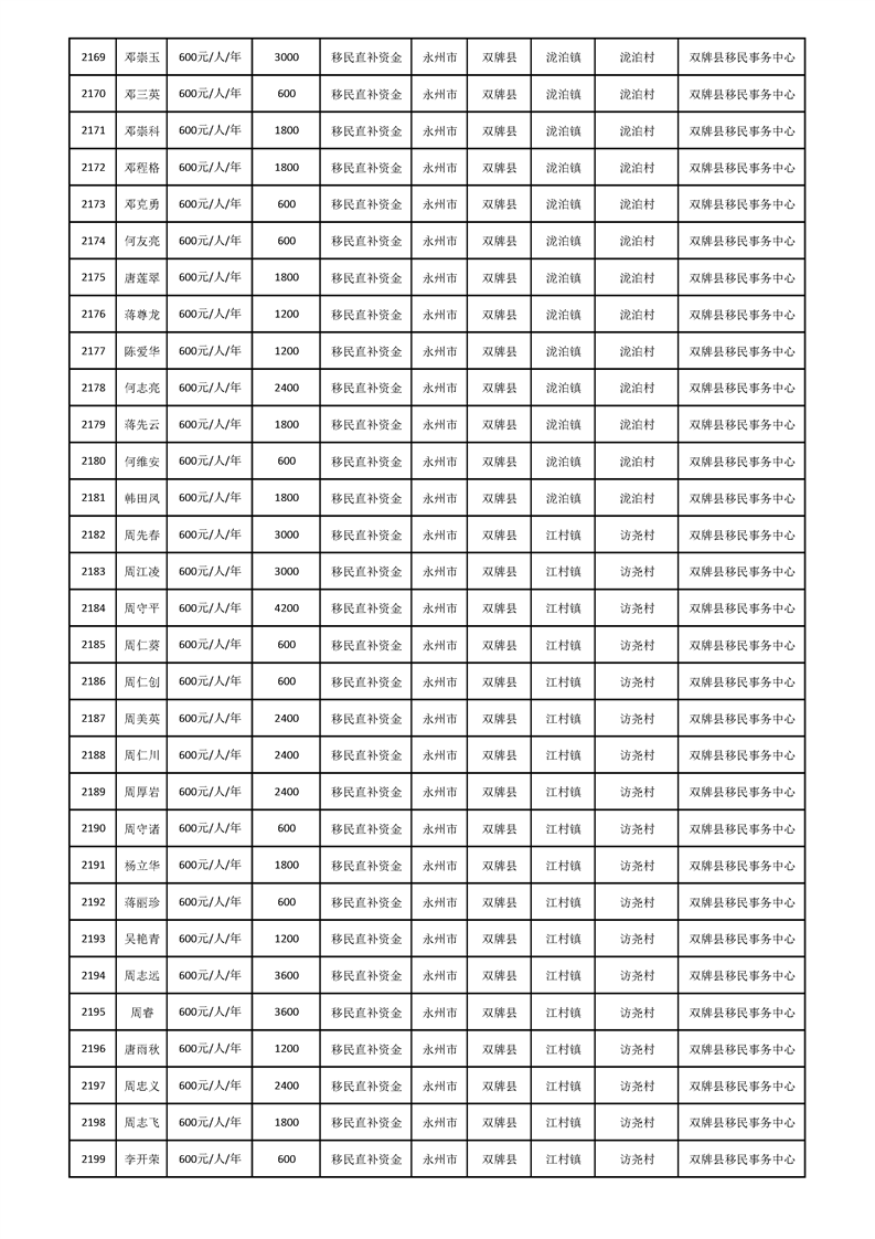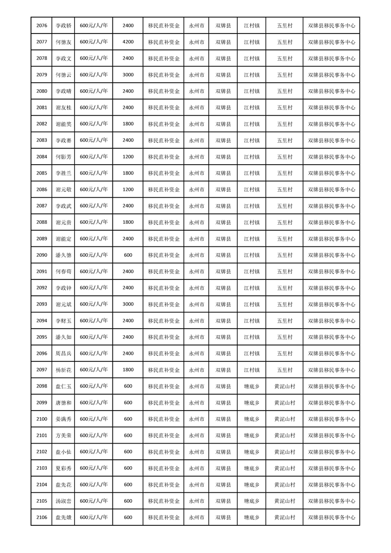 2025年双牌县库区移民后期扶持基金发放名单公示