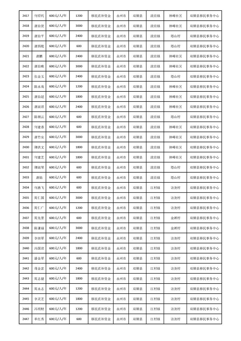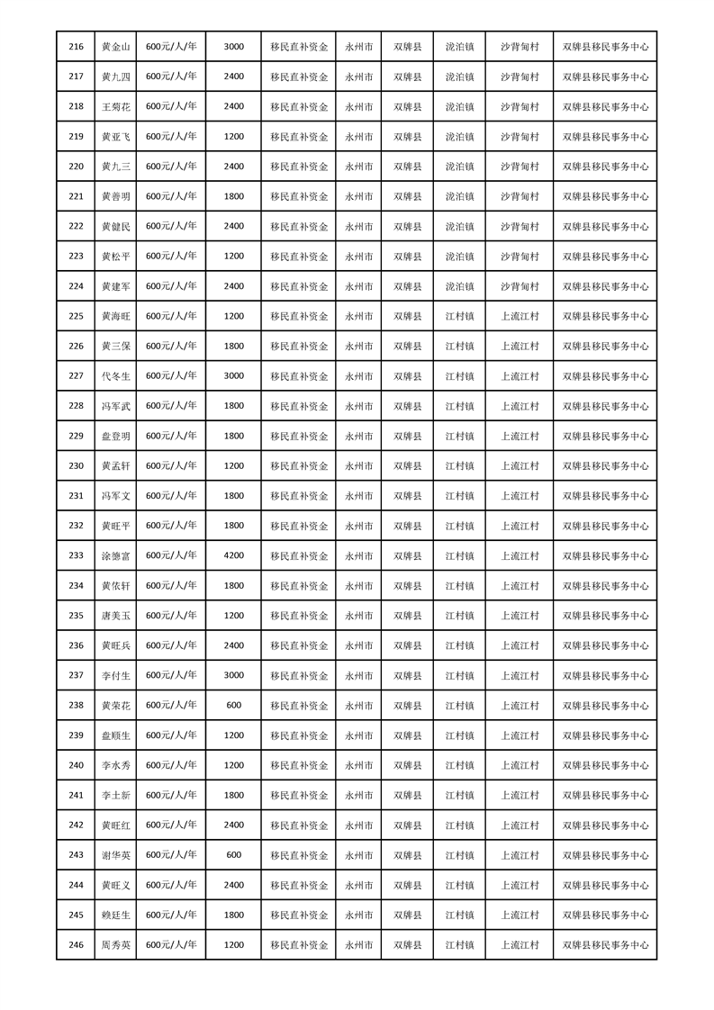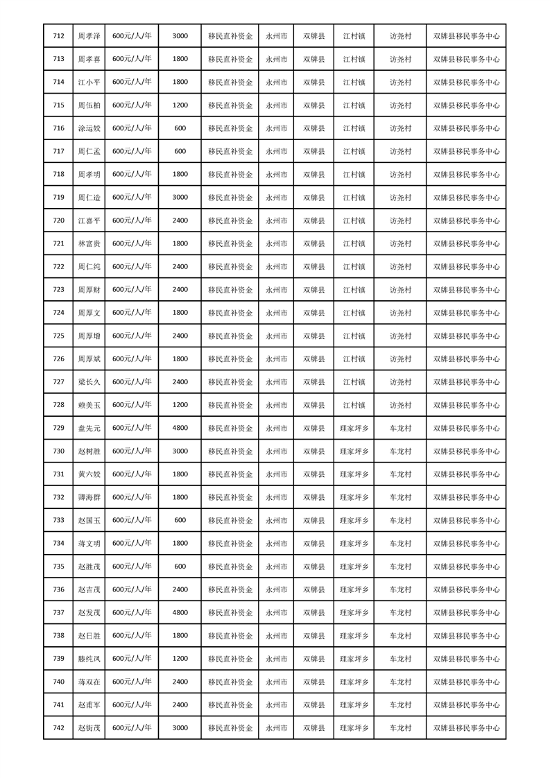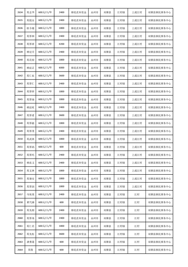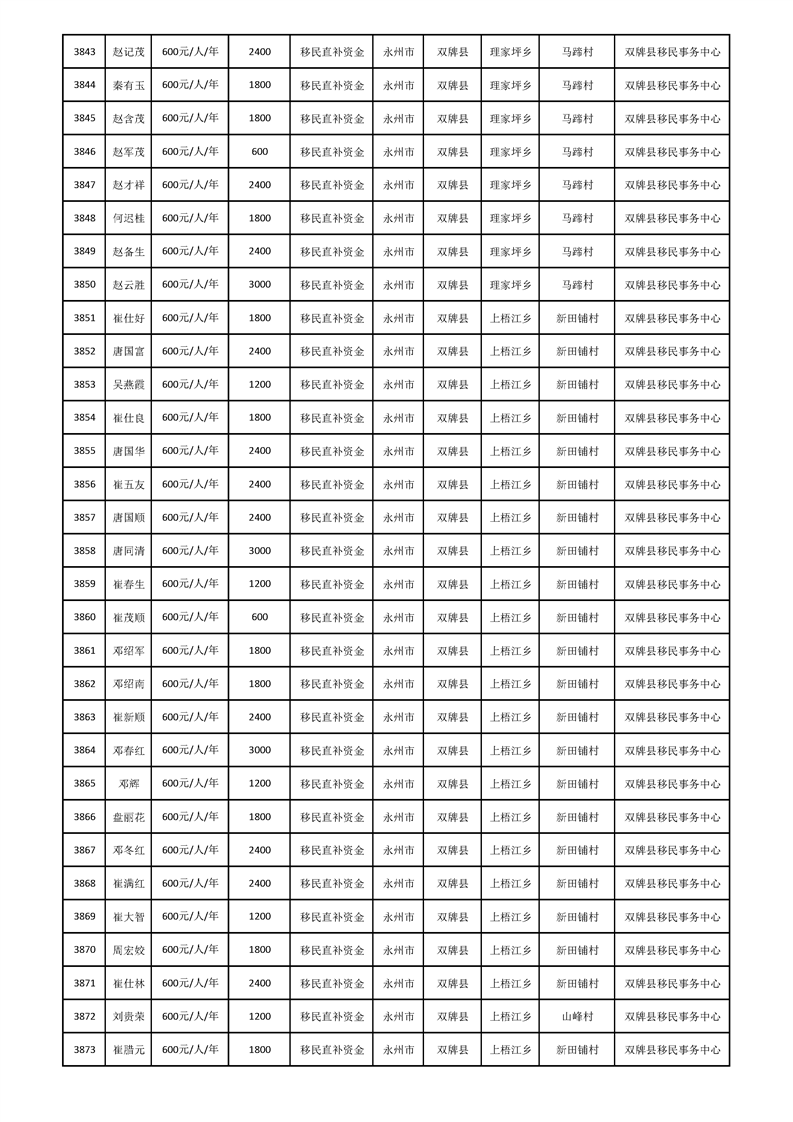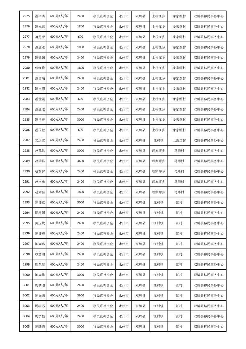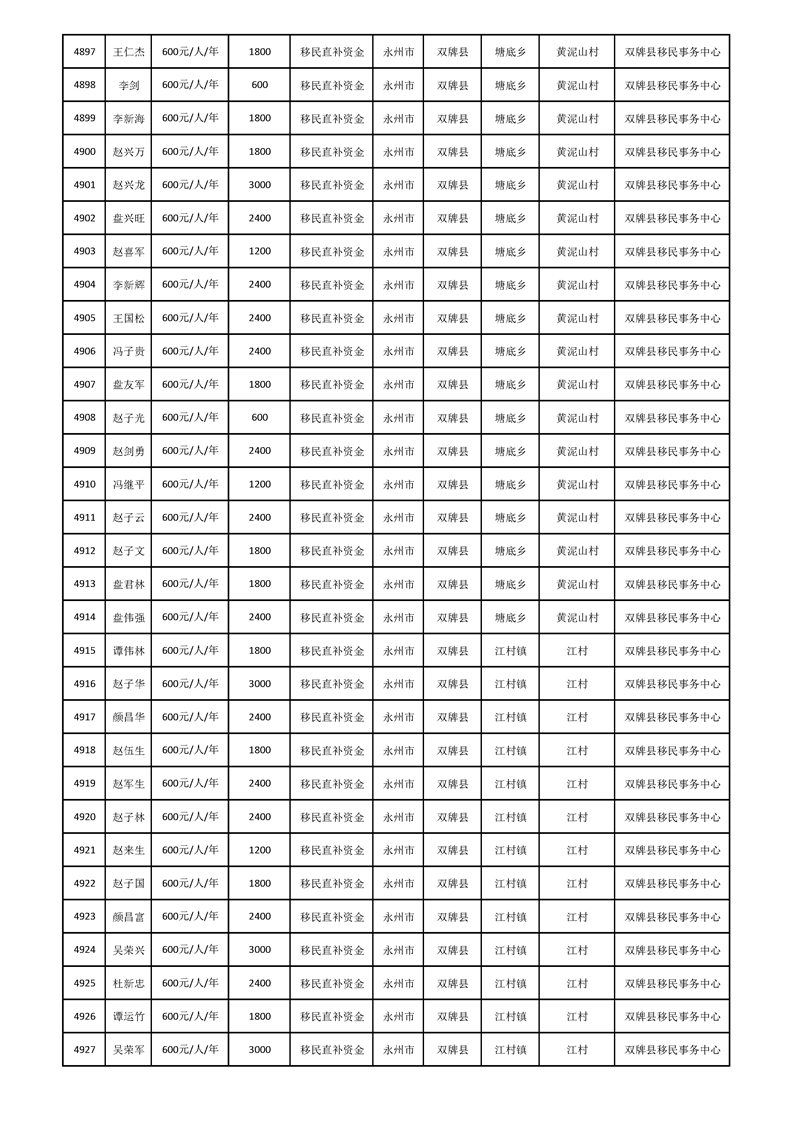 2025年双牌县库区移民后期扶持基金发放名单公示
