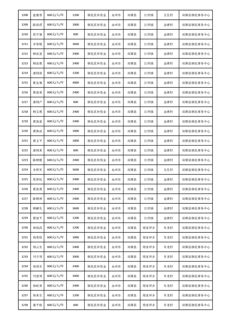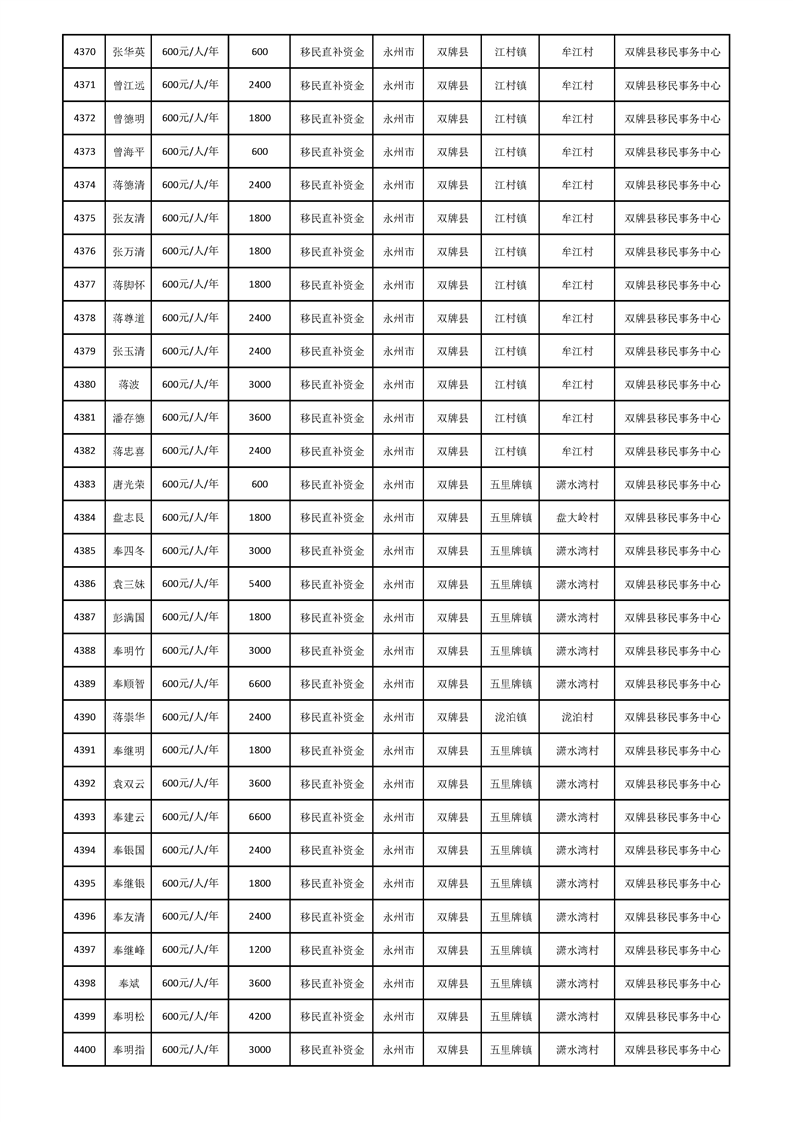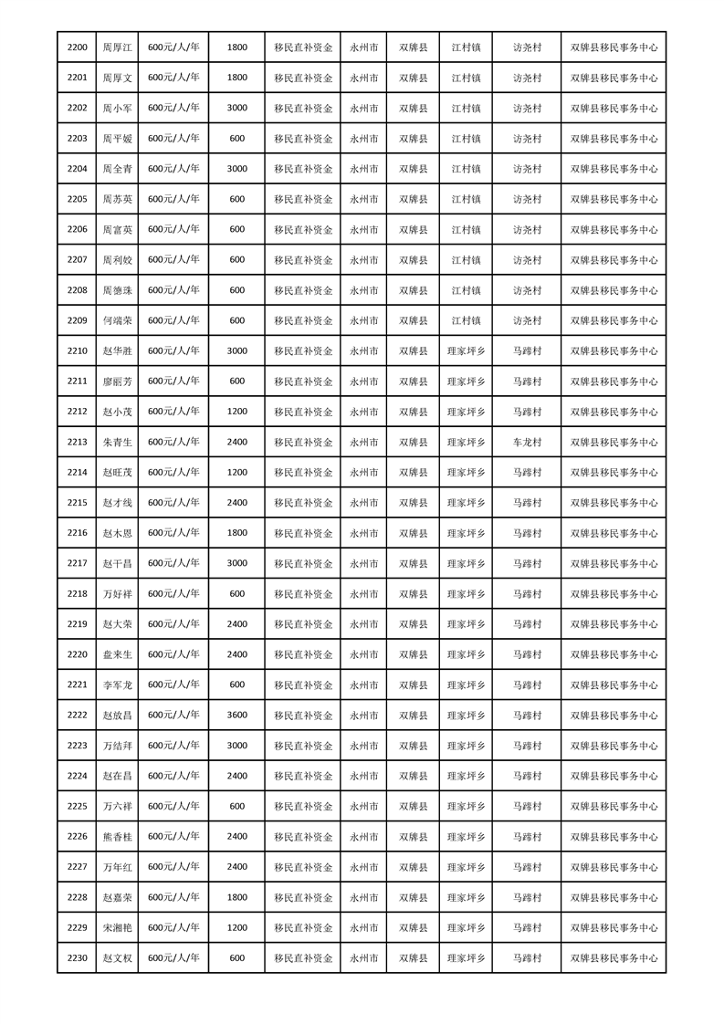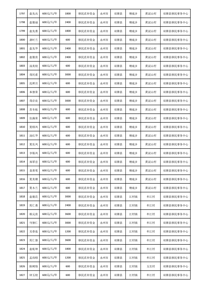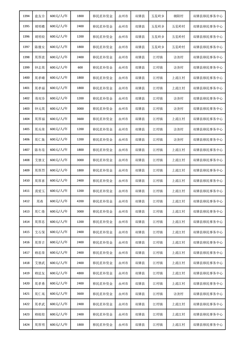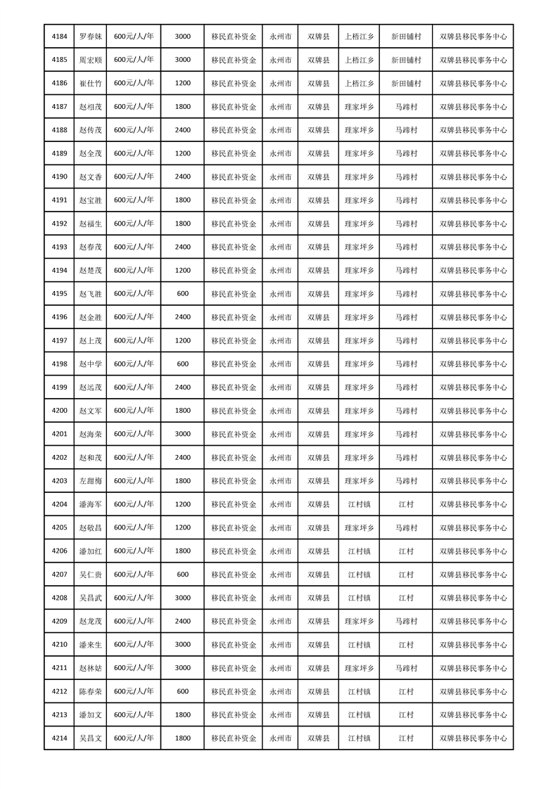 2025年双牌县库区移民后期扶持基金发放名单公示