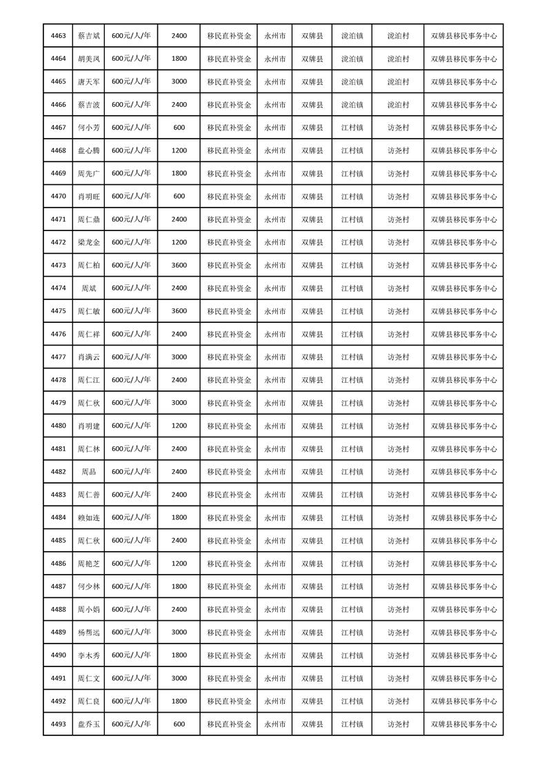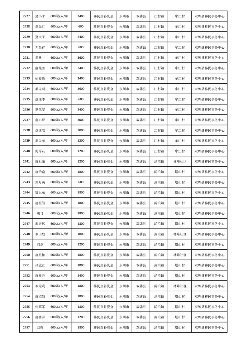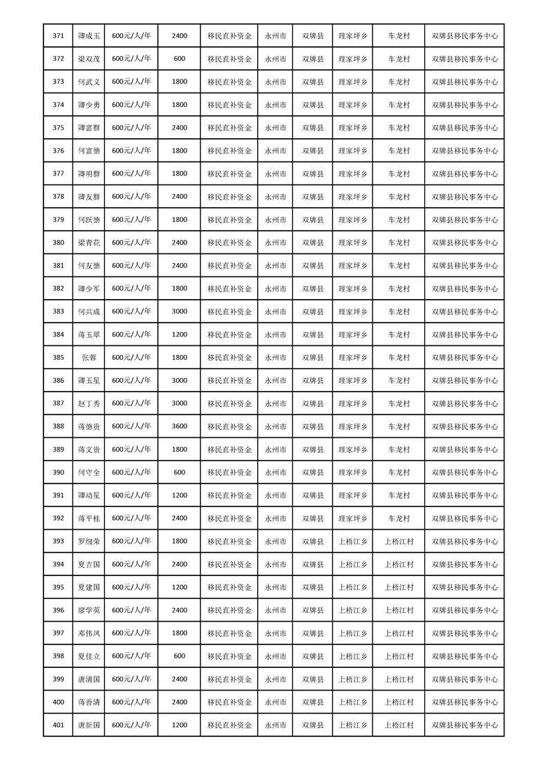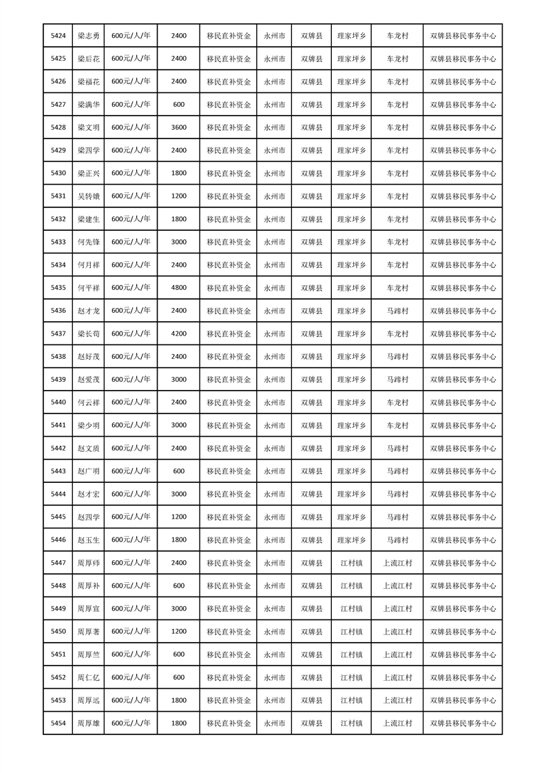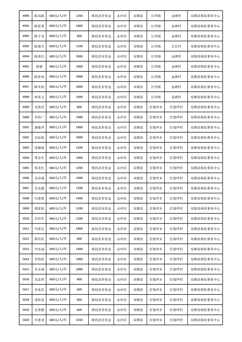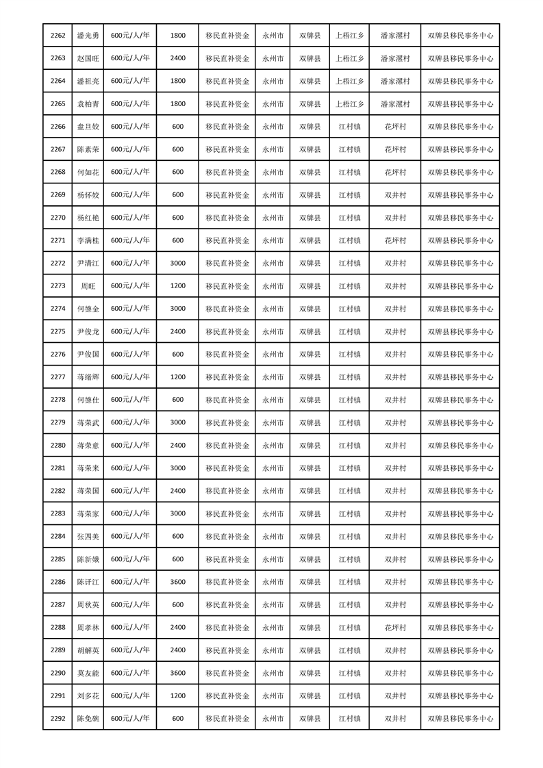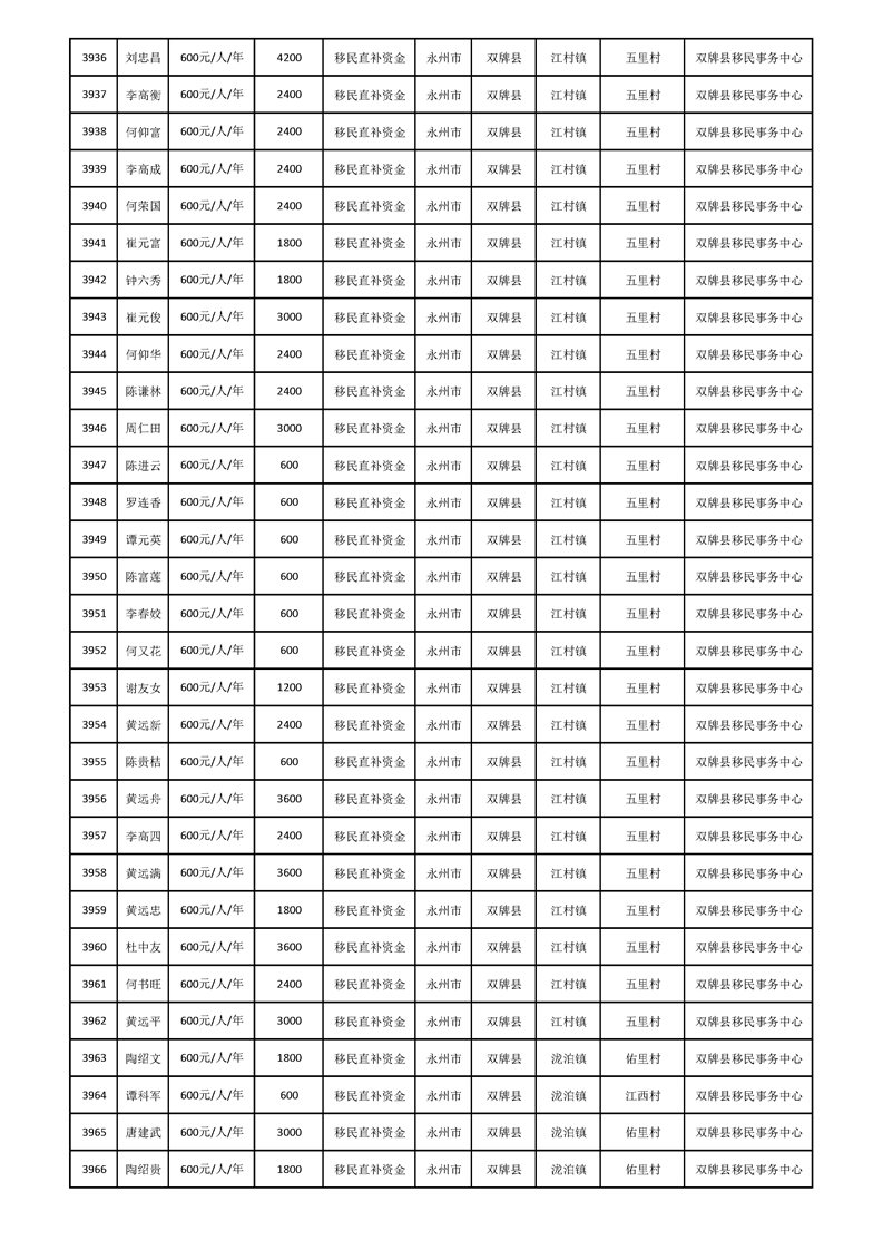 2025年双牌县库区移民后期扶持基金发放名单公示