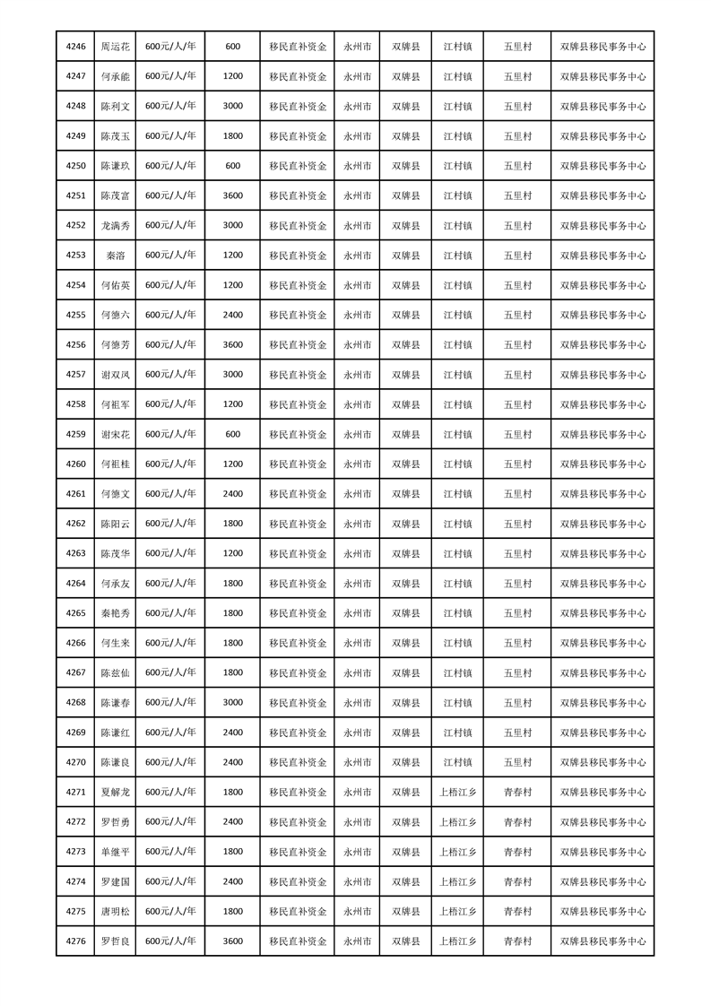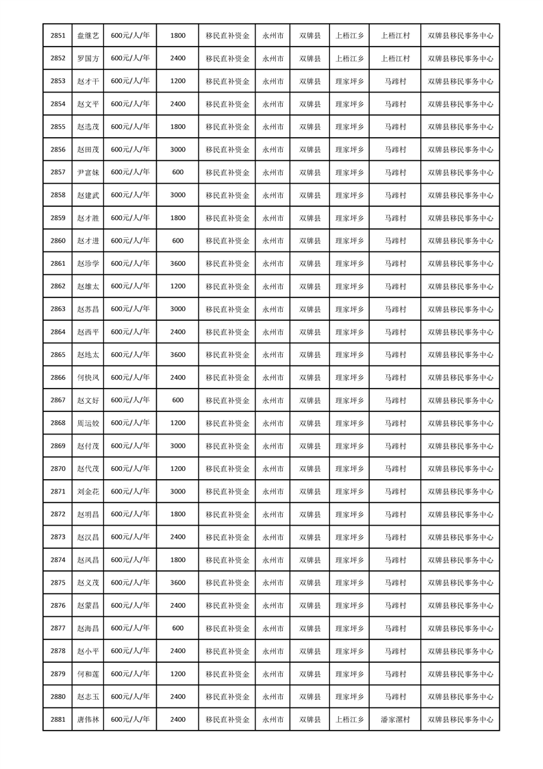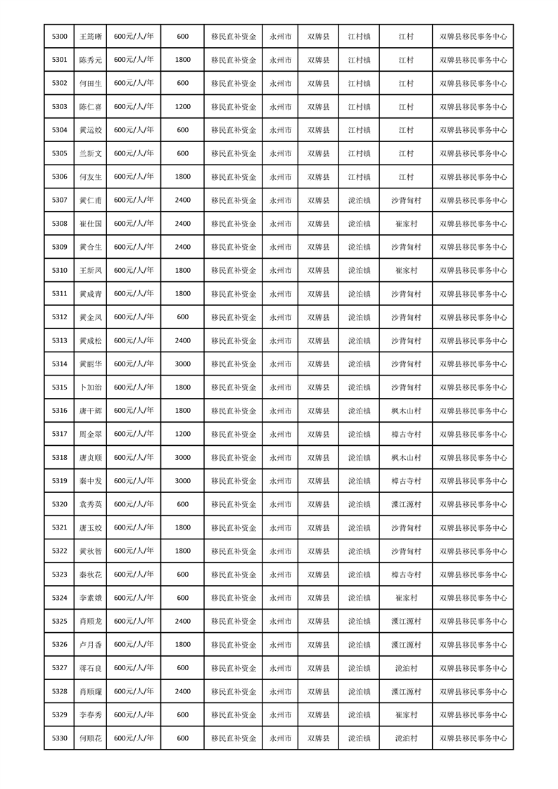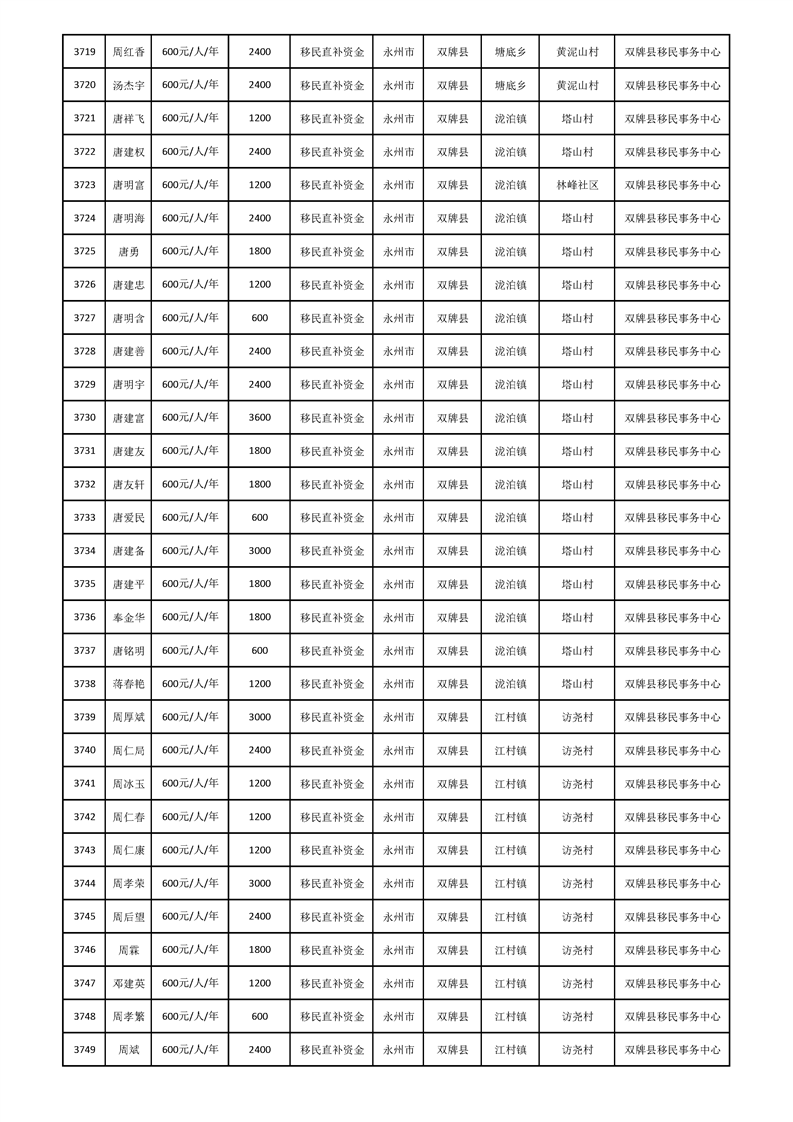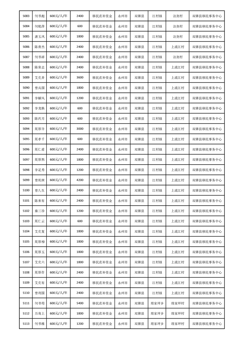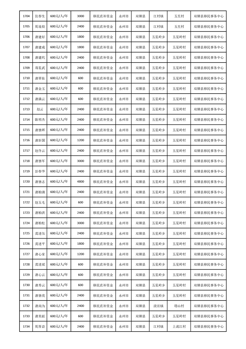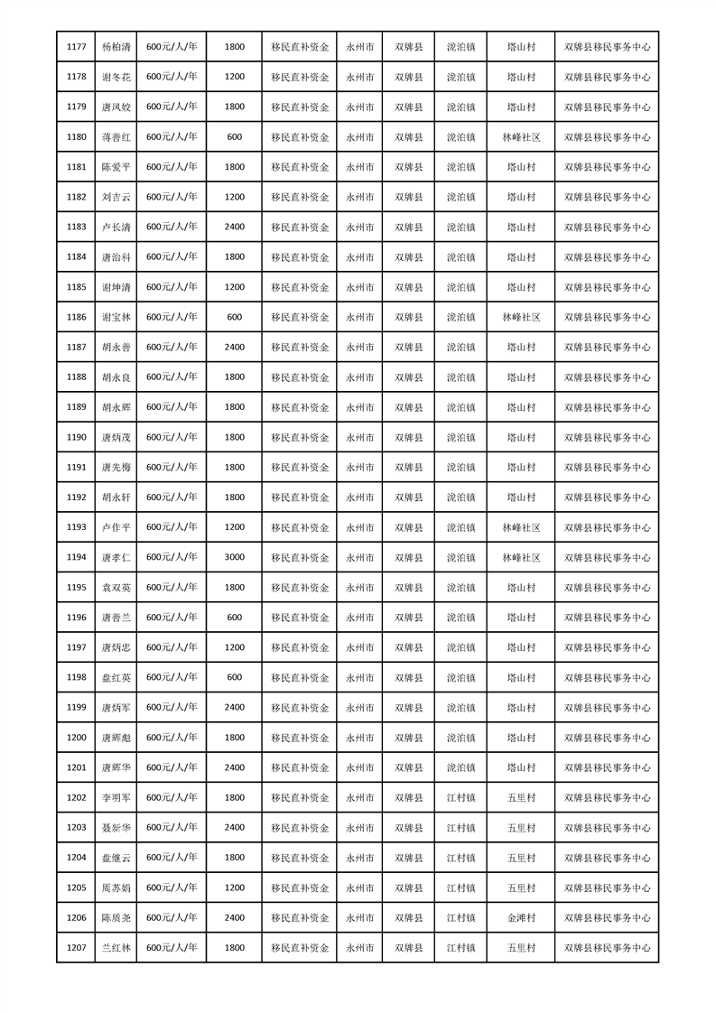 2025年双牌县库区移民后期扶持基金发放名单公示