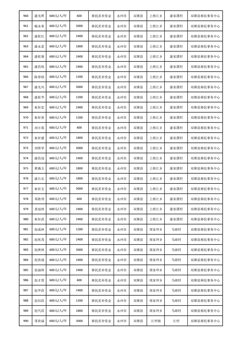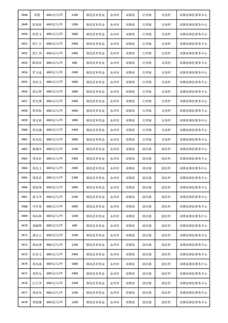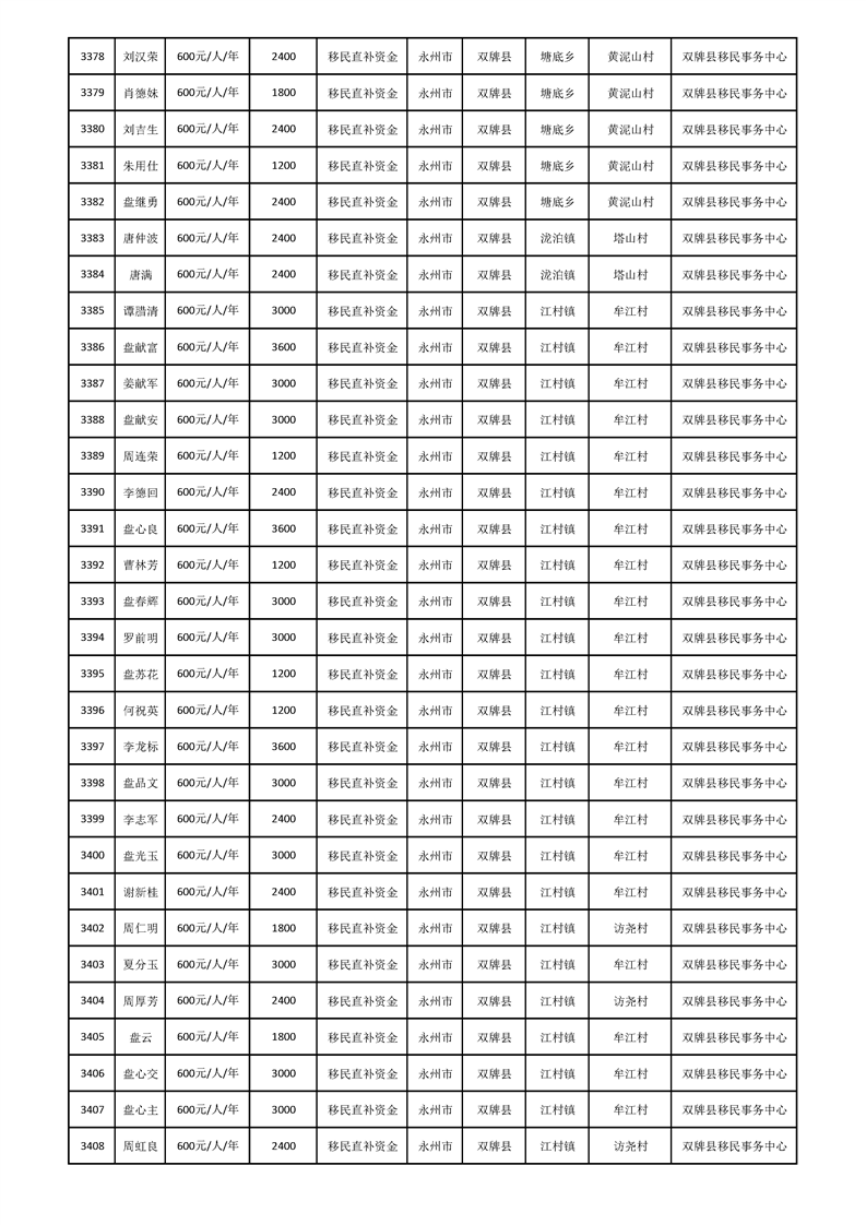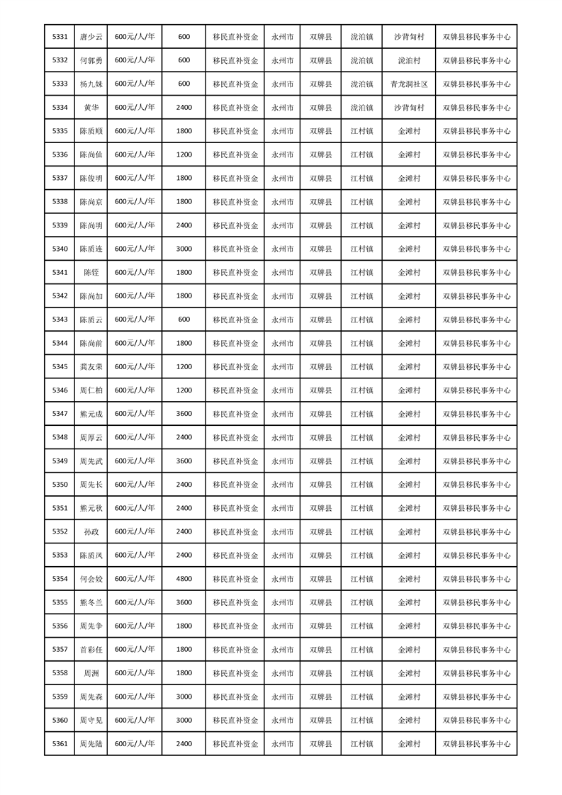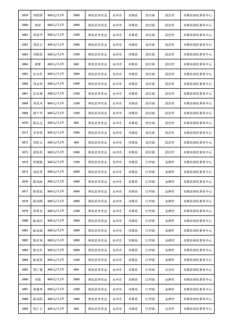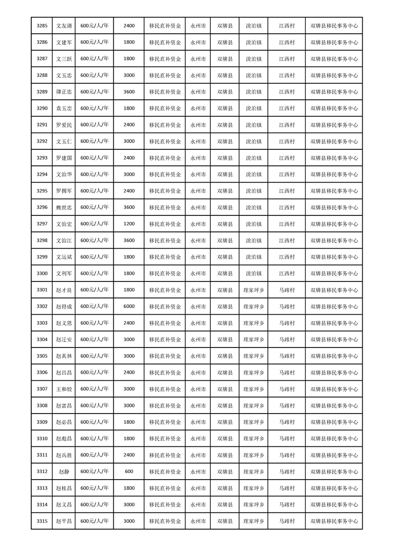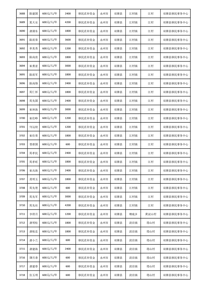 2025年双牌县库区移民后期扶持基金发放名单公示