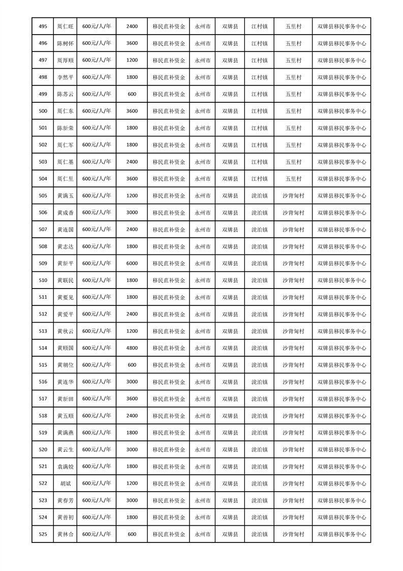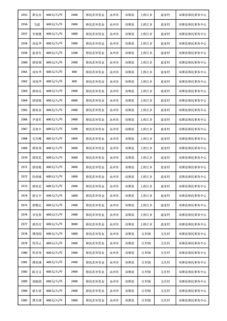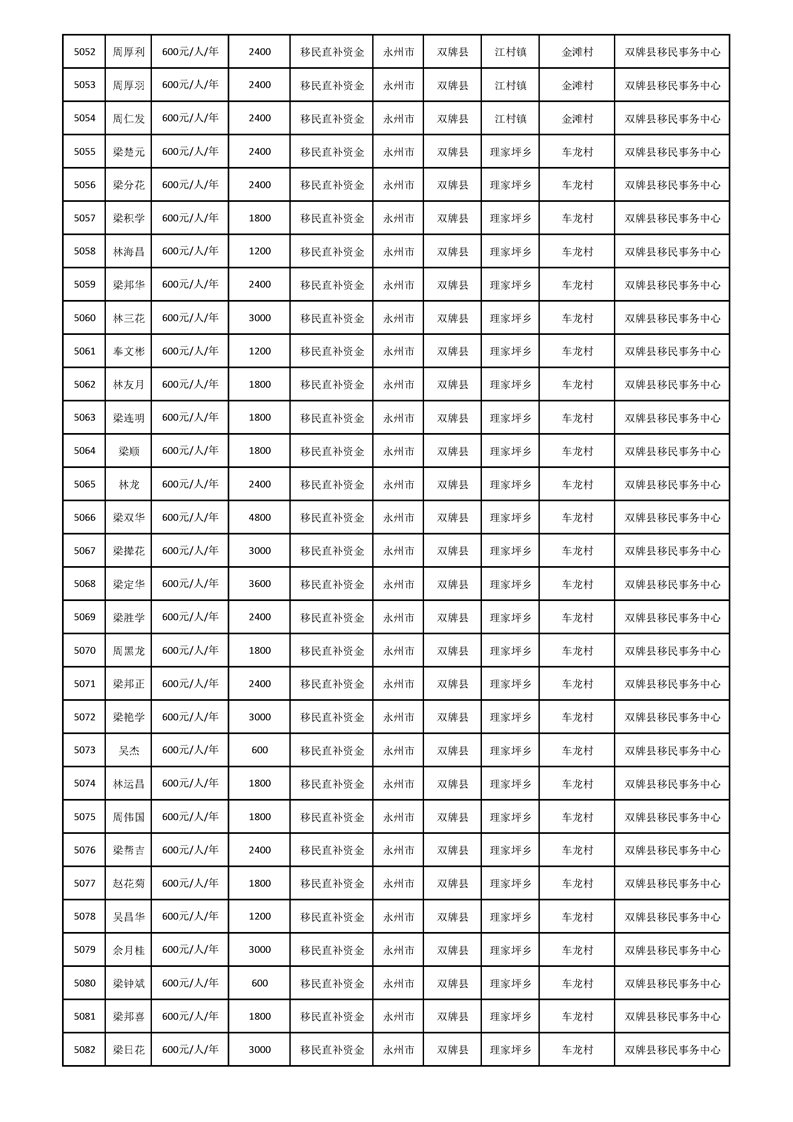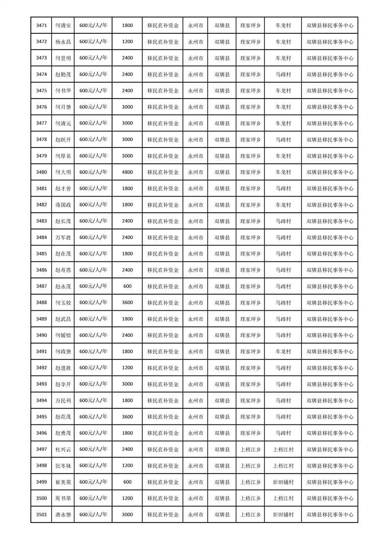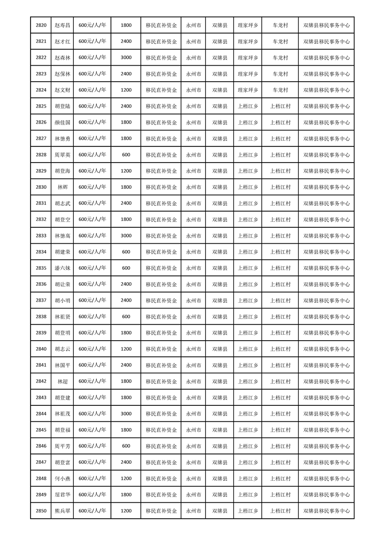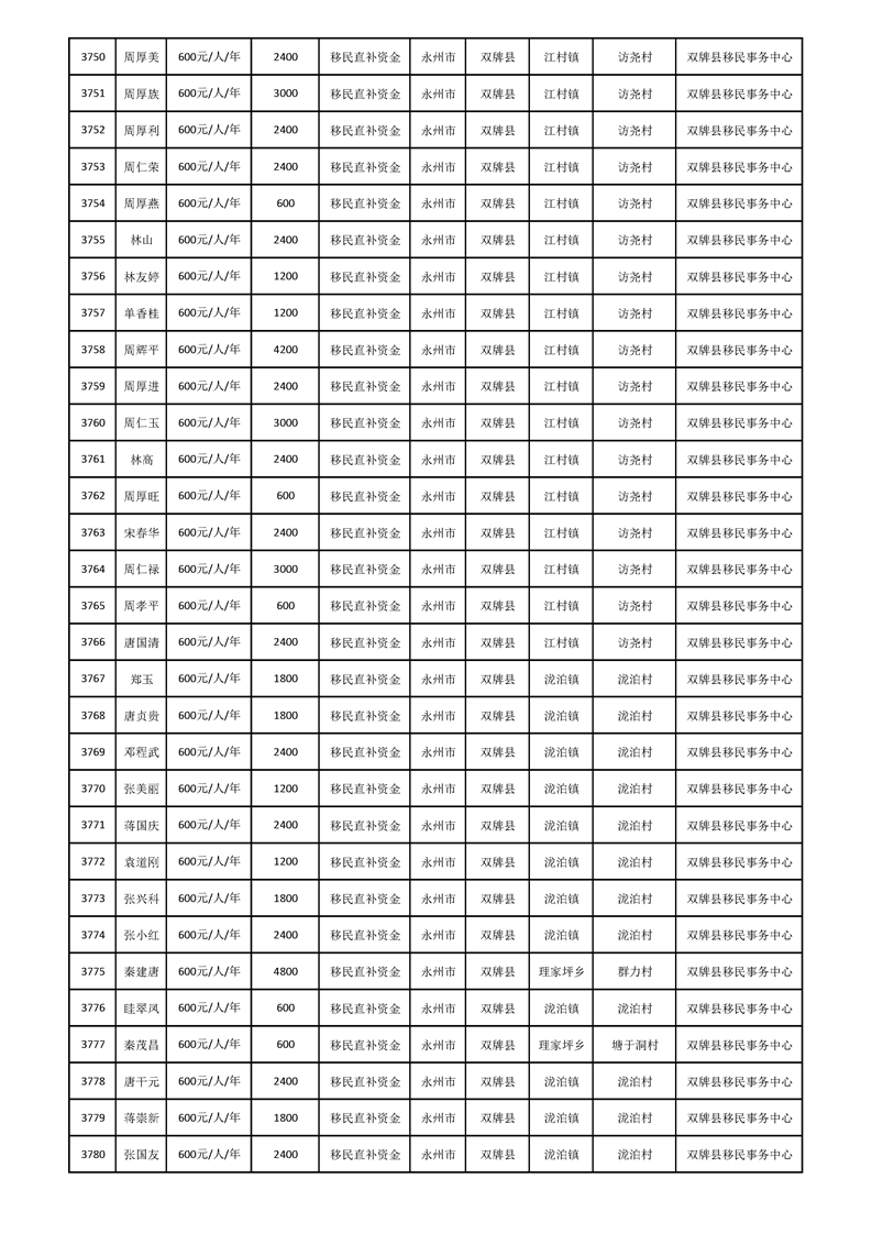 2025年双牌县库区移民后期扶持基金发放名单公示