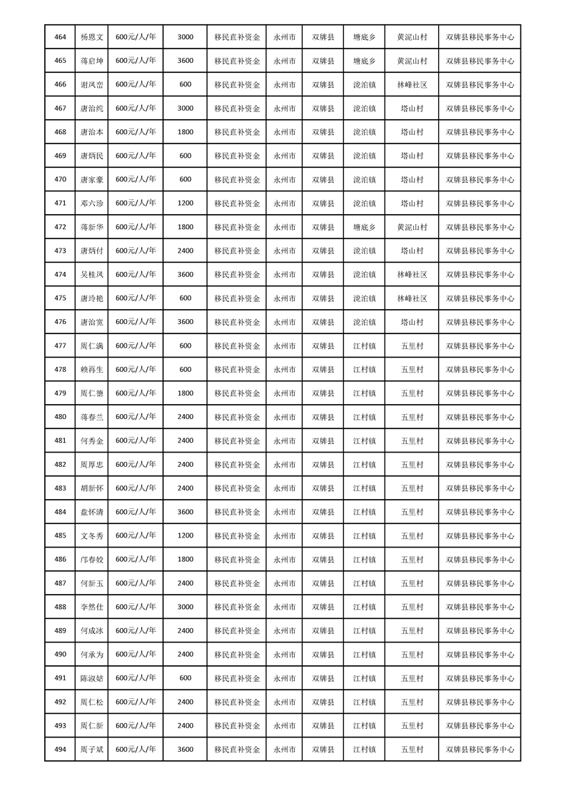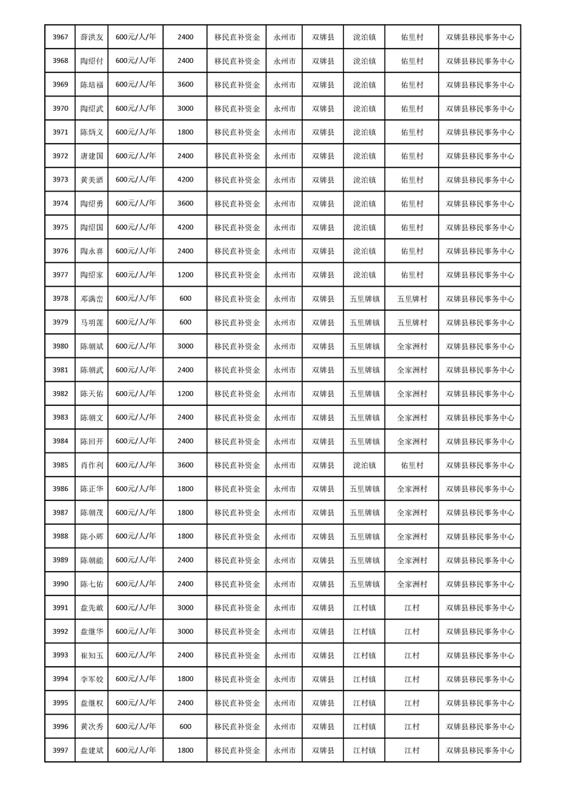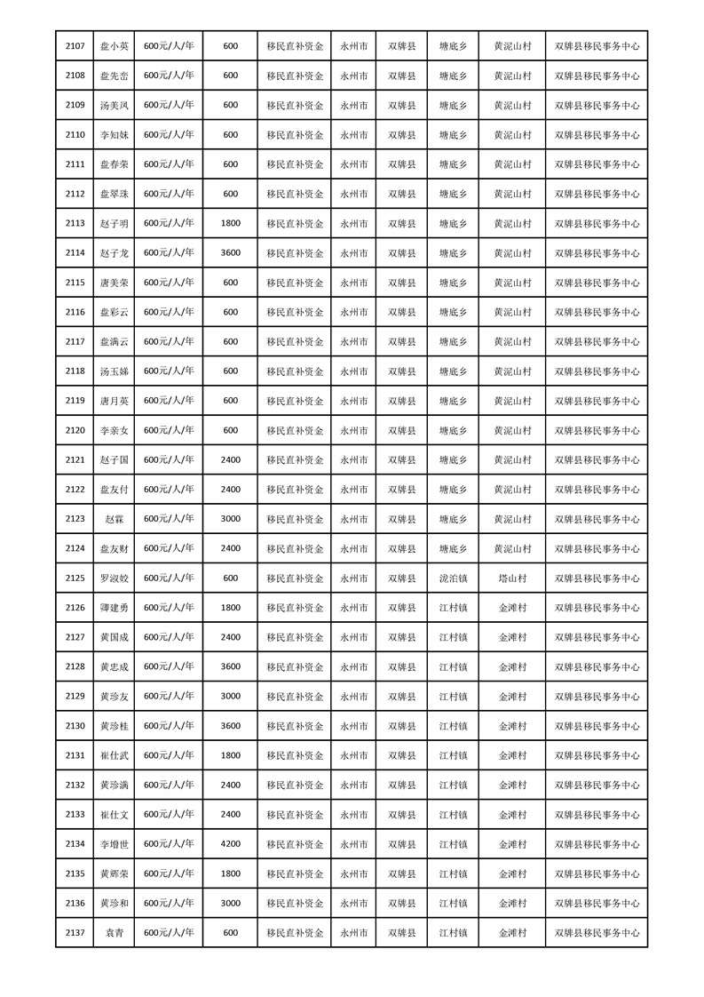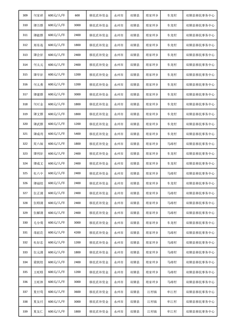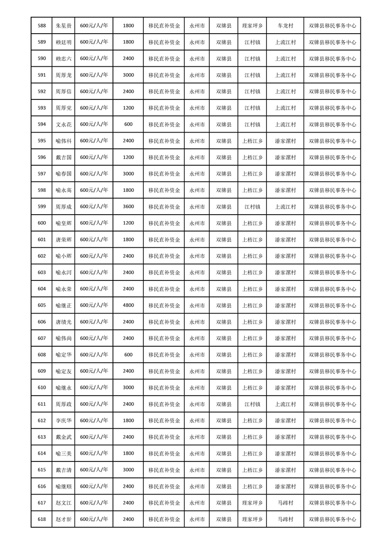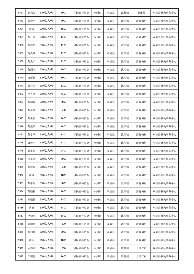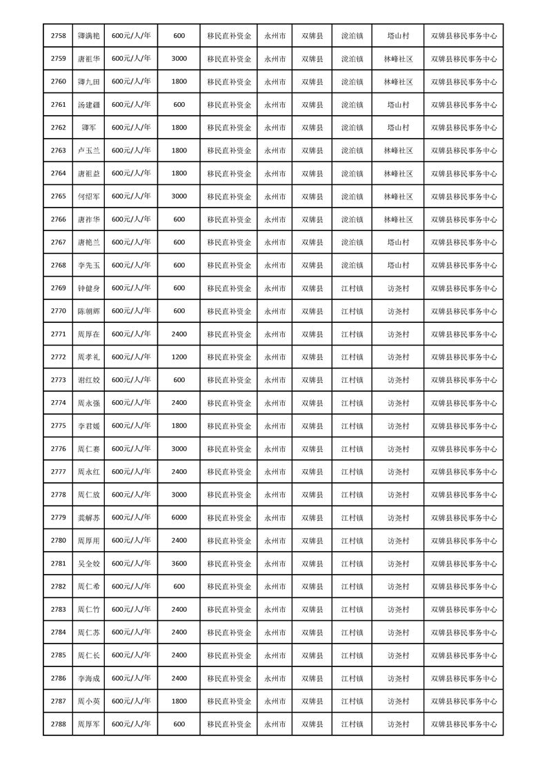 2025年双牌县库区移民后期扶持基金发放名单公示