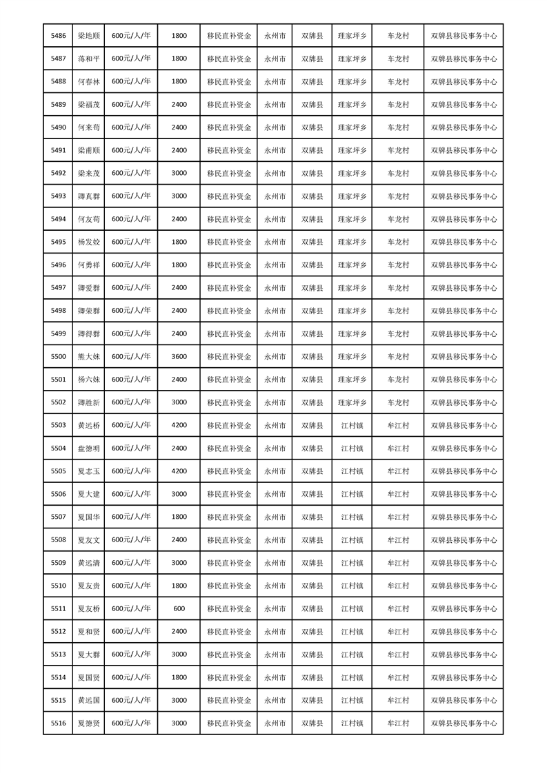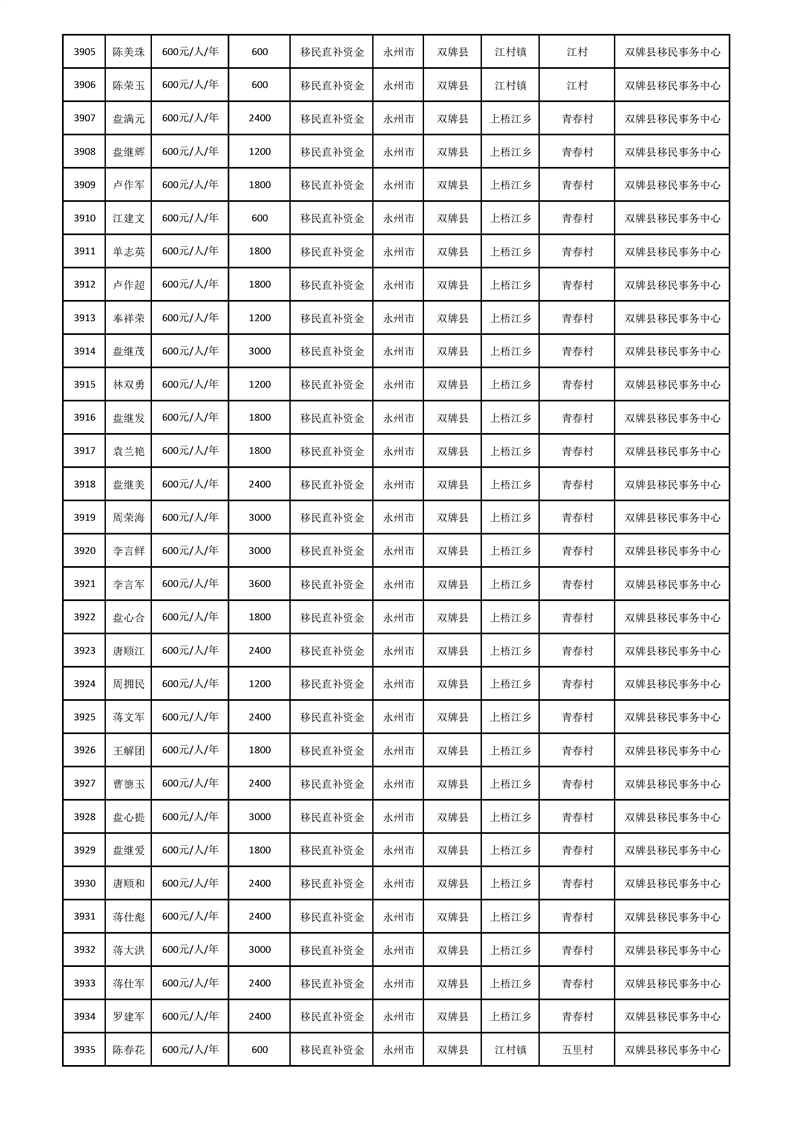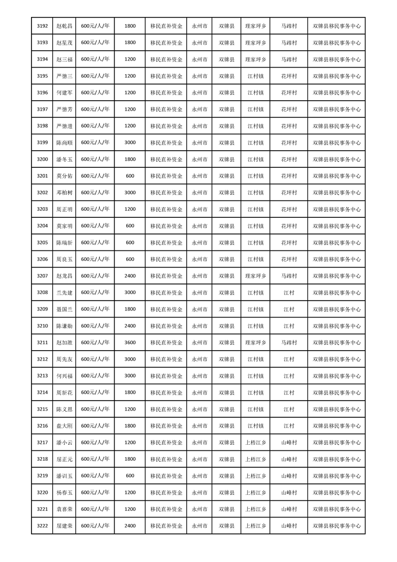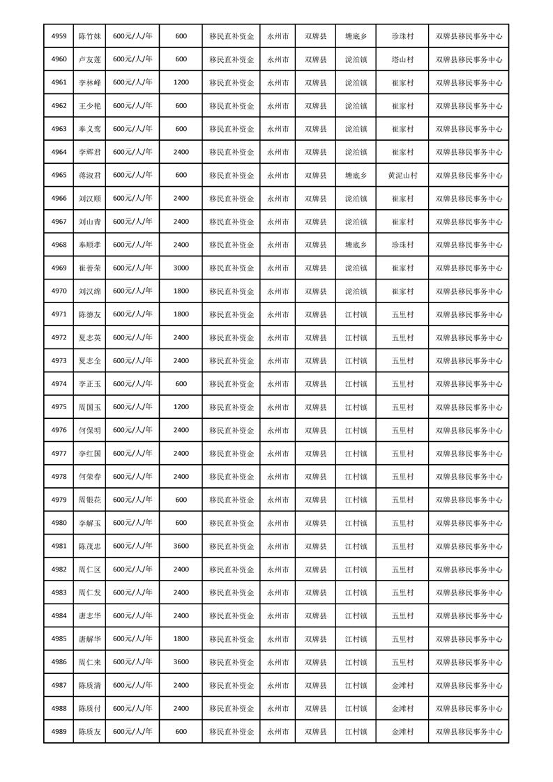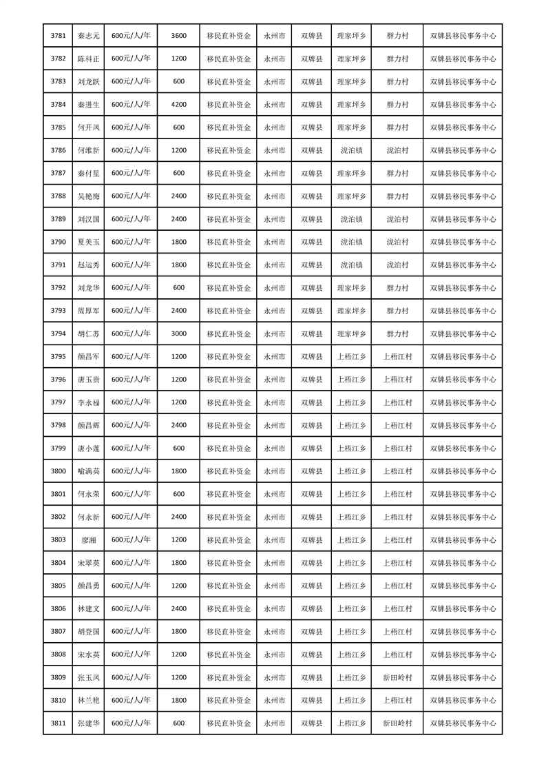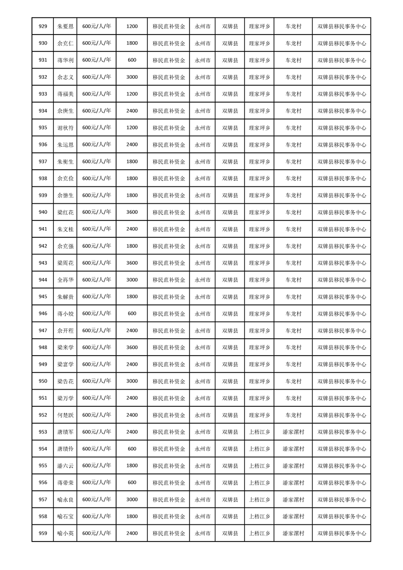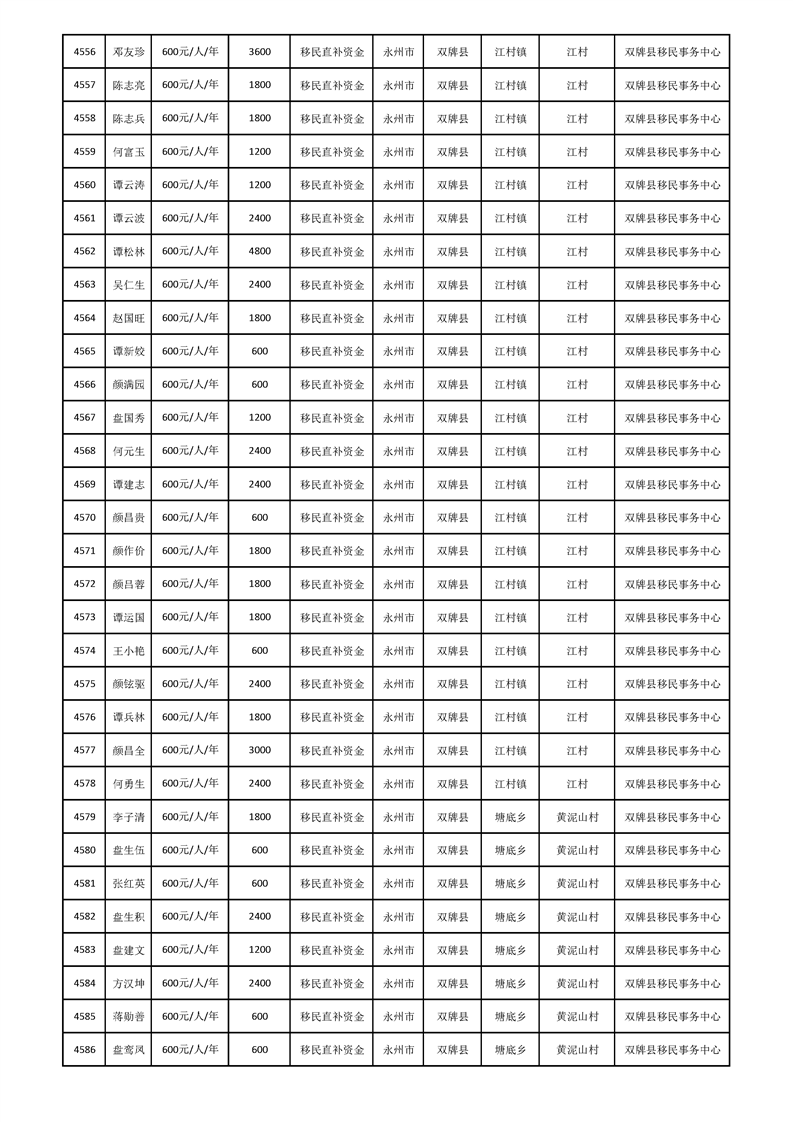 2025年双牌县库区移民后期扶持基金发放名单公示