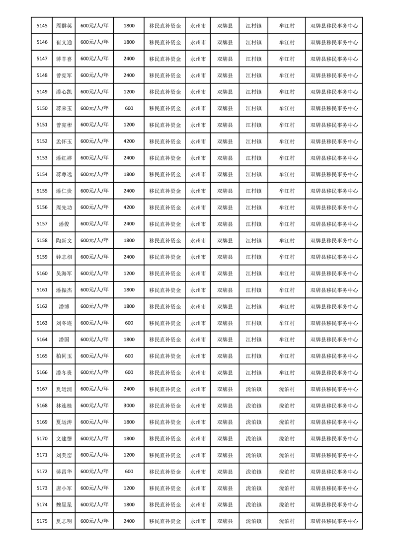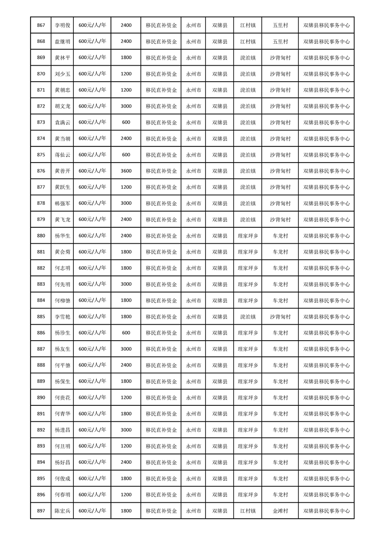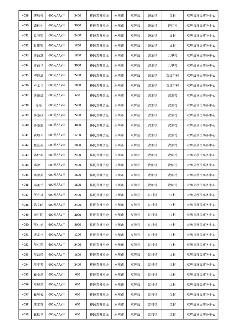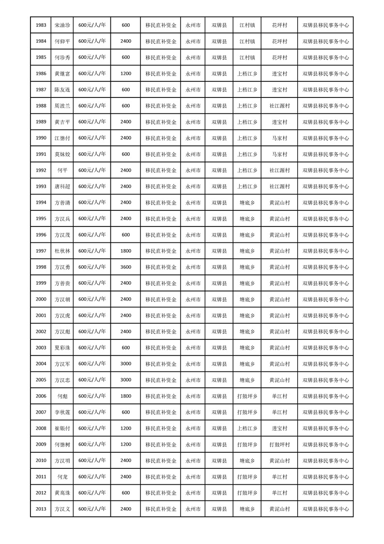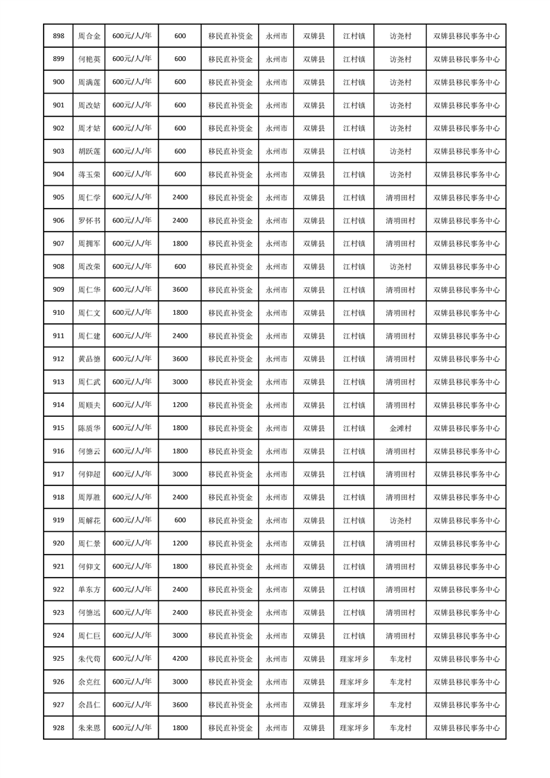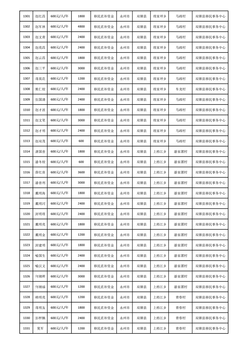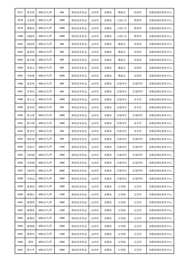 2025年双牌县库区移民后期扶持基金发放名单公示