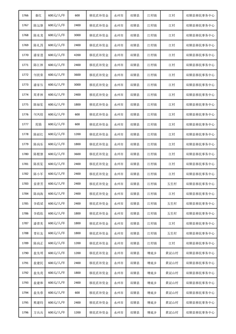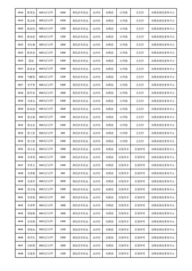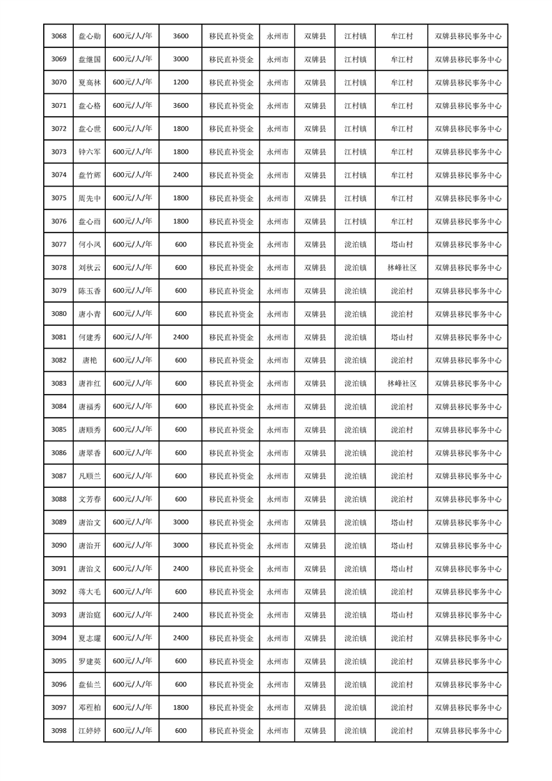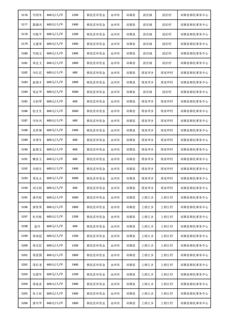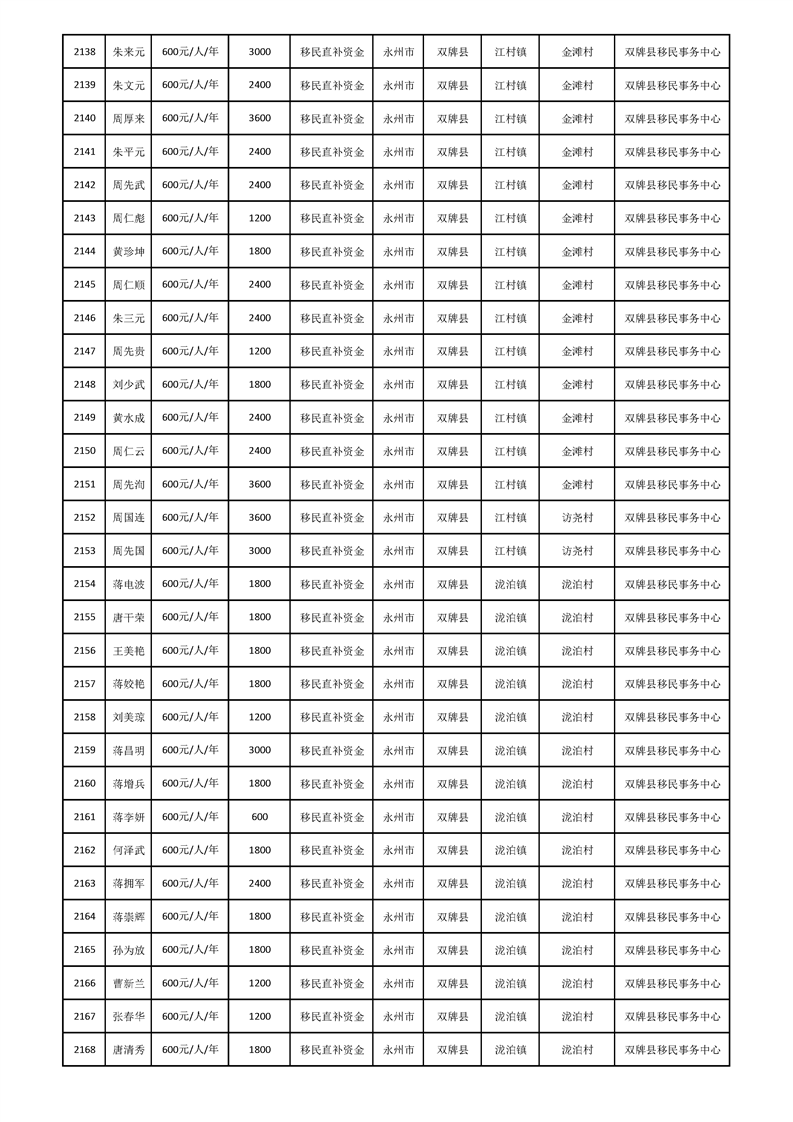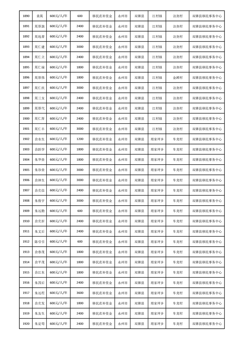2025年双牌县库区移民后期扶持基金发放名单公示