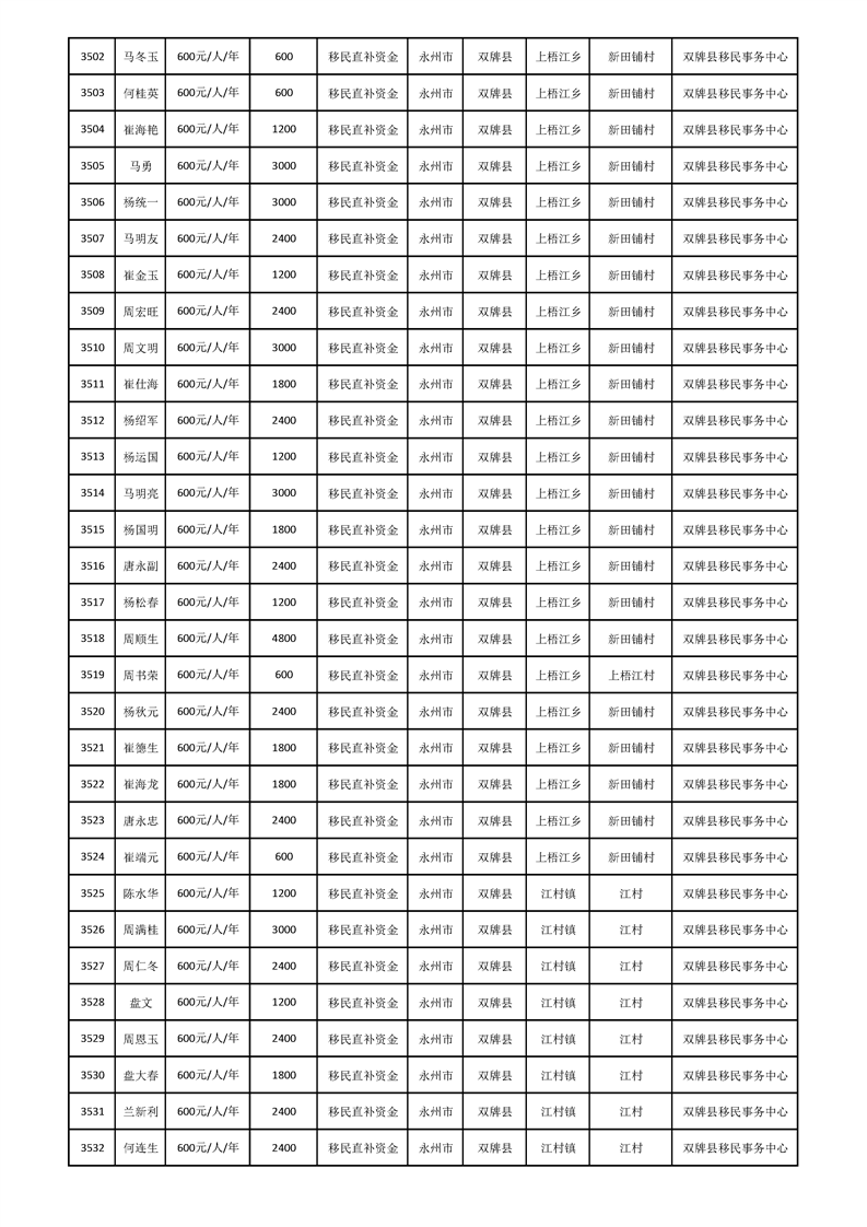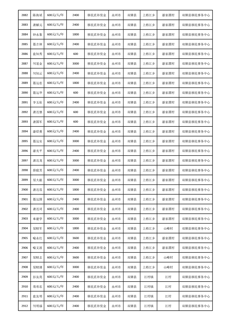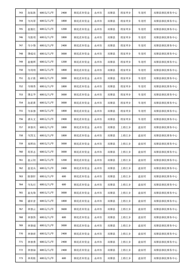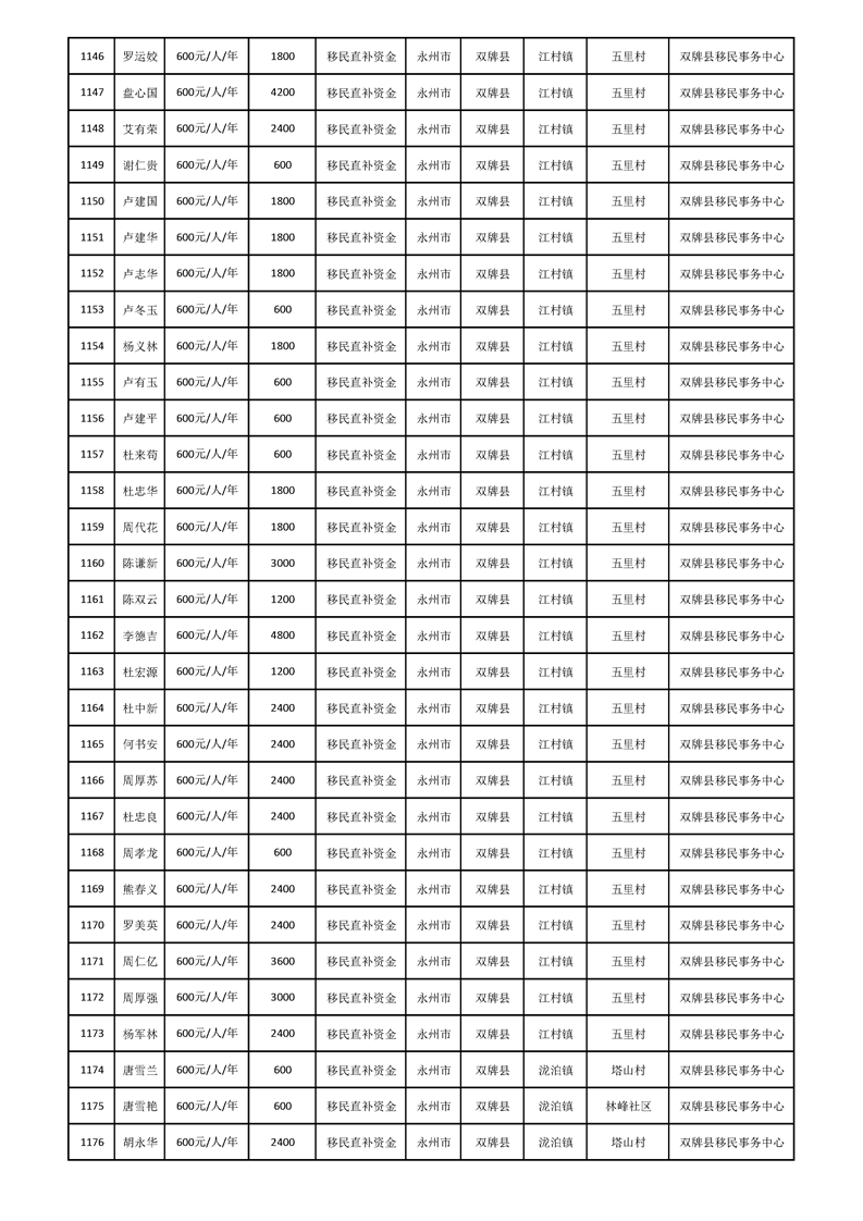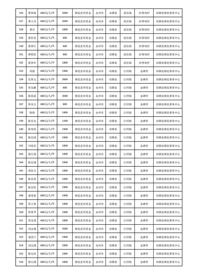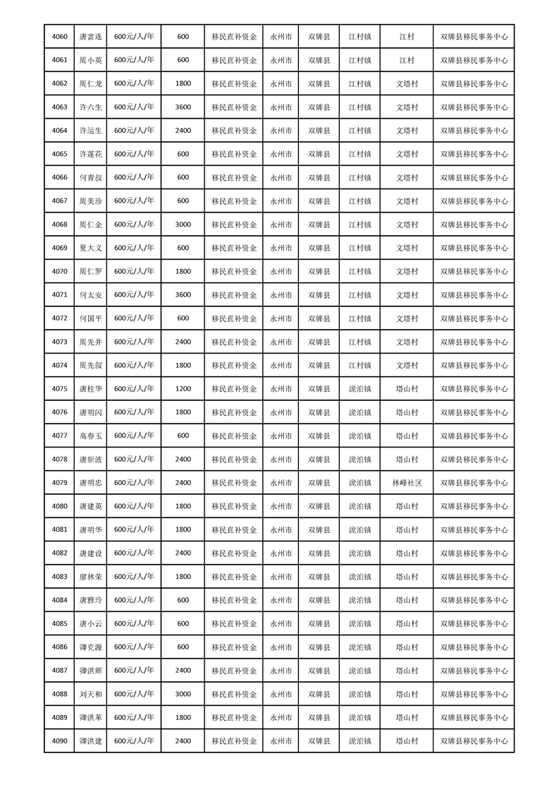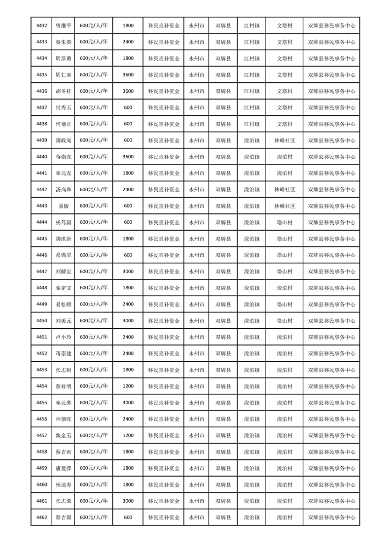 2025年双牌县库区移民后期扶持基金发放名单公示