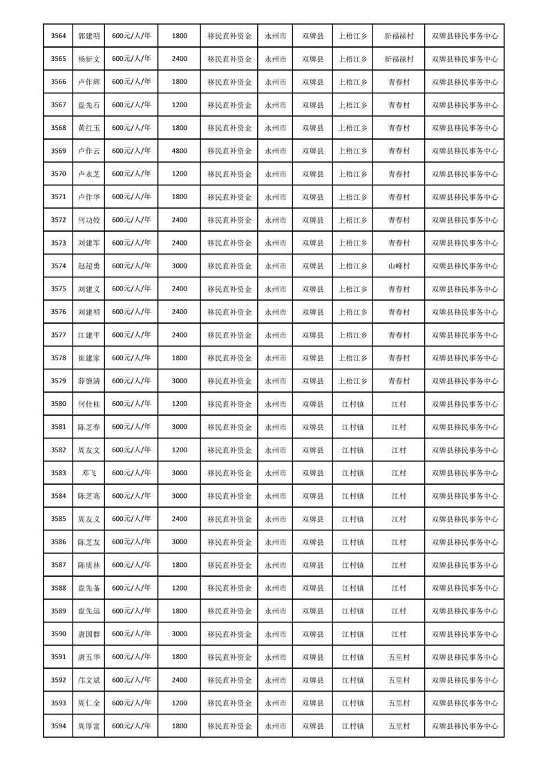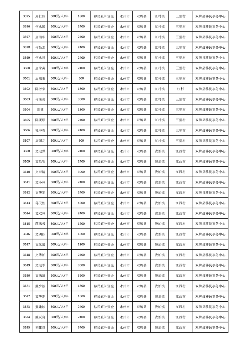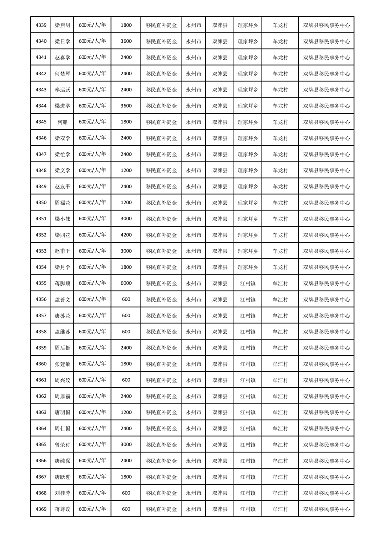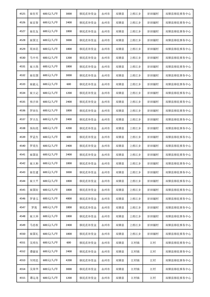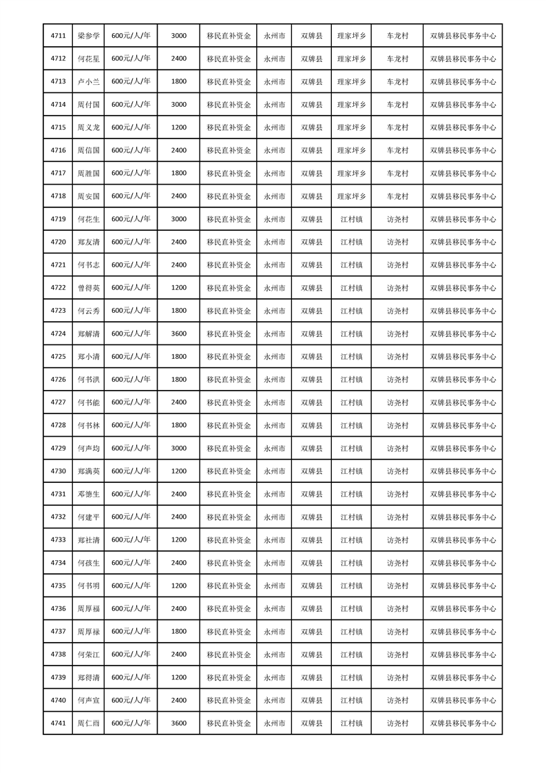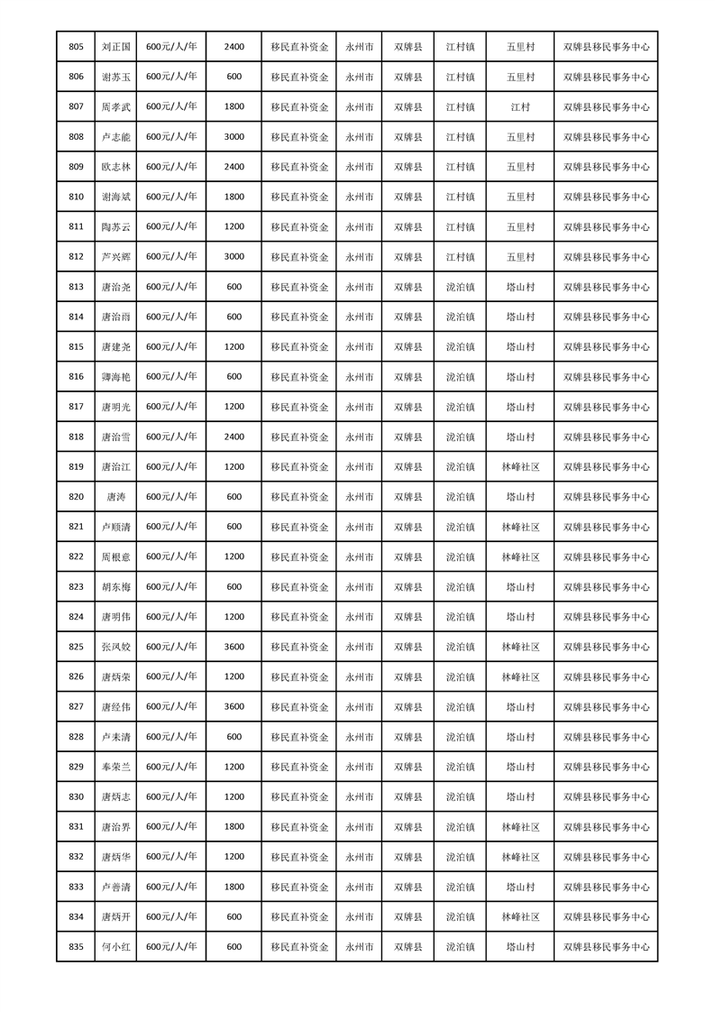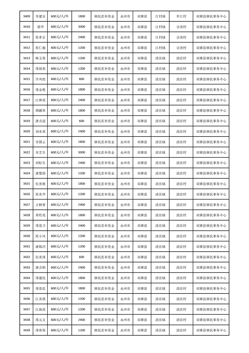 2025年双牌县库区移民后期扶持基金发放名单公示