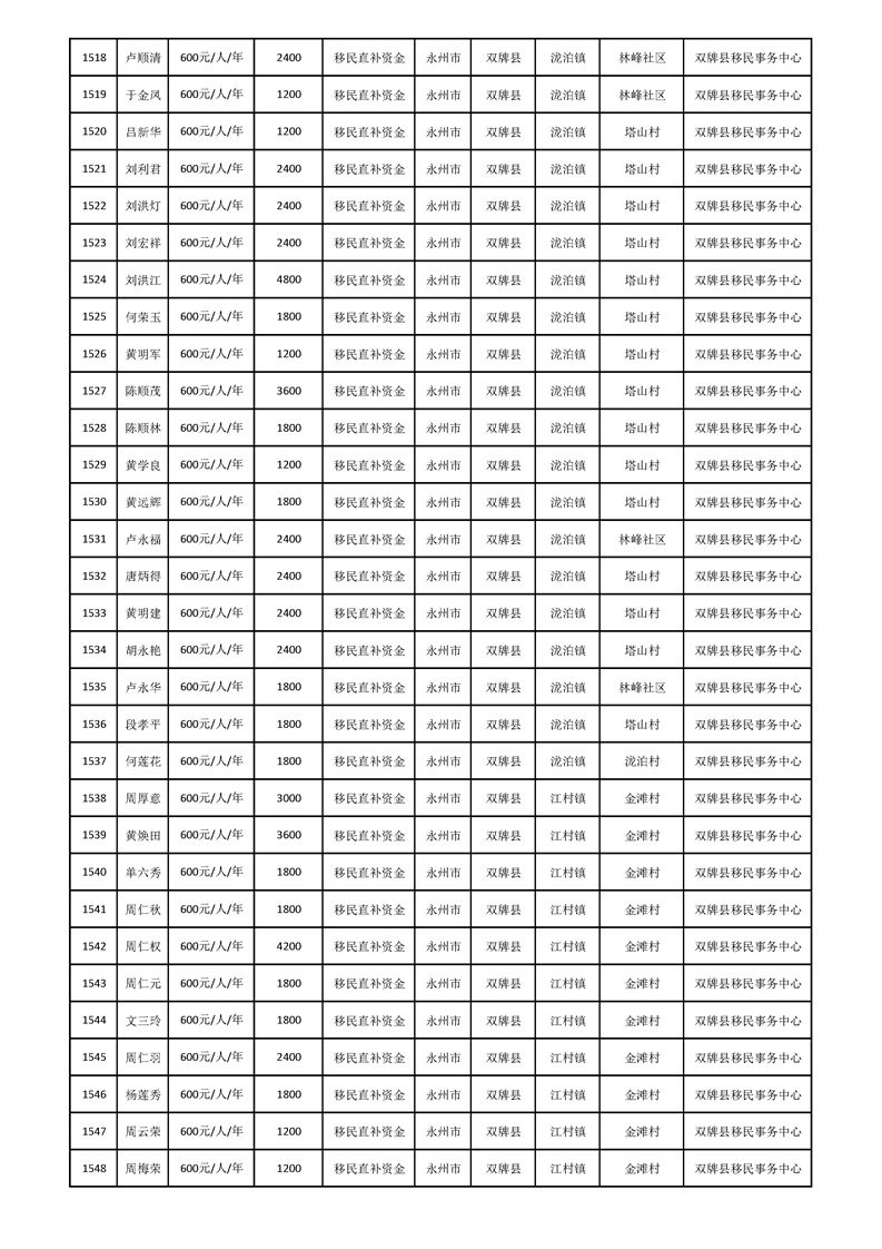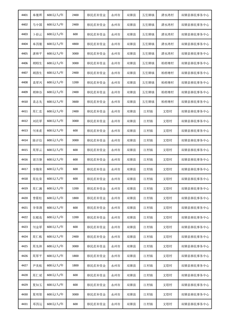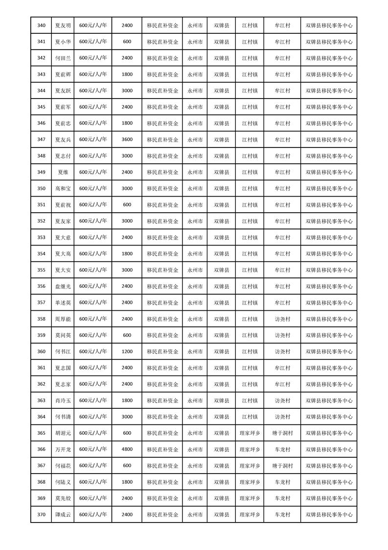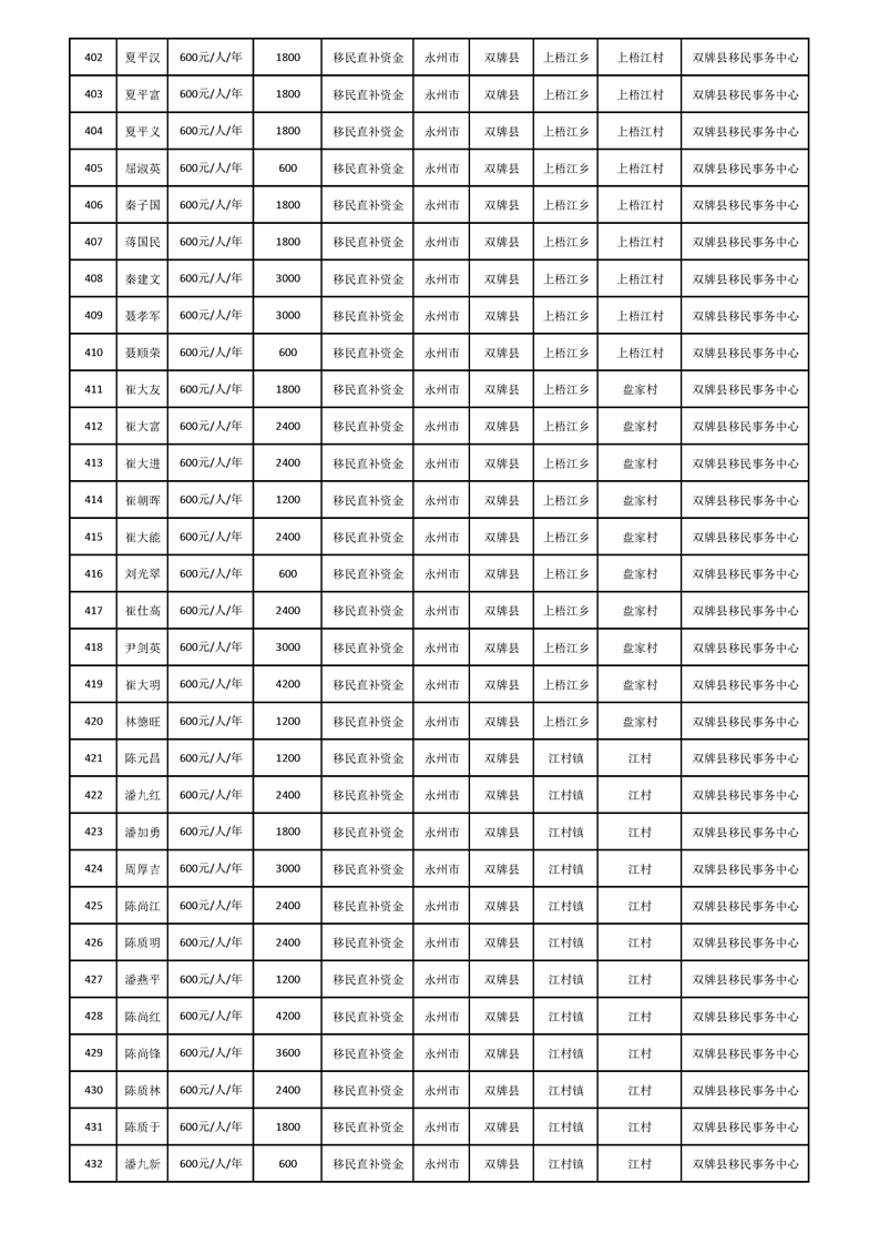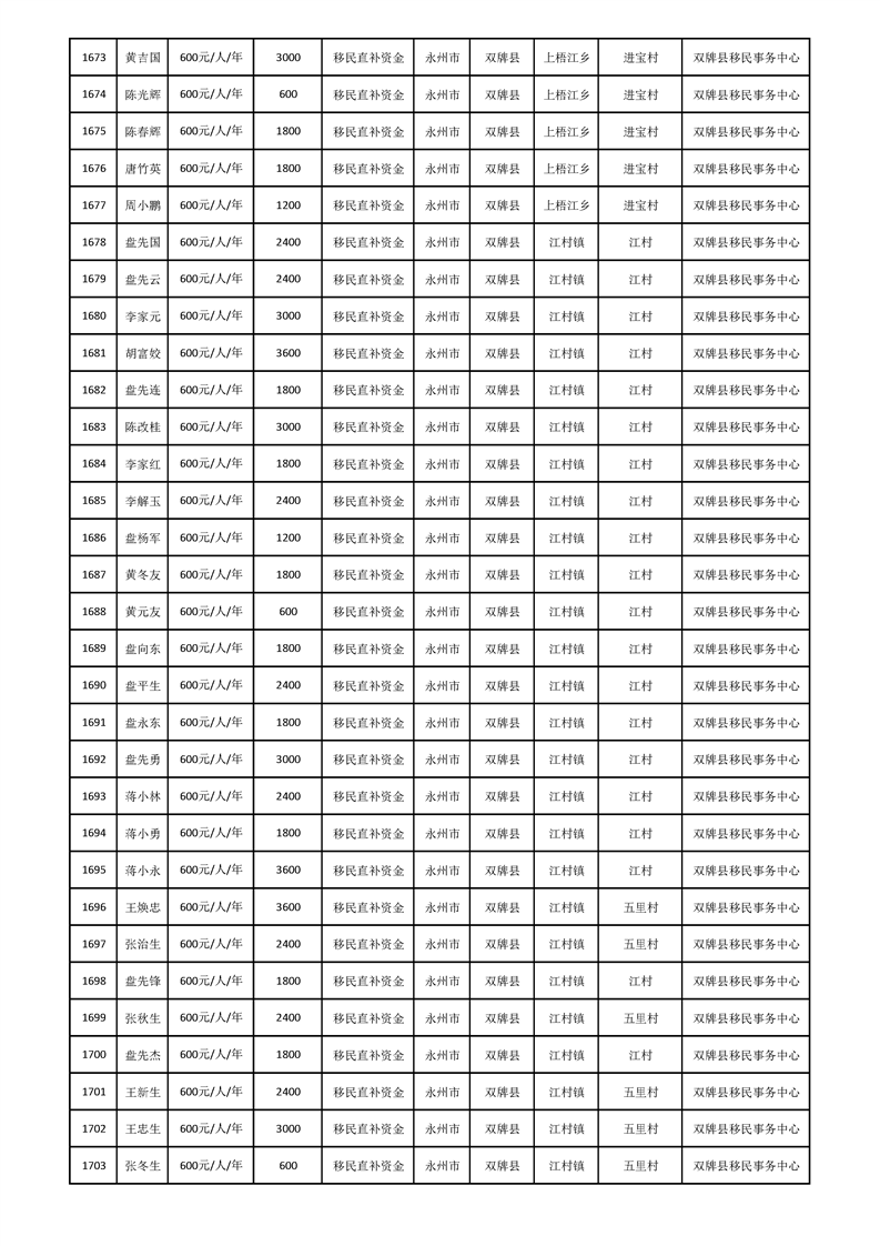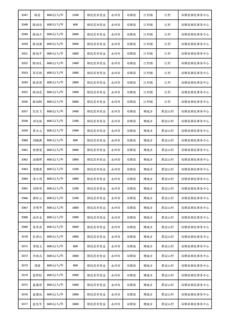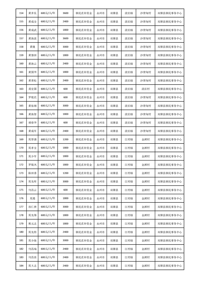 2025年双牌县库区移民后期扶持基金发放名单公示