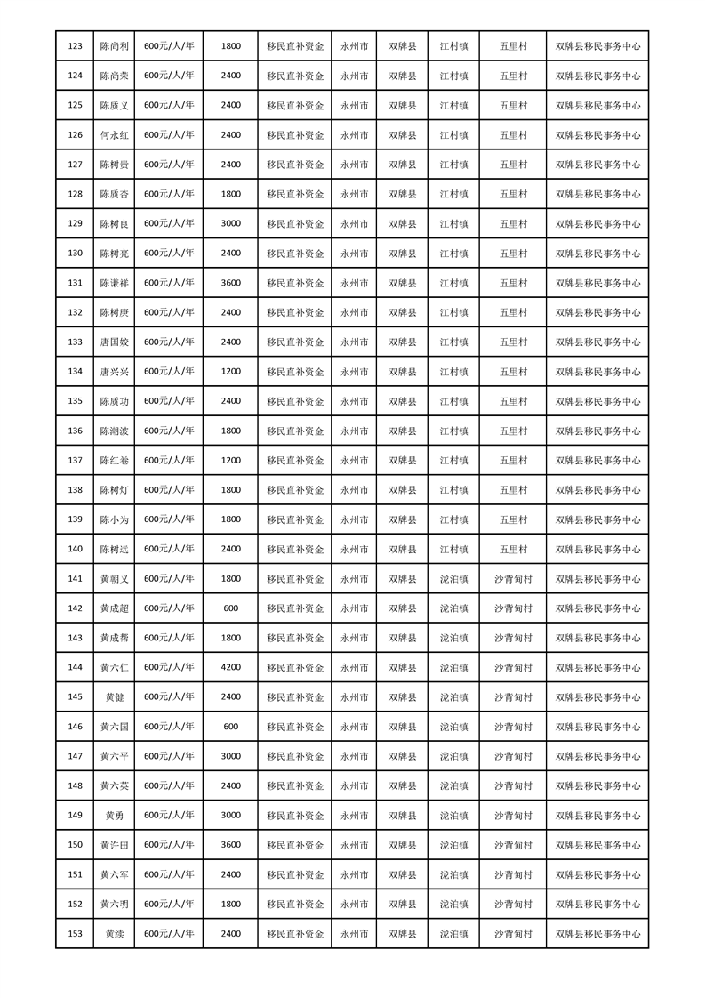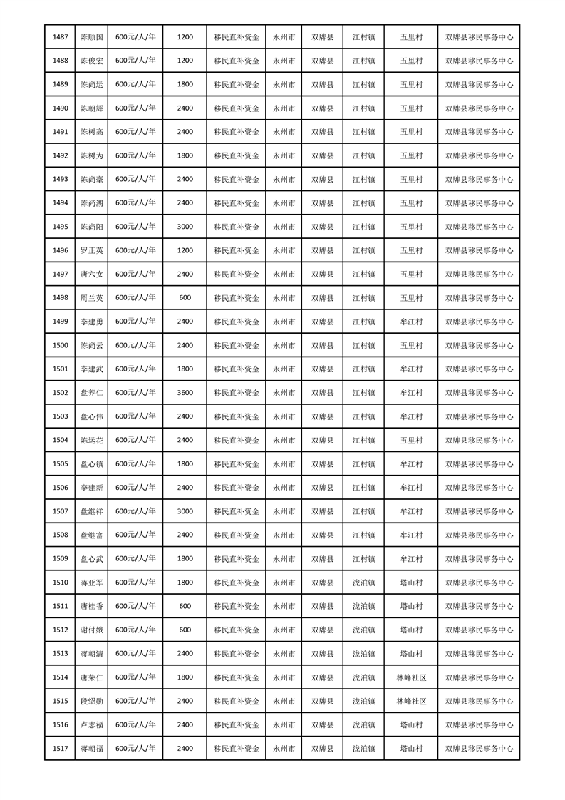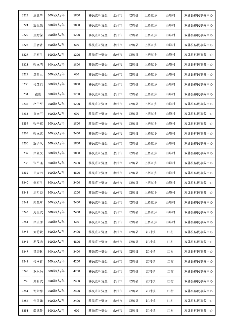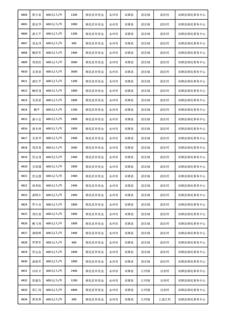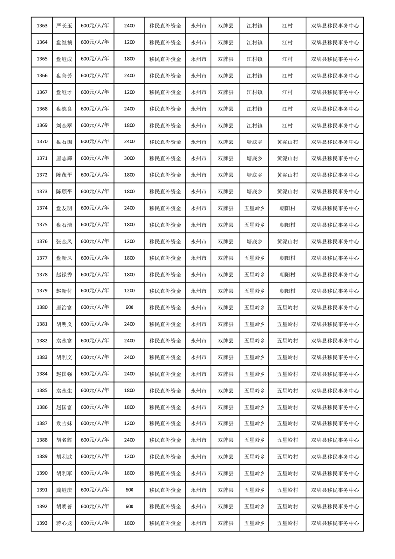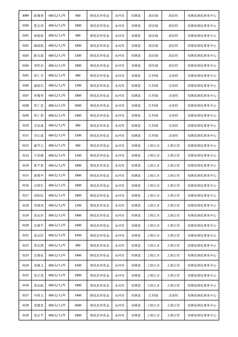 2025年双牌县库区移民后期扶持基金发放名单公示